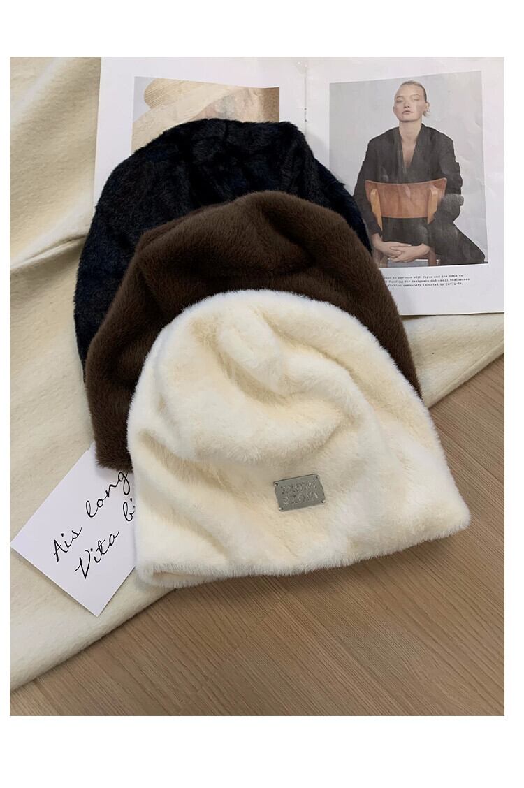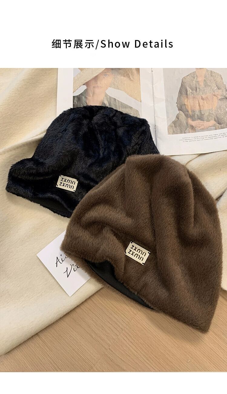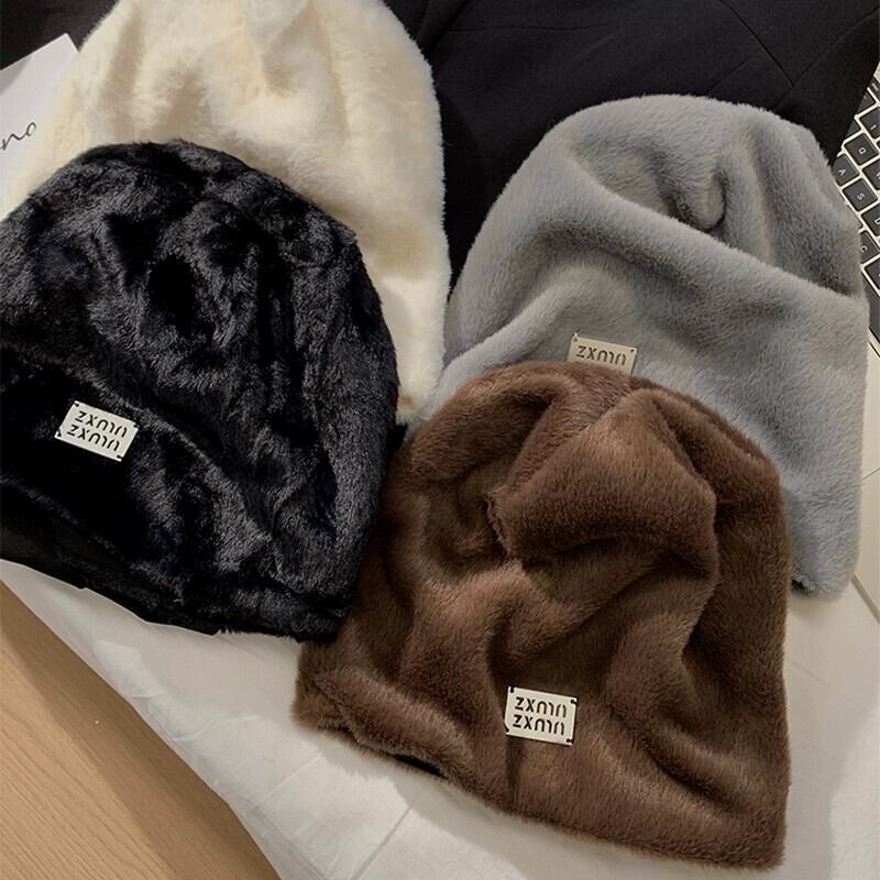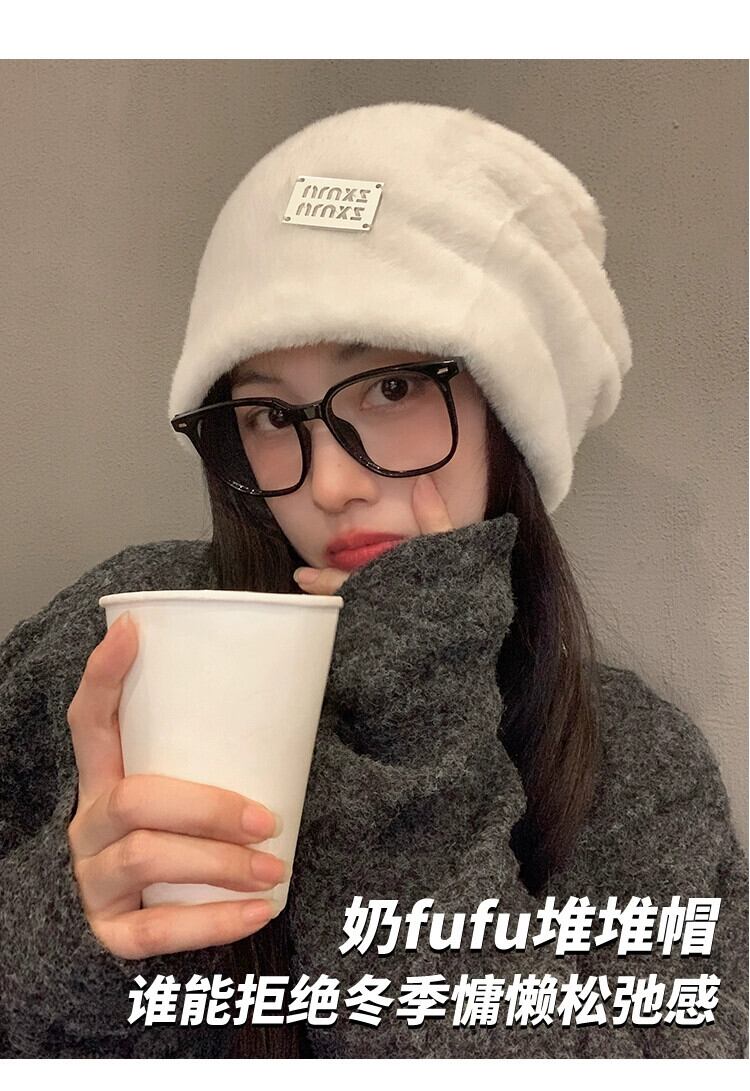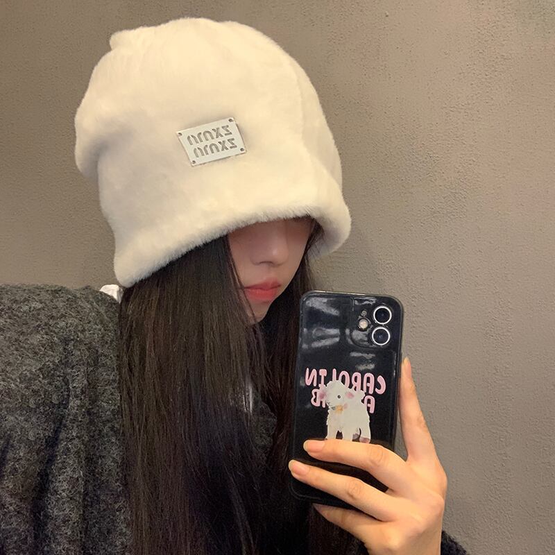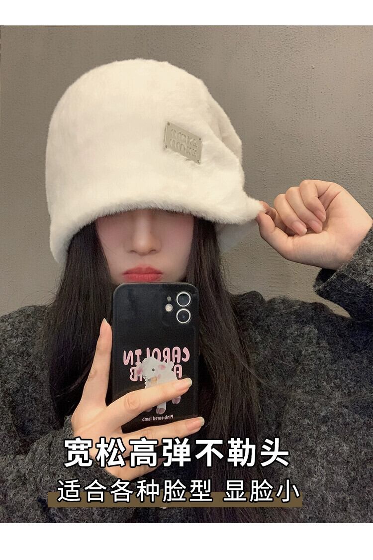 大きな頭囲ぬいぐるみ帽子女性の新しい秋と冬のオールマッチスタイル顔見せ小さな暖かい耳保護ヘッドバンドパイルコールドハット オータム 秋物 ウィンター 冬物 ヘアバンド ヘアアクセサリー 15dd70988211404