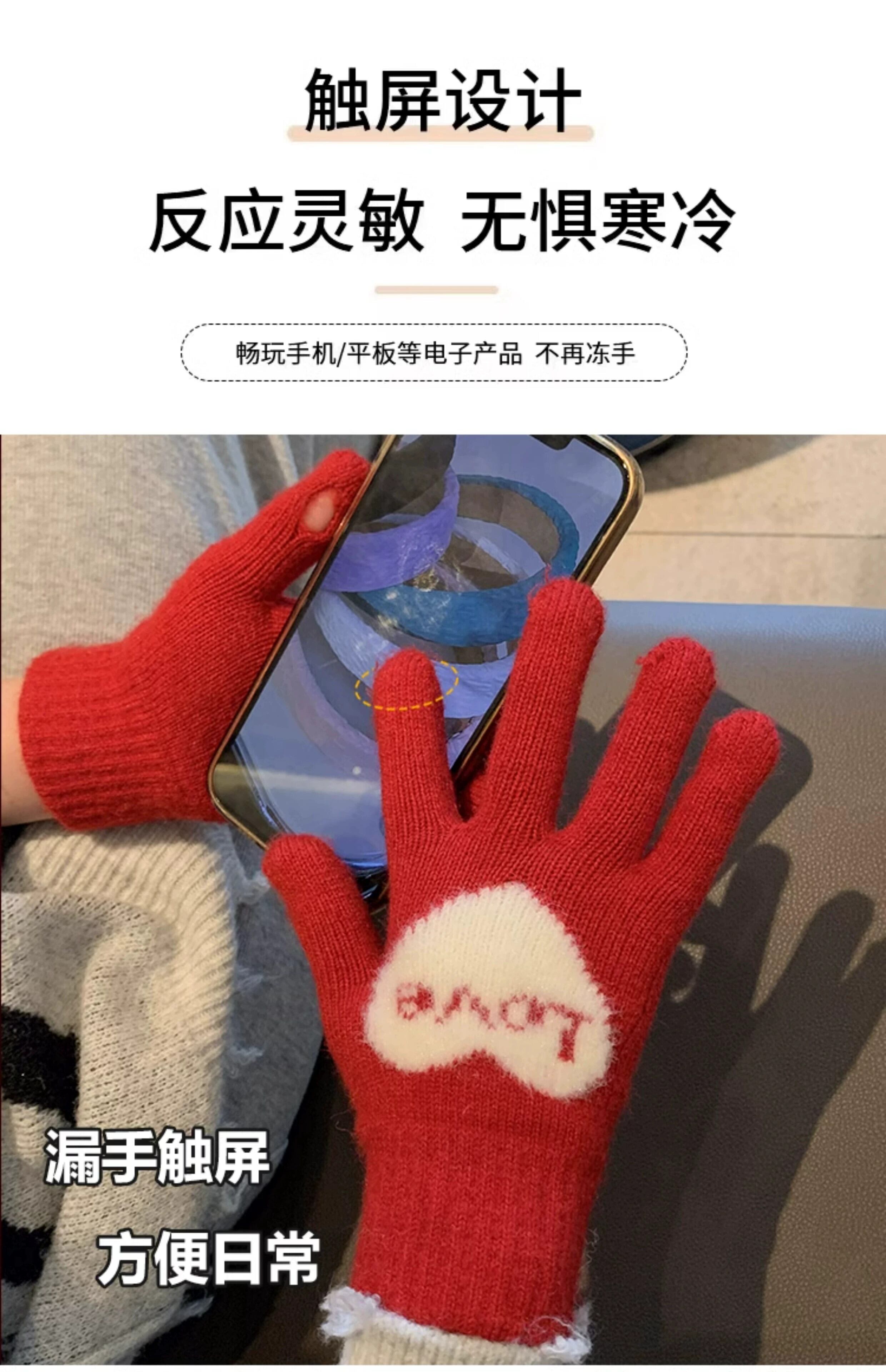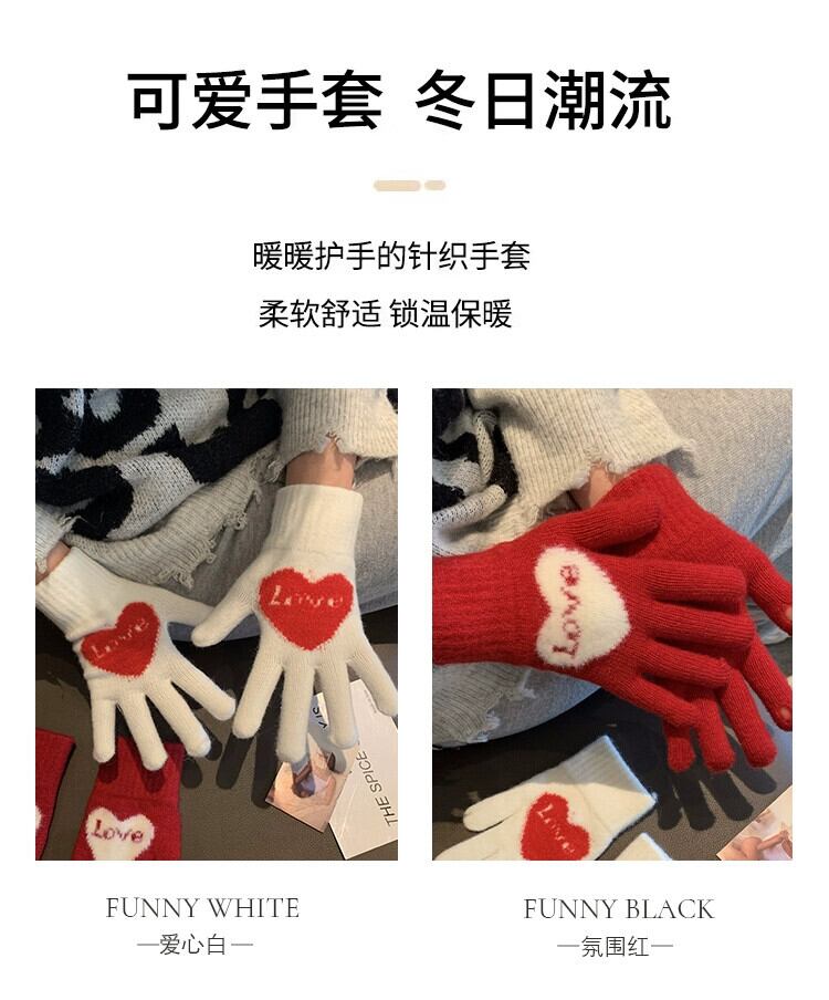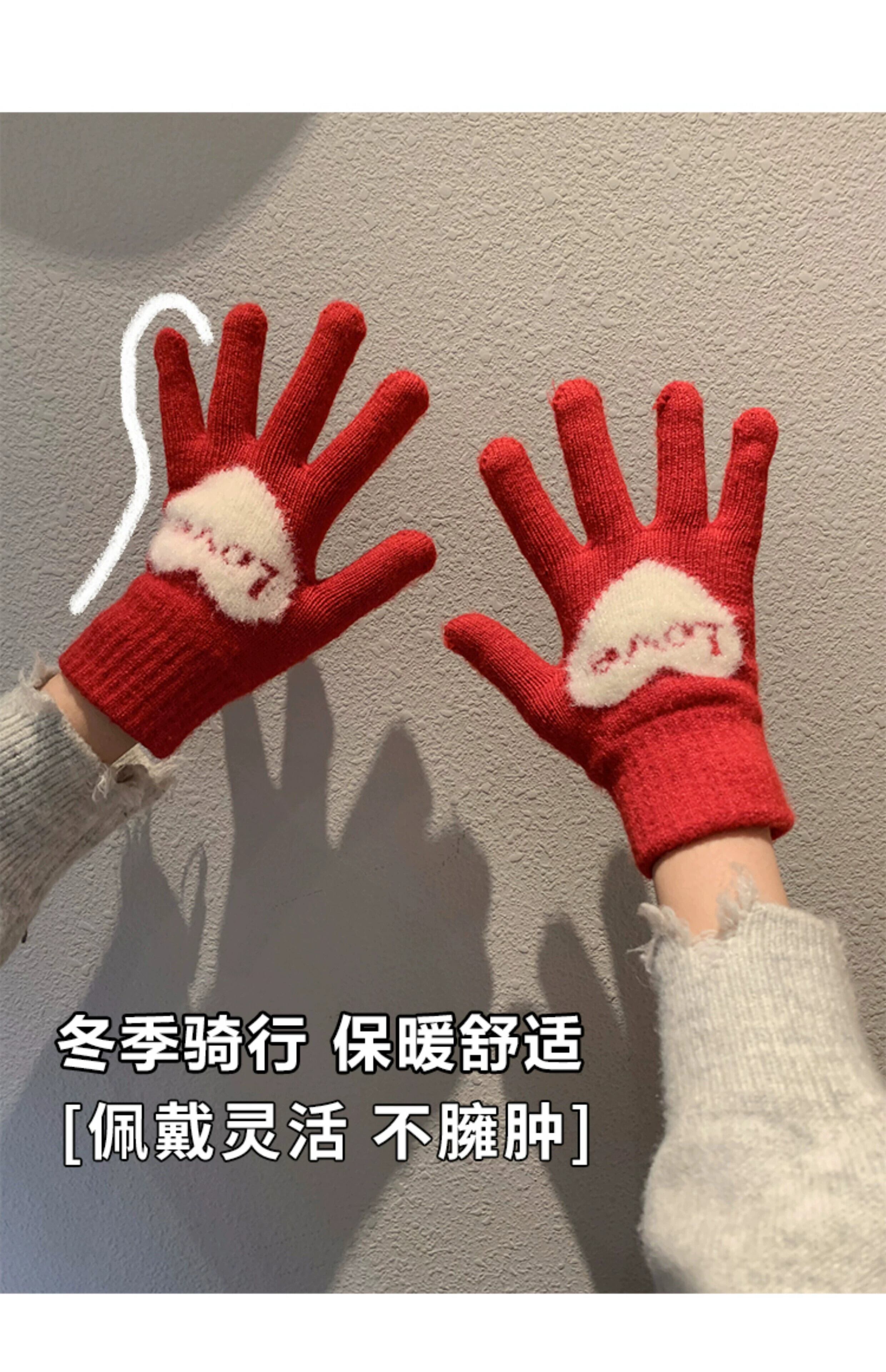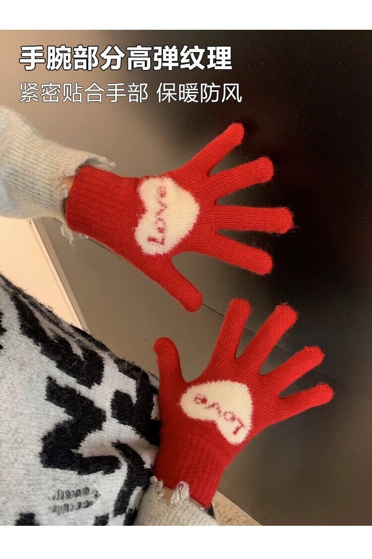 冬の甘い愛の赤い手袋の女性、学生バージョン、5 本指タッチ スクリーン、防寒、冬の暖かいライディング レッド 大人ガーリー スウィート キュート カジュアル ウィンター 冬物 15dd136223301