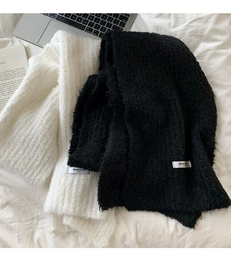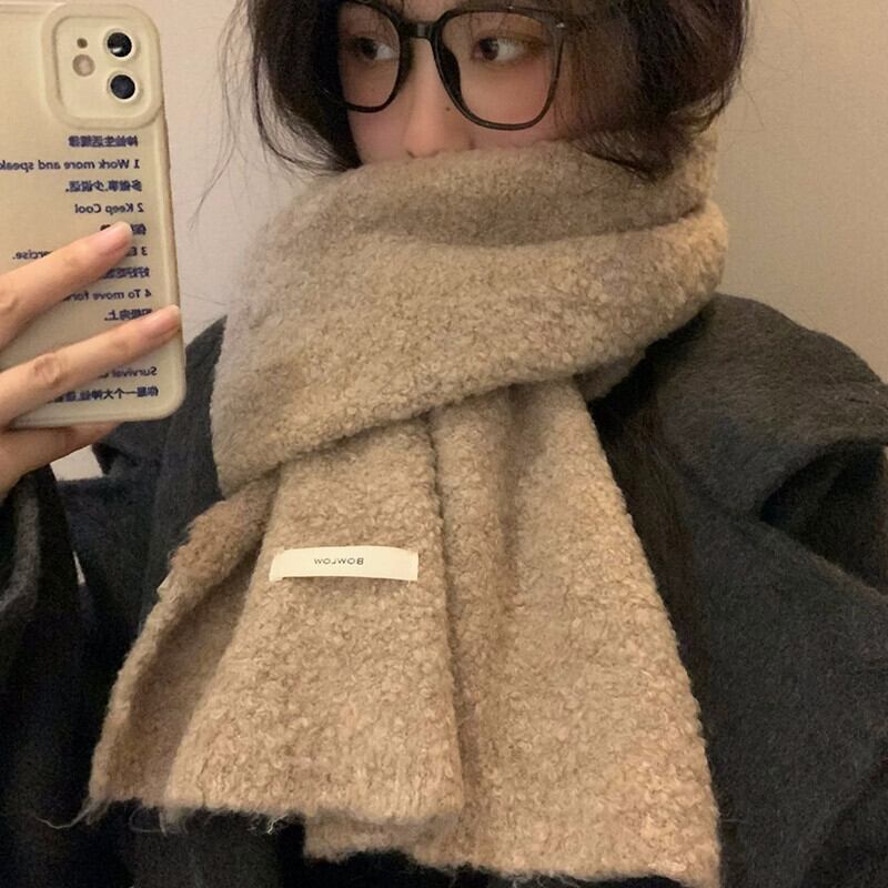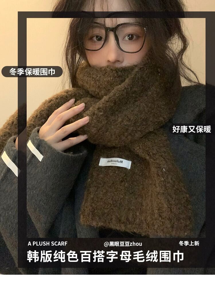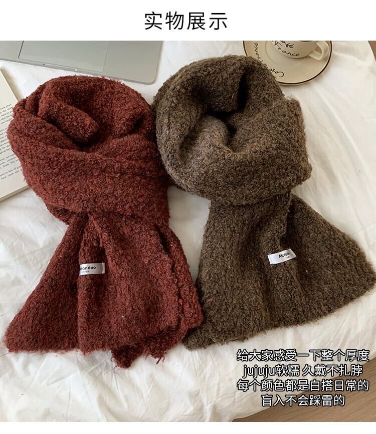 大気豪華なソフトとワックス状ニットスカーフ女性の冬 2023 新しいソリッドカラー肥厚暖かい学生スカーフ ウィンター 冬物 15dd89893889479