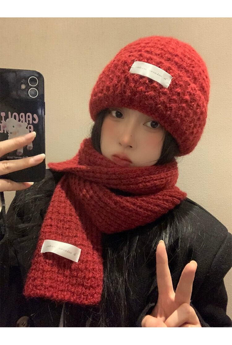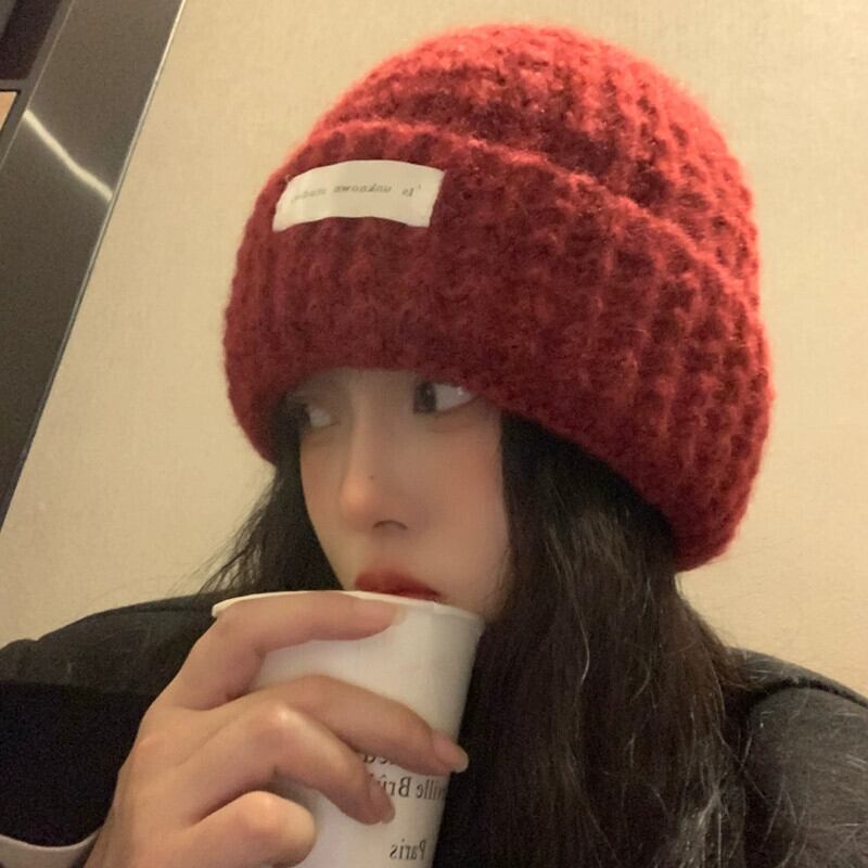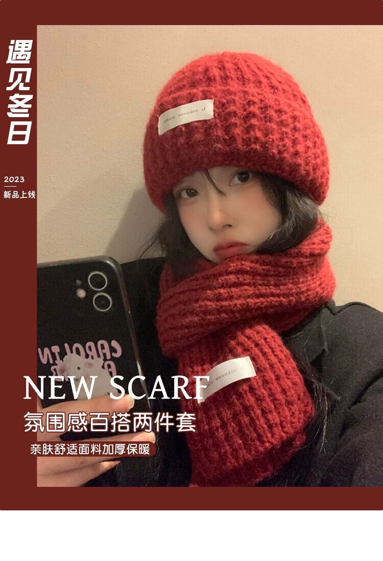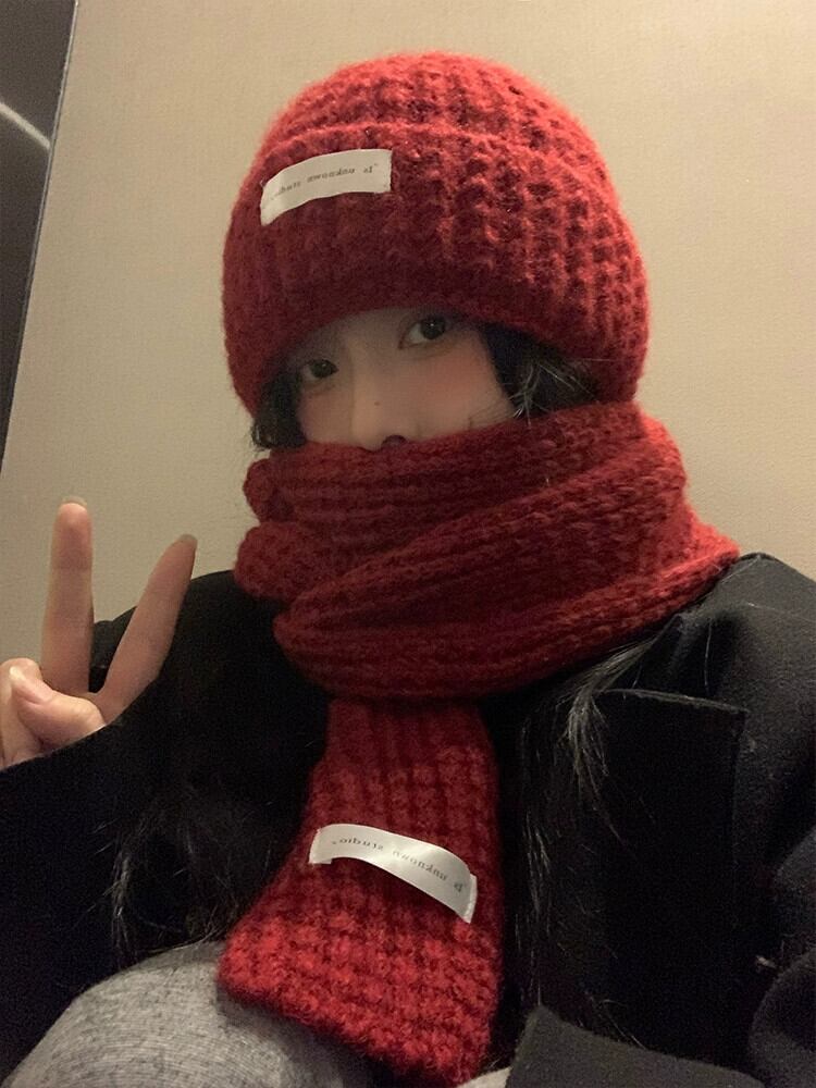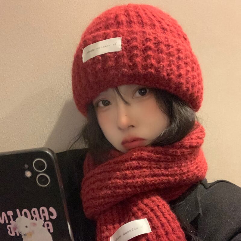大きい頭囲ニットウール帽子女性の秋と冬の新しい多用途ゆるい顔見せ小さなスカーフ帽子 2 点セット オータム 秋物 ウィンター 冬物 15dd94695490743