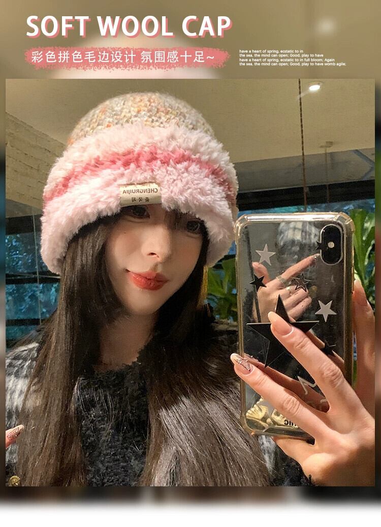 頭囲の大きい豪華なニット帽の女性、冬暖かくて多用途、顔が見える、小さな耳の保護、ウールの帽子、防寒帽子 ウィンター 冬物 15dd26354956041