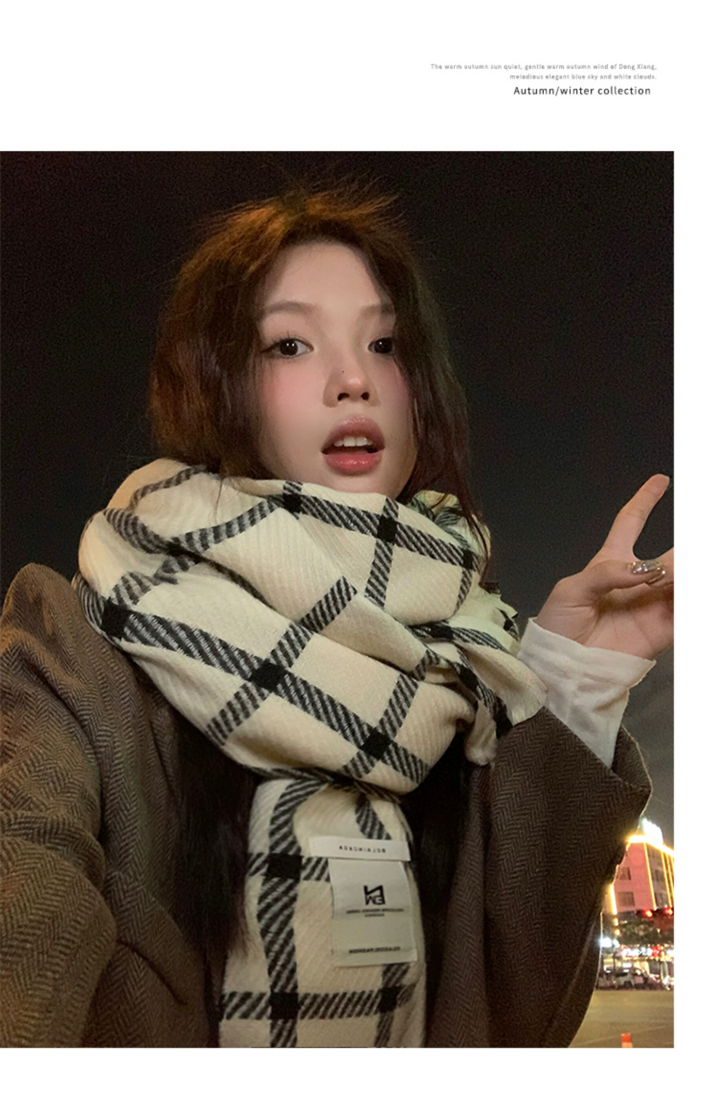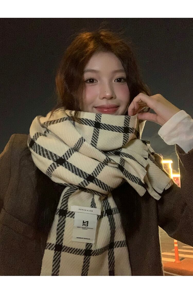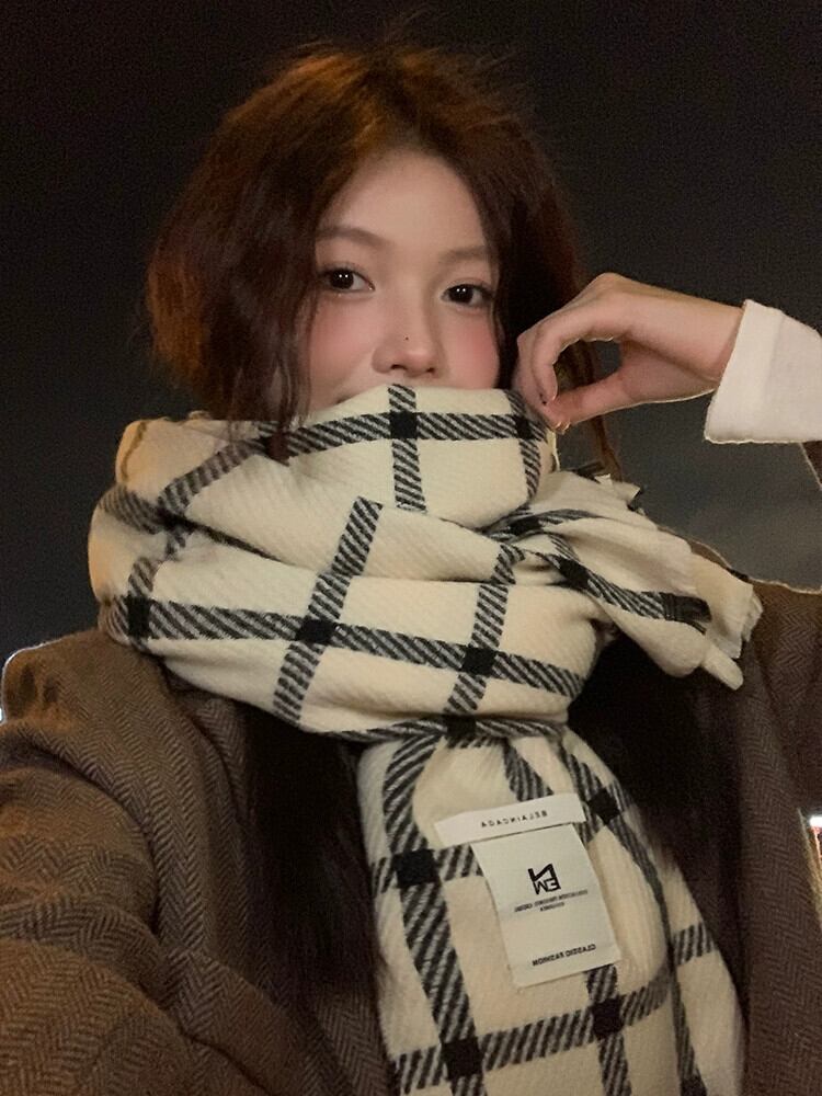 チェック柄スカーフレディース 2023 年冬新しいスタイル多用途ハイエンド防寒暖かいスカーフとベルベットの厚みのあるショール ウィンター 冬物 15dd11195209766