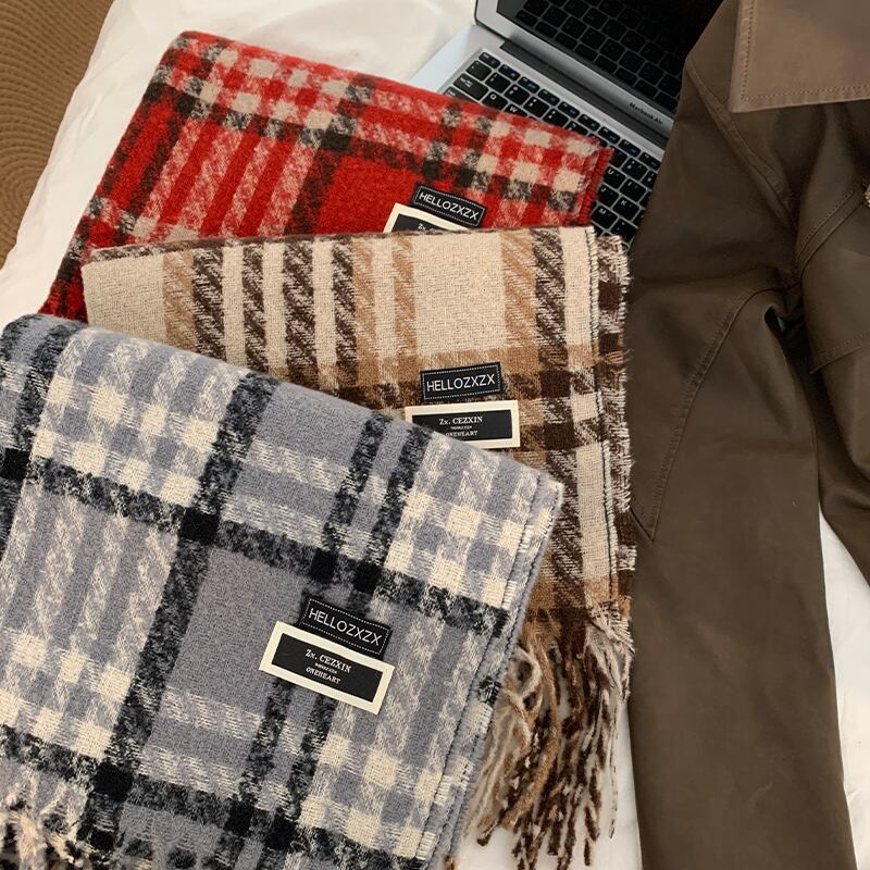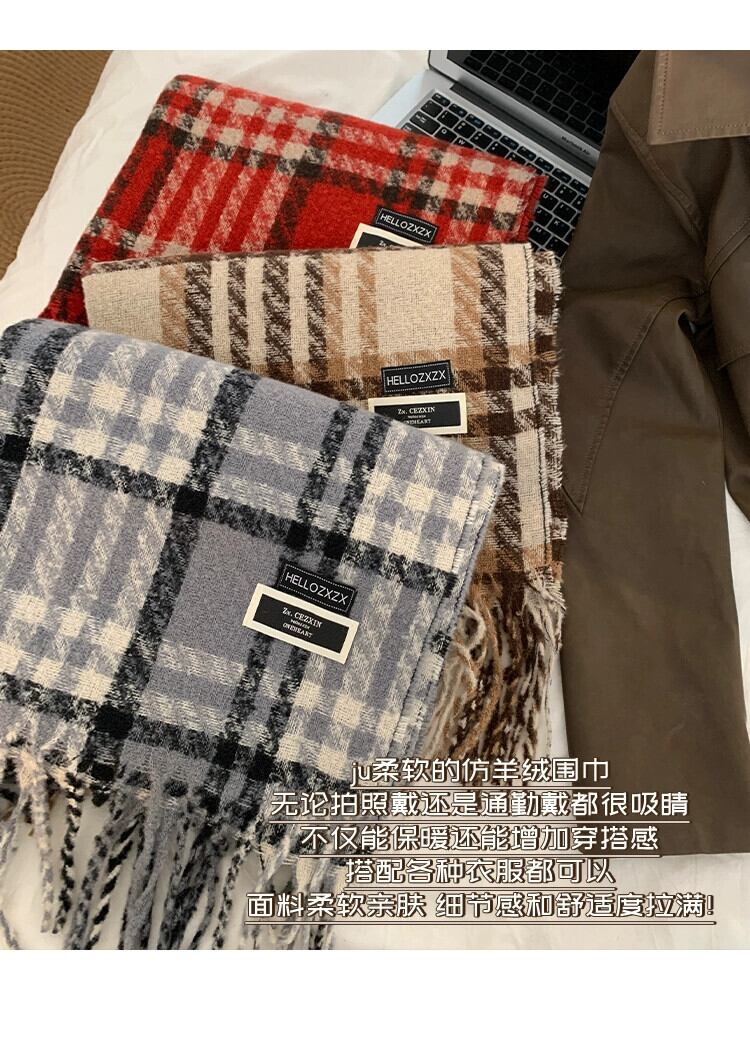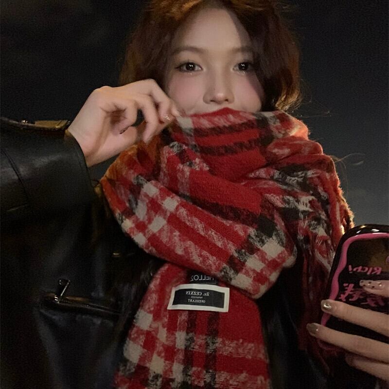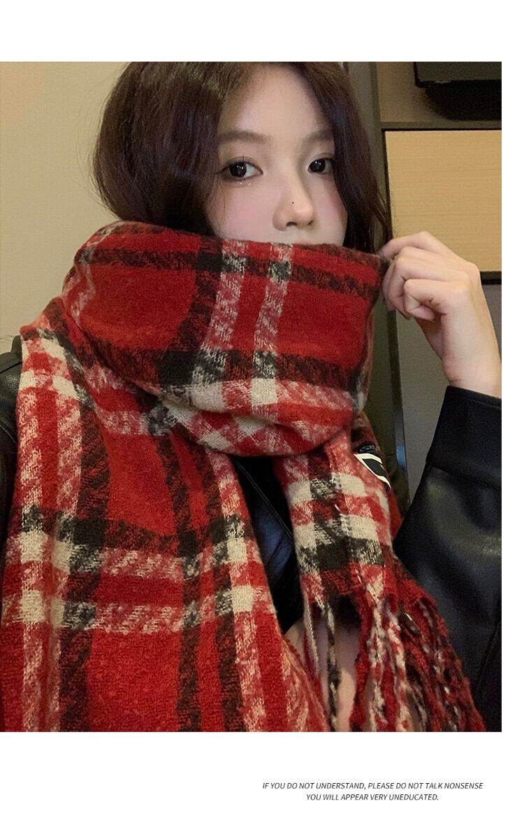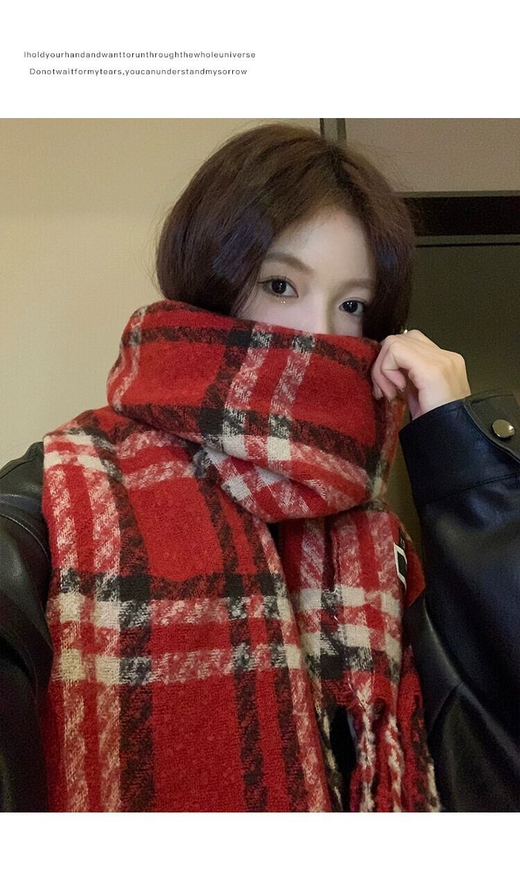 レトロなチェック柄の雰囲気の赤の暖かいスカーフ女性冬の厚い模造カシミアロングスカーフは、寒い傾向から保護します レッド ウィンター 冬物 15dd73992445706