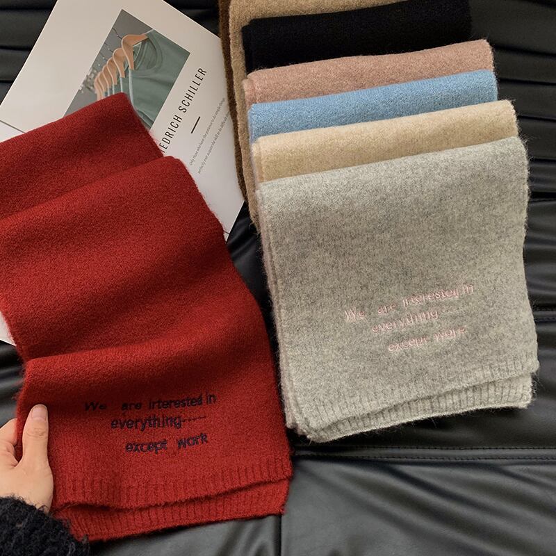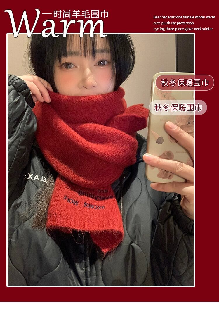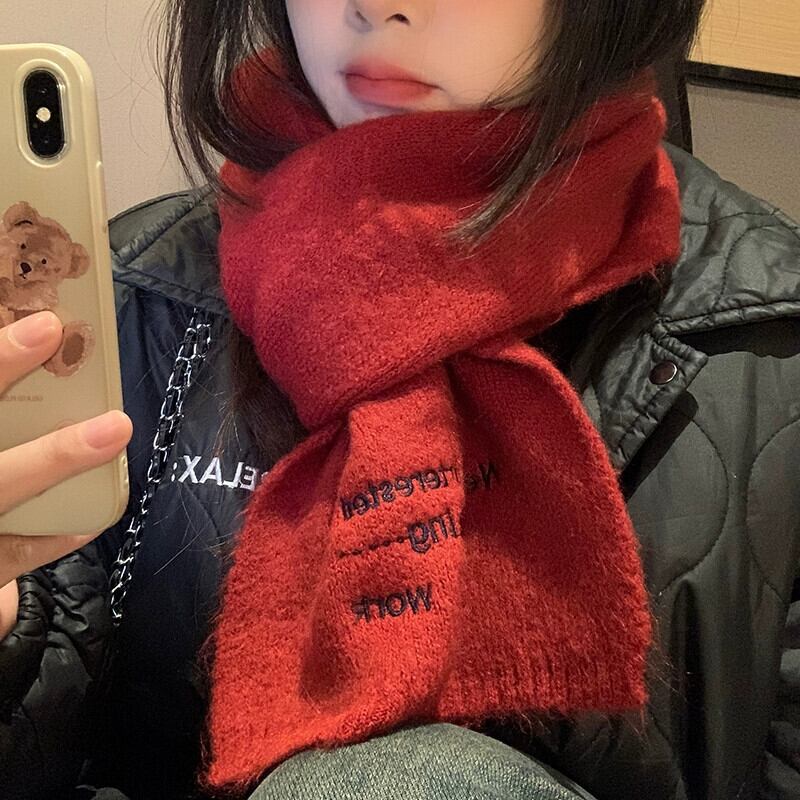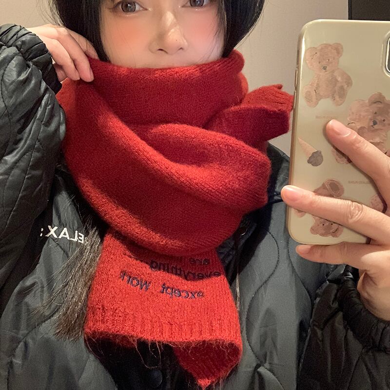 レトロ英語刺繍スカーフ女性冬 2023 新しい多用途学生暖かい赤ウールのスカーフ レッド ウィンター 冬物 15dd8481005875