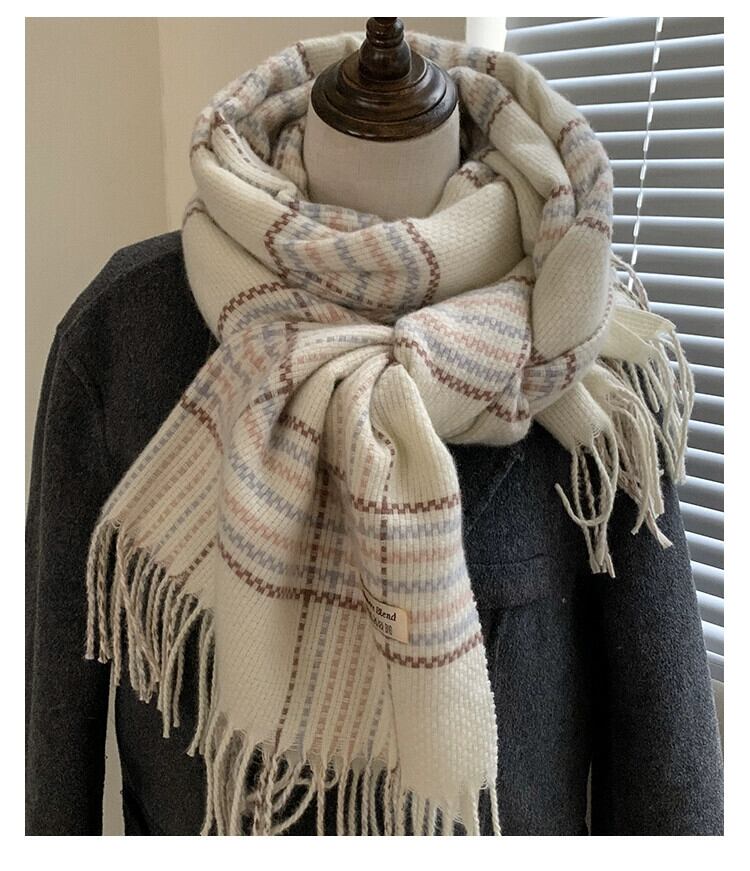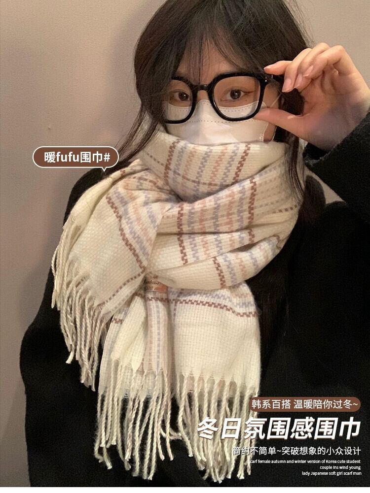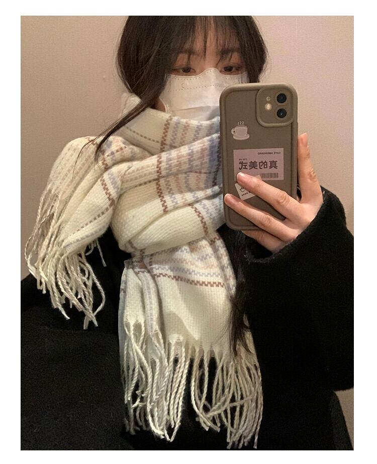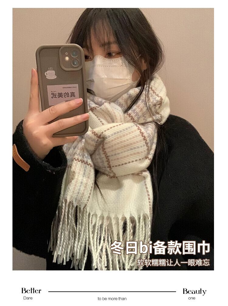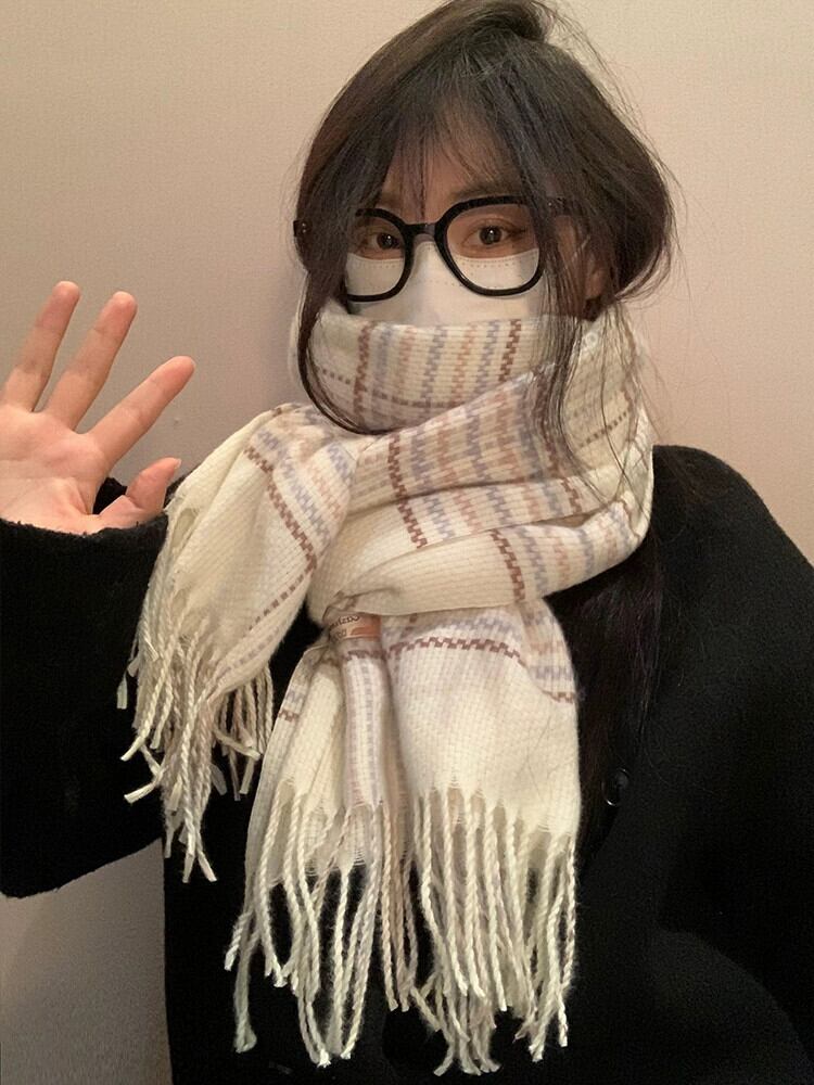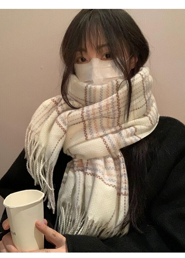 白チェック柄スカーフ女性の冬の新しいスタイル模造カシミヤハイエンド暖かく厚みのあるロングショールスカーフトレンディな ホワイト ウィンター 冬物 15dd33889864819