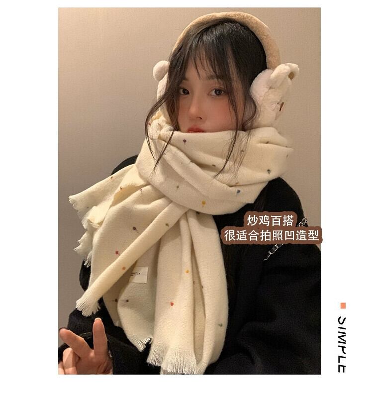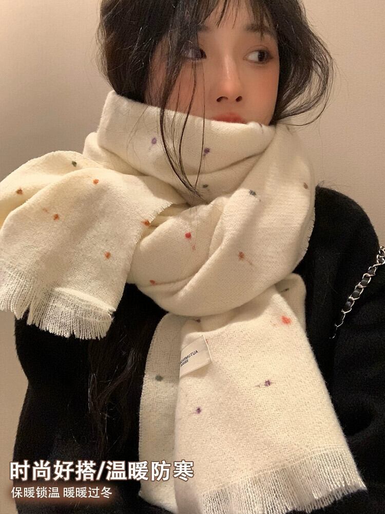 冬の雰囲気のあるスカーフレディース、キュートで多用途な白いスカーフ、スタイルカップルショール、ハイエンドで暖かい。 ホワイト 大人ガーリー スウィート カジュアル ウィンター 冬物 15dd75497454551