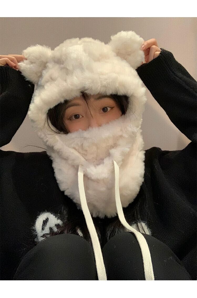 かわいいクマのぬいぐるみ帽子マスクスカーフオールインワン女性の冬スタイル暖かい耳保護雷峰帽子サイクリングと防寒 大人ガーリー スウィート キュート カジュアル ウィンター 冬物 15dd81252054813