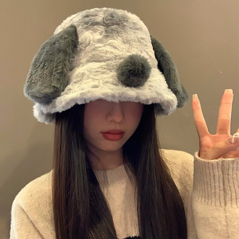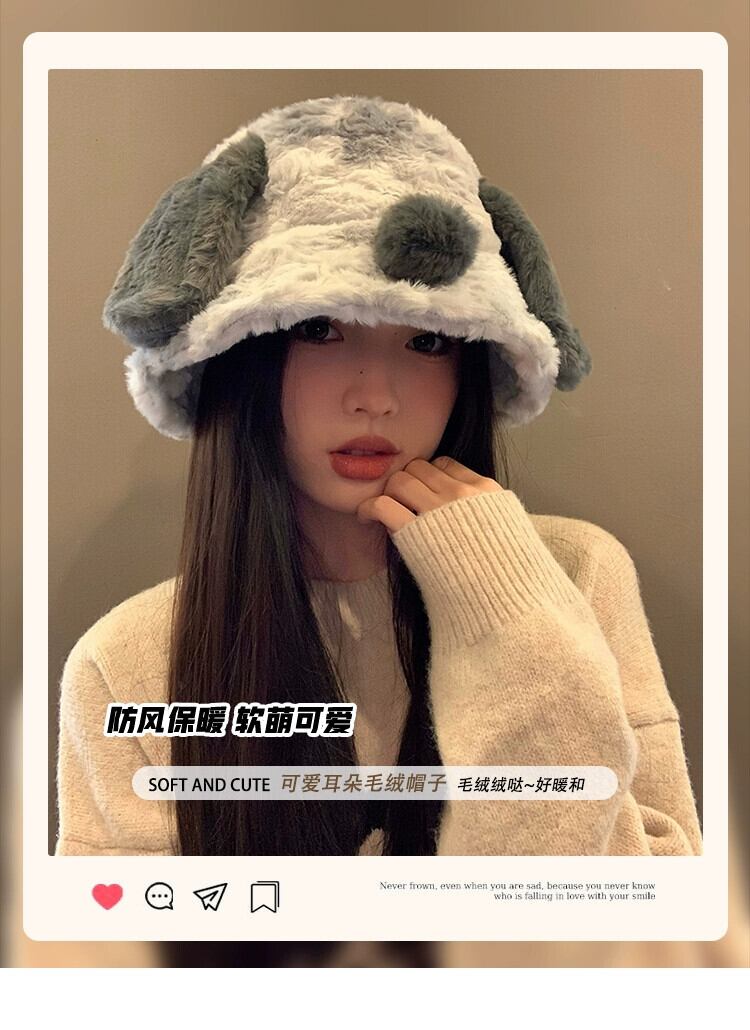 かわいい子犬の耳の漁師の帽子、冬の女性、豪華な、大きなつば、暖かい洗面器の帽子、多用途、顔に優しい、小さなバケットハット、トレンディです 大人ガーリー スウィート キュート カジュアル ウィンター 冬物 15dd42889632131