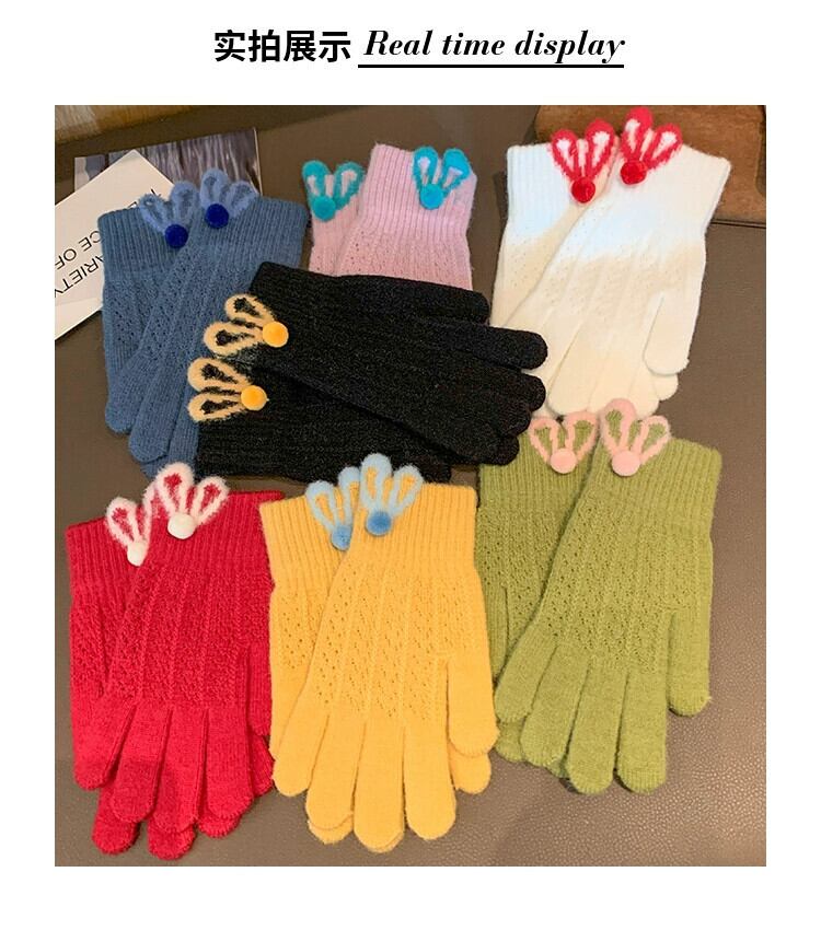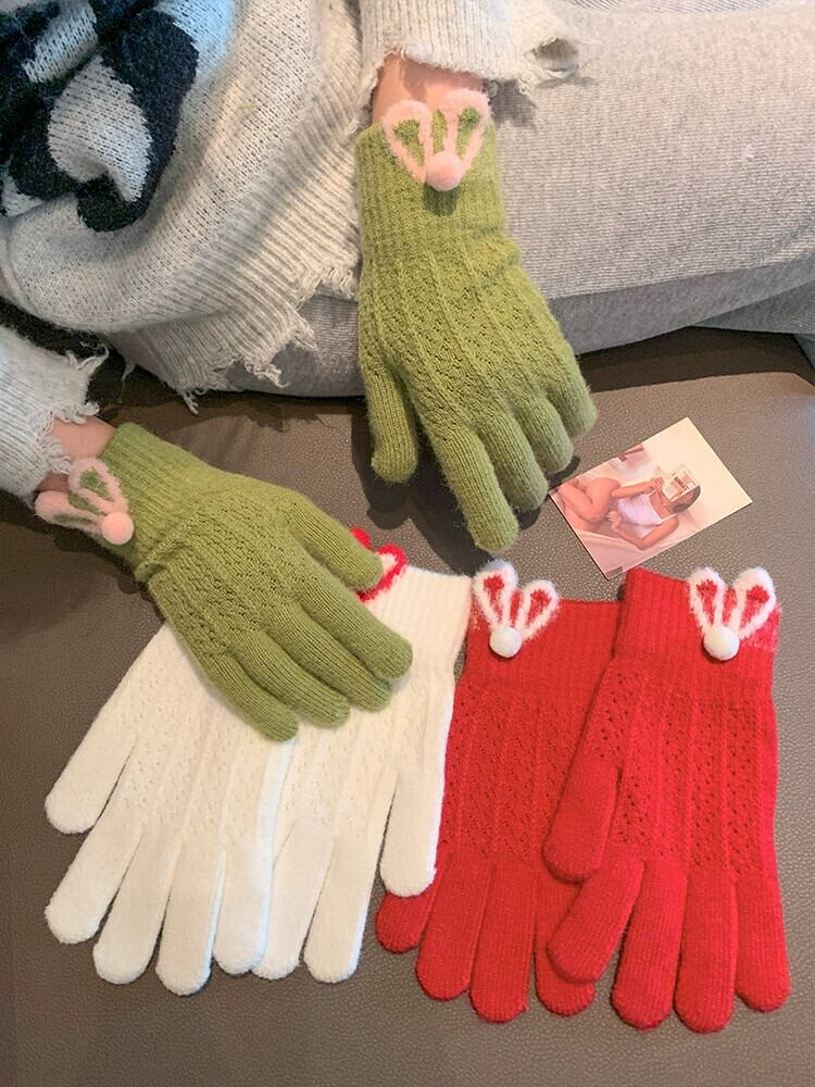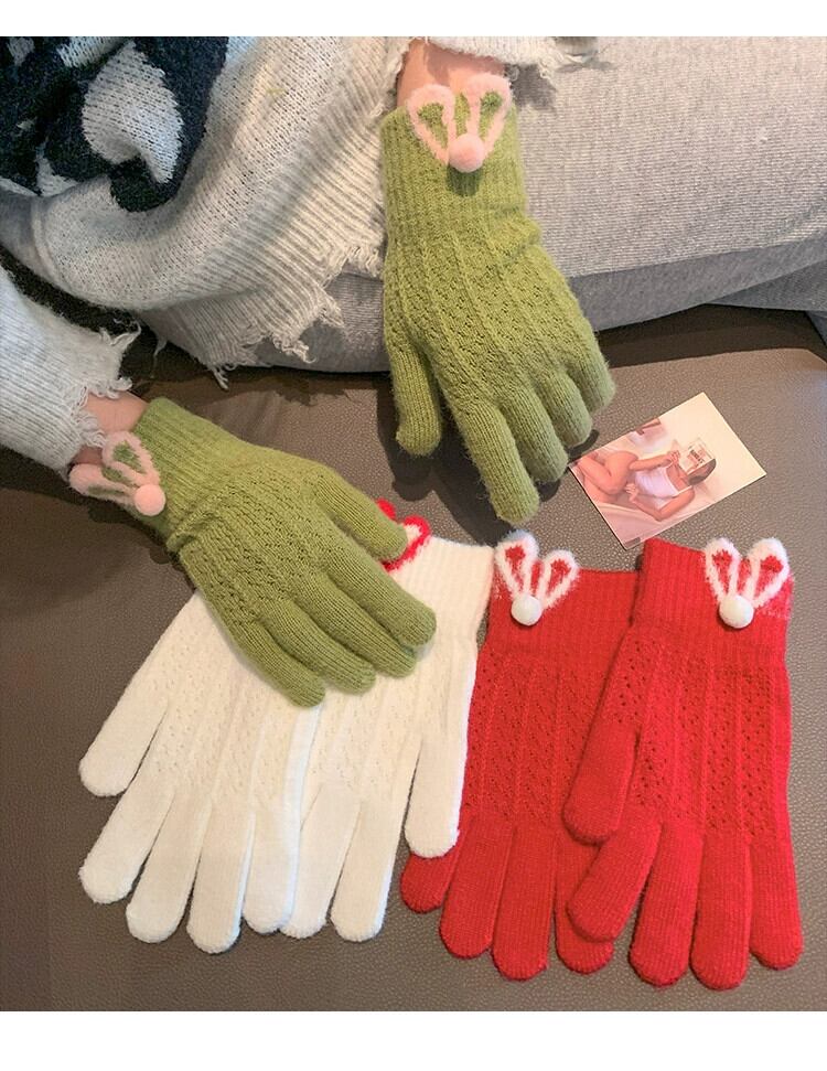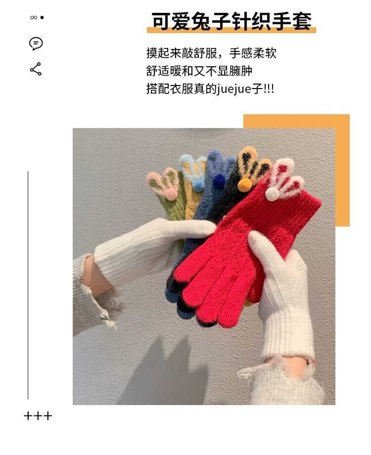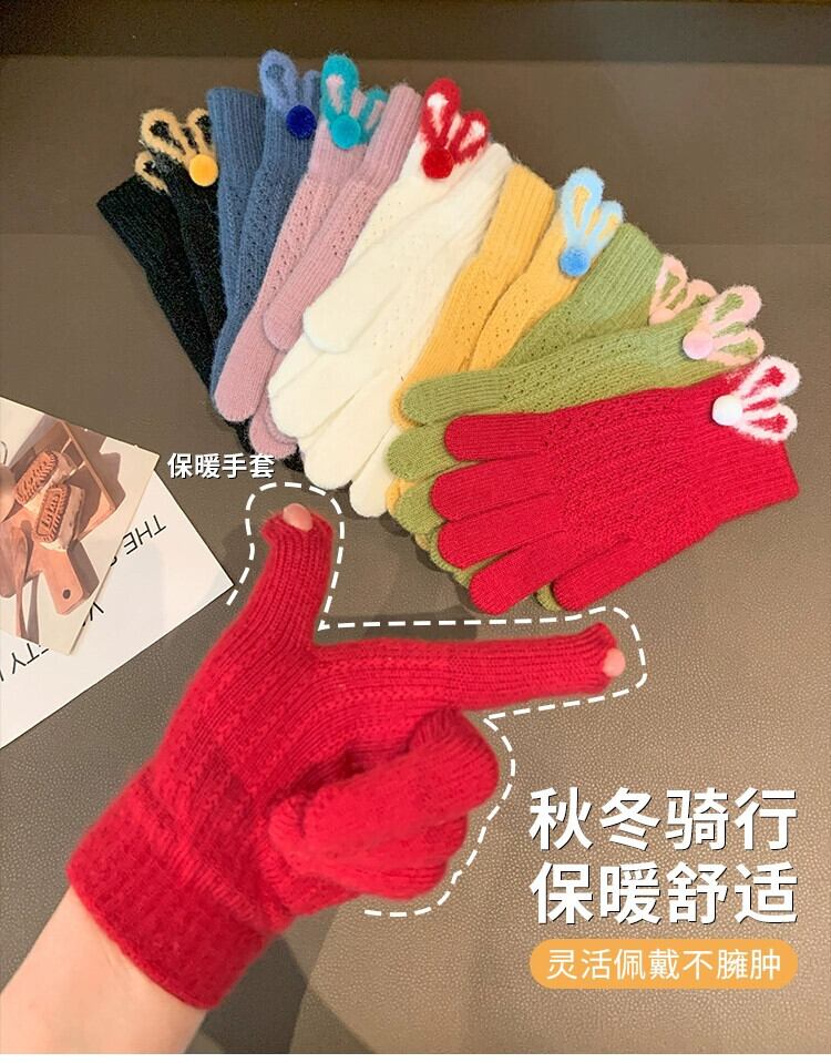 冬のかわいいウサギのぬいぐるみ手袋女性、スタイル、暖かくて耐寒性、露出した指、タッチスクリーン、自転車に乗っている学生、指が割れ、トレンディです。 大人ガーリー スウィート キュート カジュアル ウィンター 冬物 15dd98540194353
