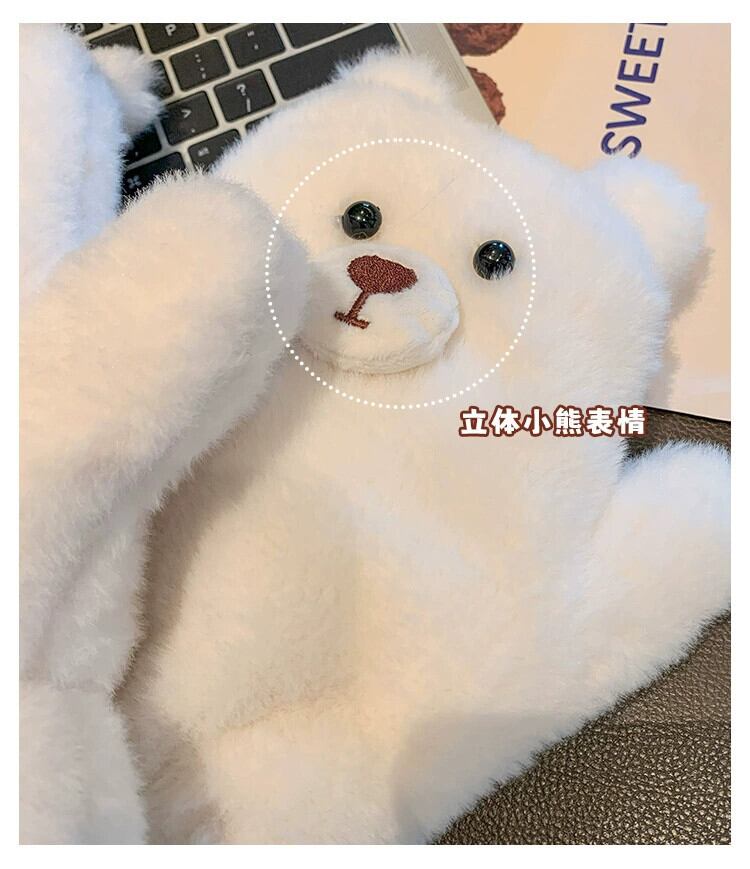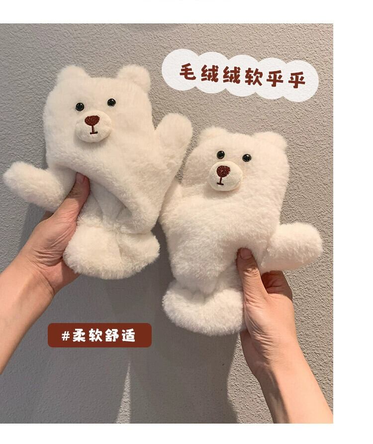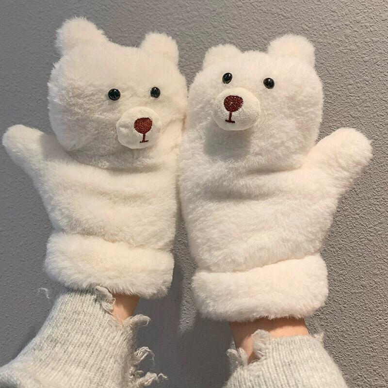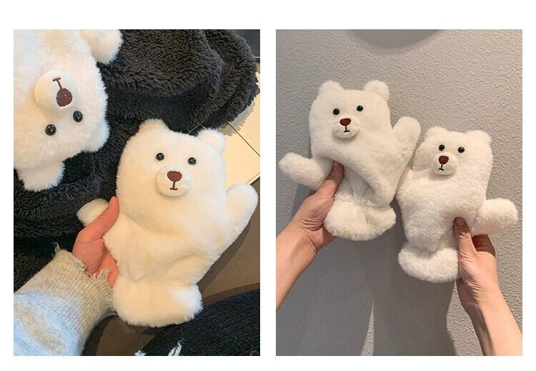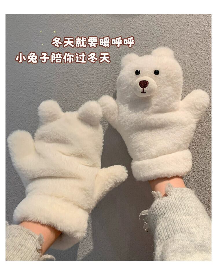 かわいいクマのぬいぐるみ手袋女性用冬用、暖かく厚みのある防寒ホルターネックミトン、オールインクルーシブサイクリンググローブ 大人ガーリー スウィート キュート カジュアル ウィンター 冬物 15dd59046095759