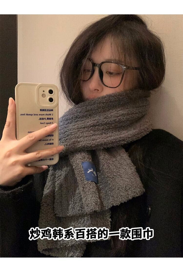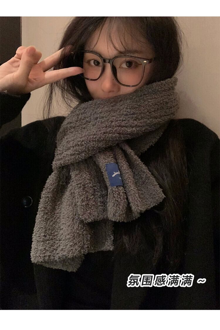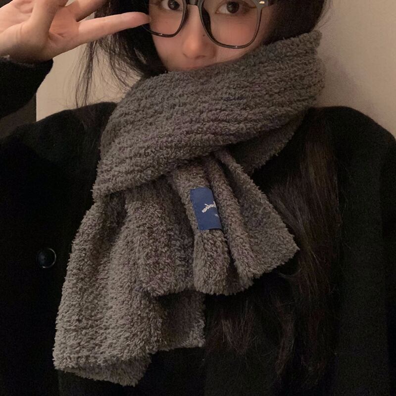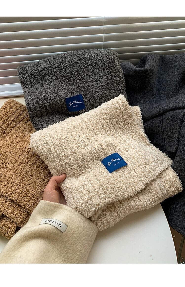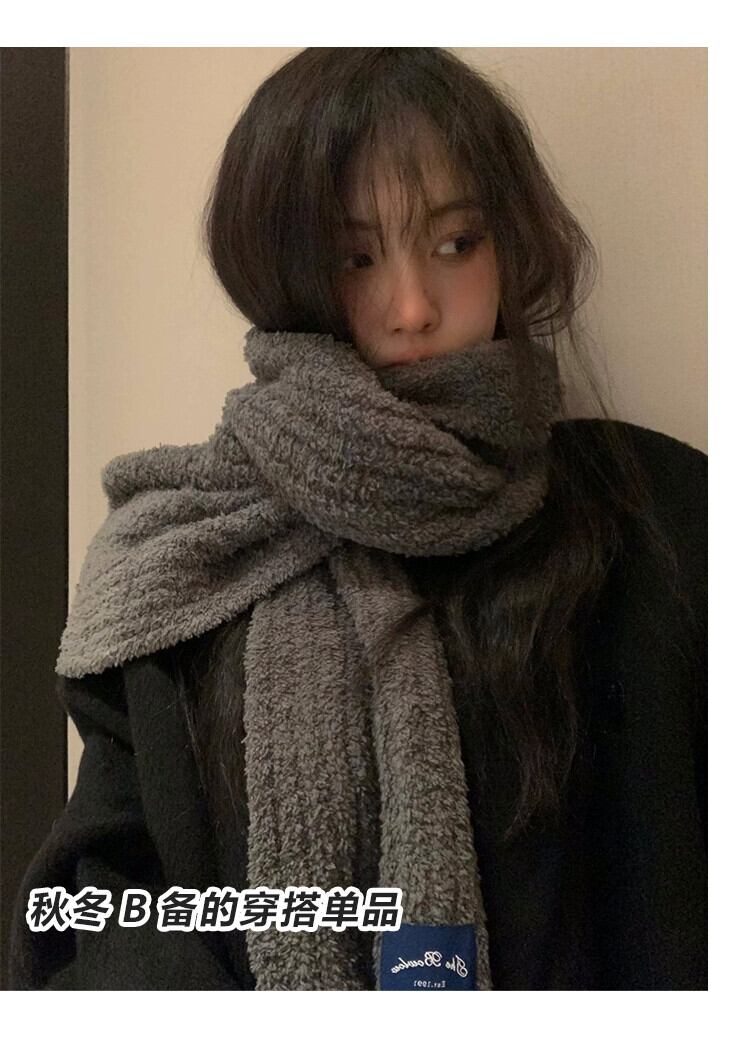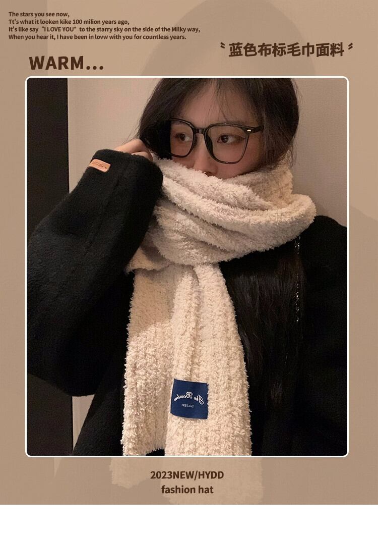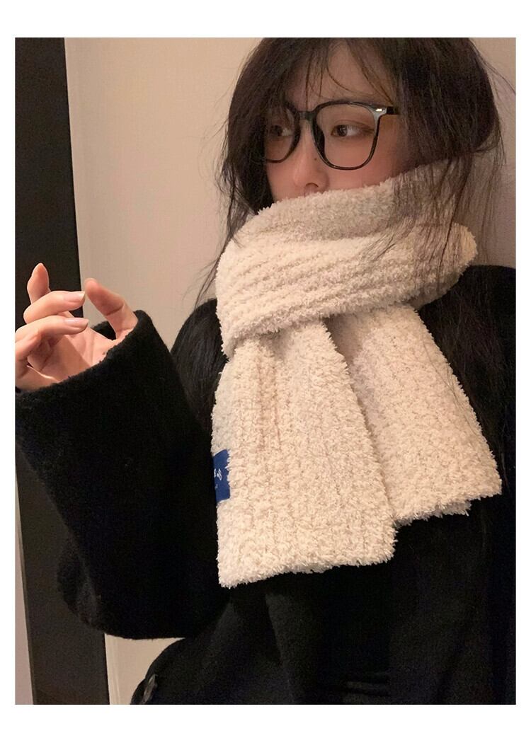 ese スカーフ女性冬 2023 新しい毛皮のような無地ウールニット肥厚暖かい白学生スカーフ ホワイト ウィンター 冬物 ソリッドカラー 15dd74334512002