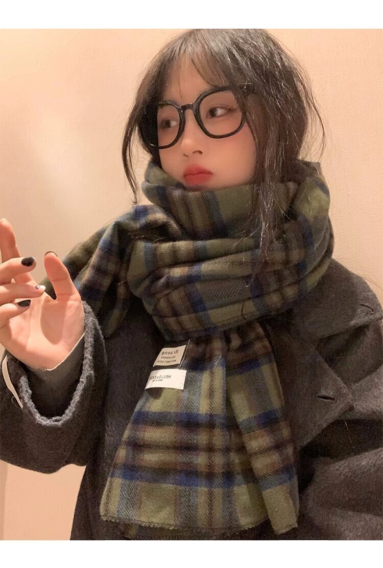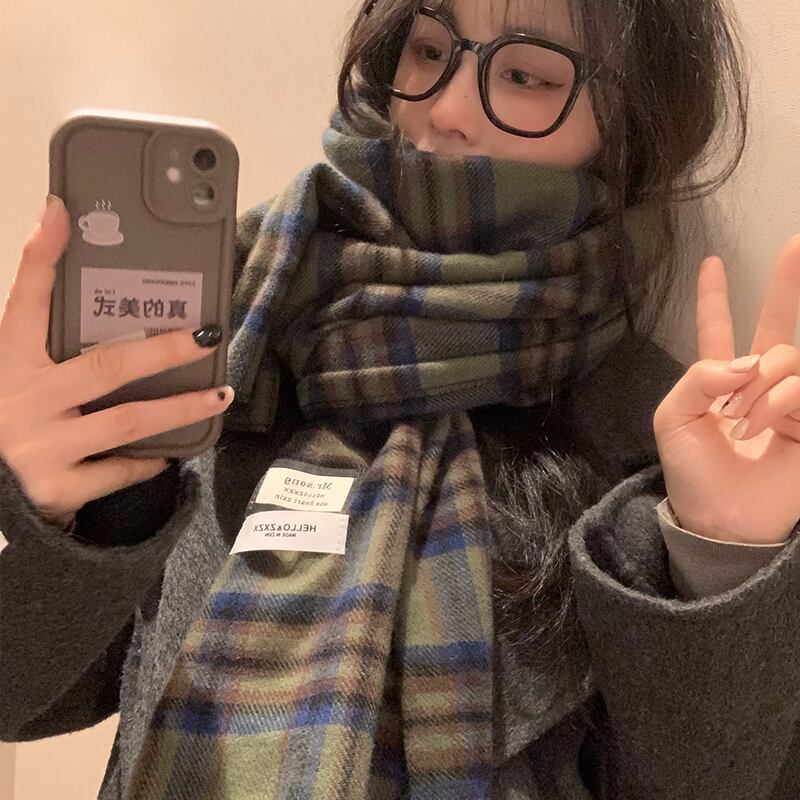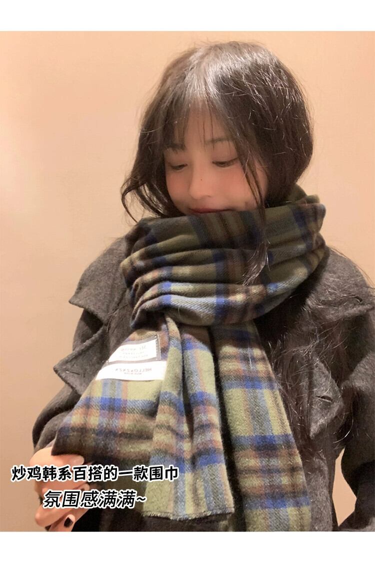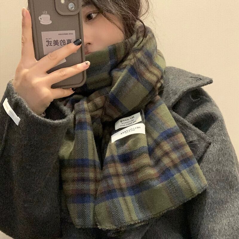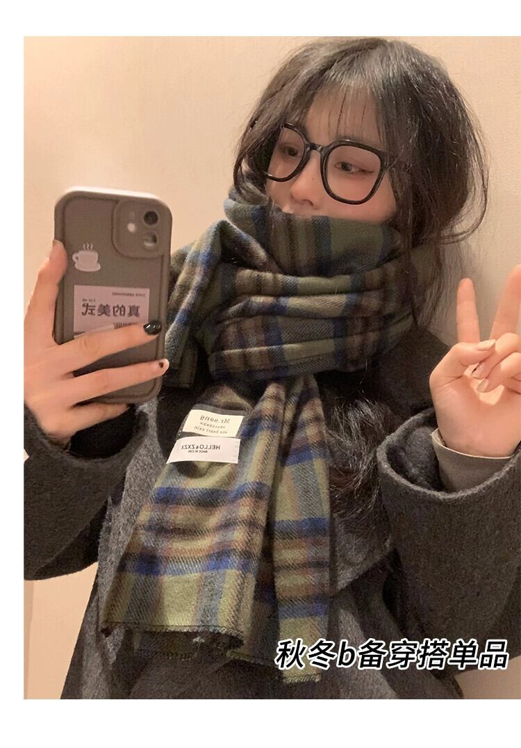 2023 新グリーンチェック柄スカーフ女性冬バージョン ins 模造カシミヤハイエンド暖かい学生スカーフトレンディな ウィンター 冬物 15dd32763790650