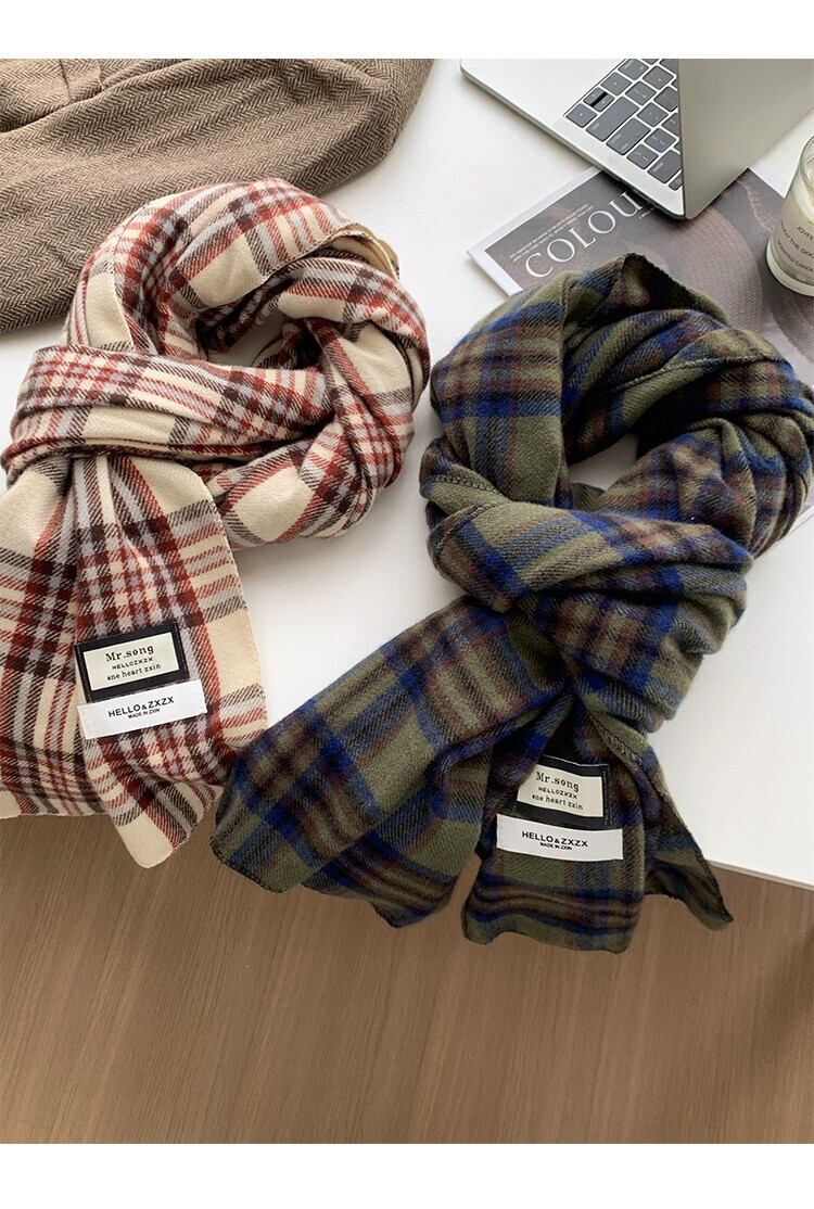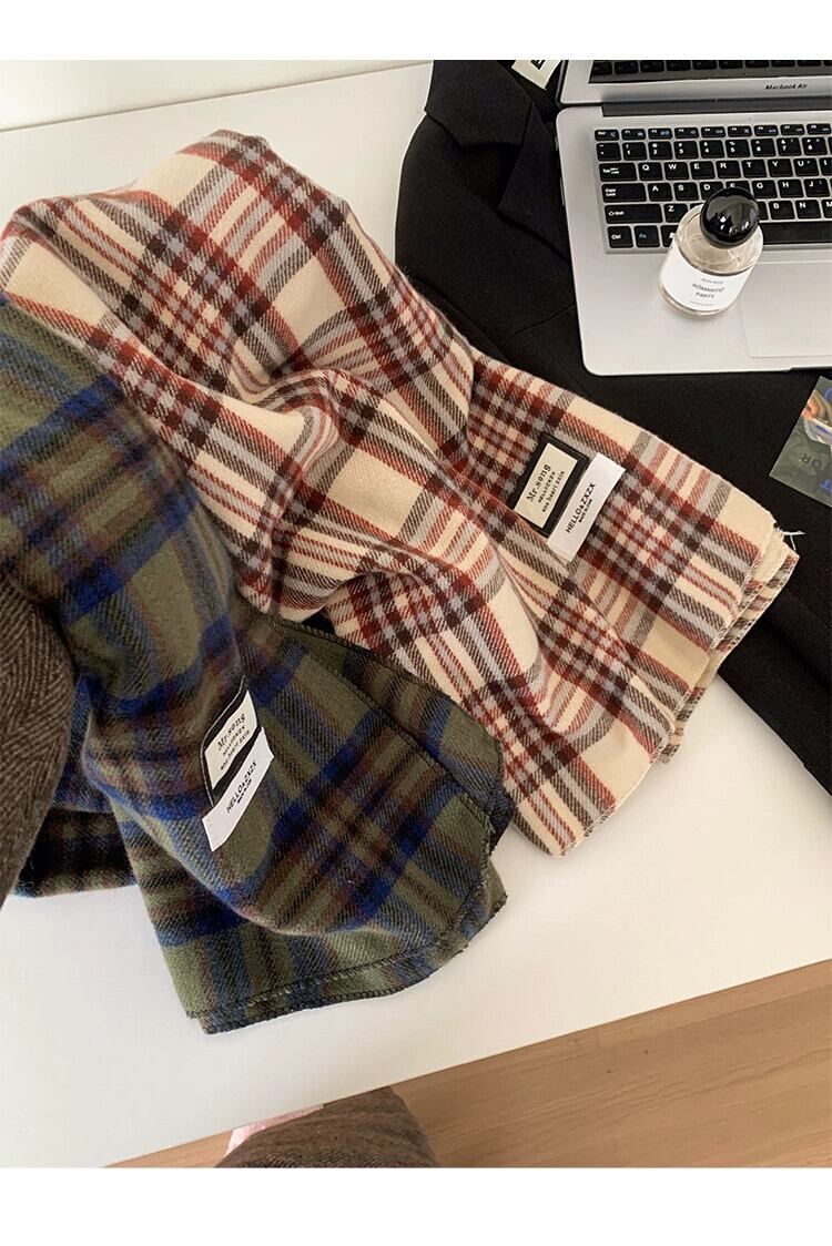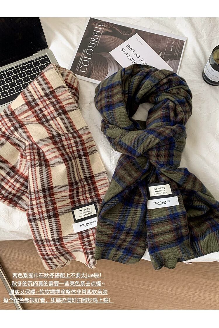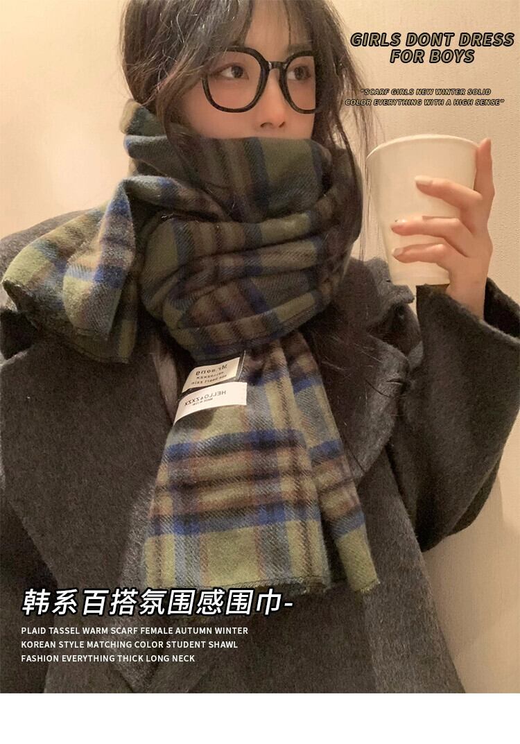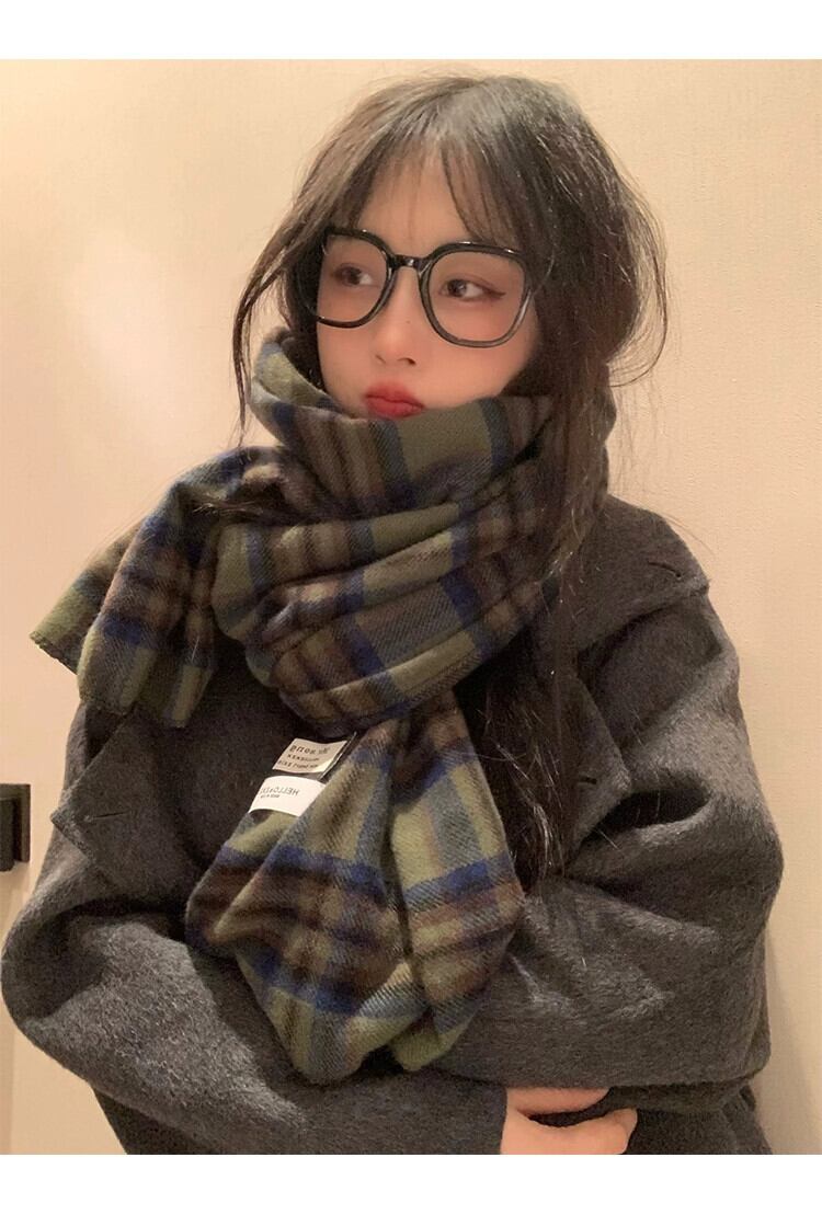 2023 新グリーンチェック柄スカーフ女性冬バージョン ins 模造カシミヤハイエンド暖かい学生スカーフトレンディな ウィンター 冬物 15dd32763790650