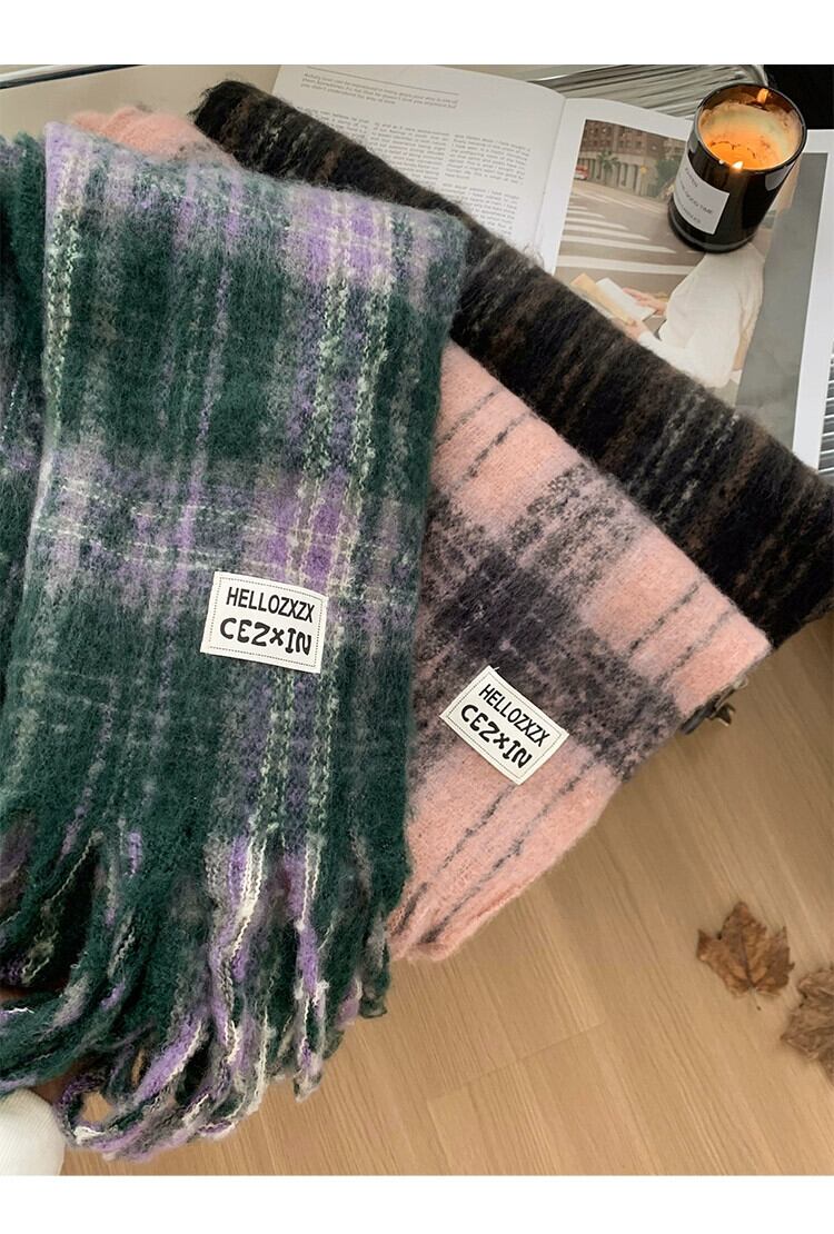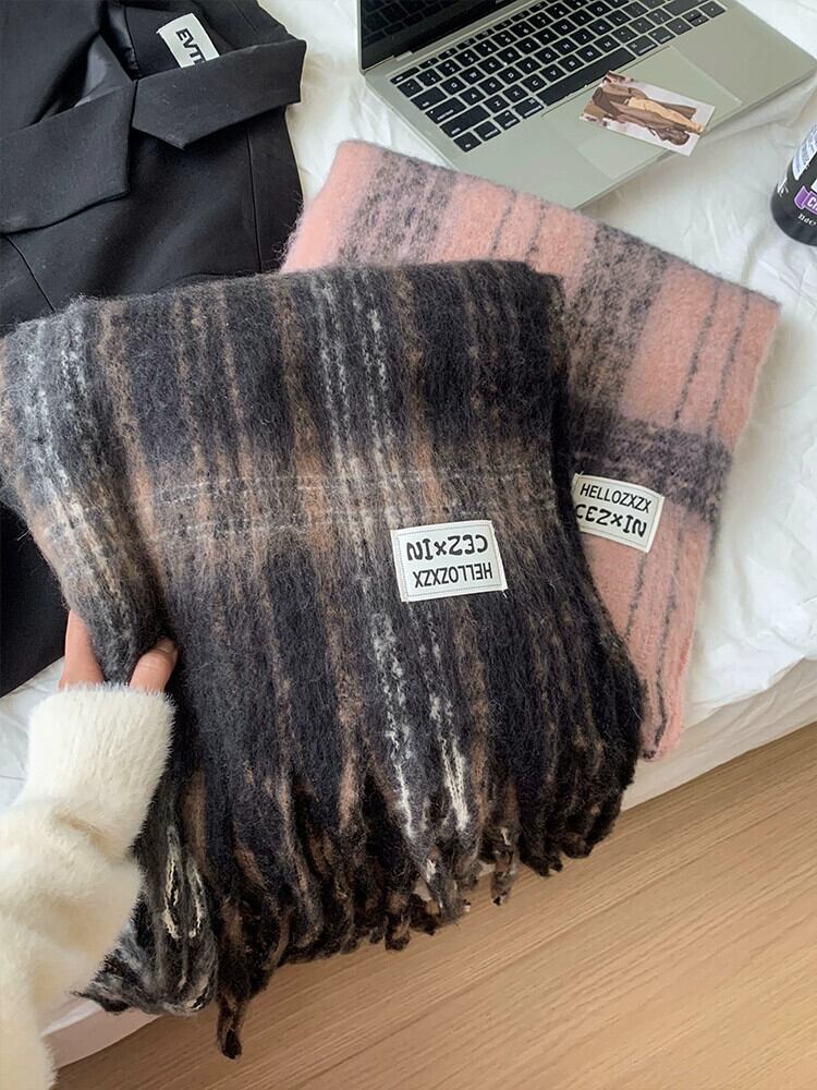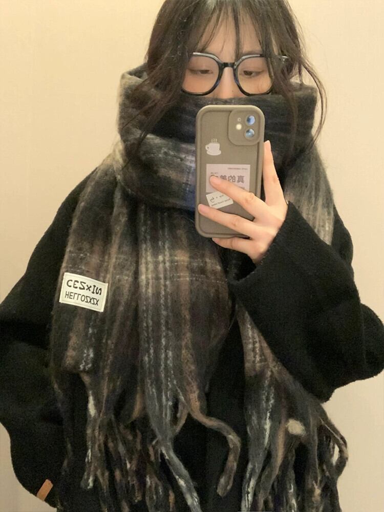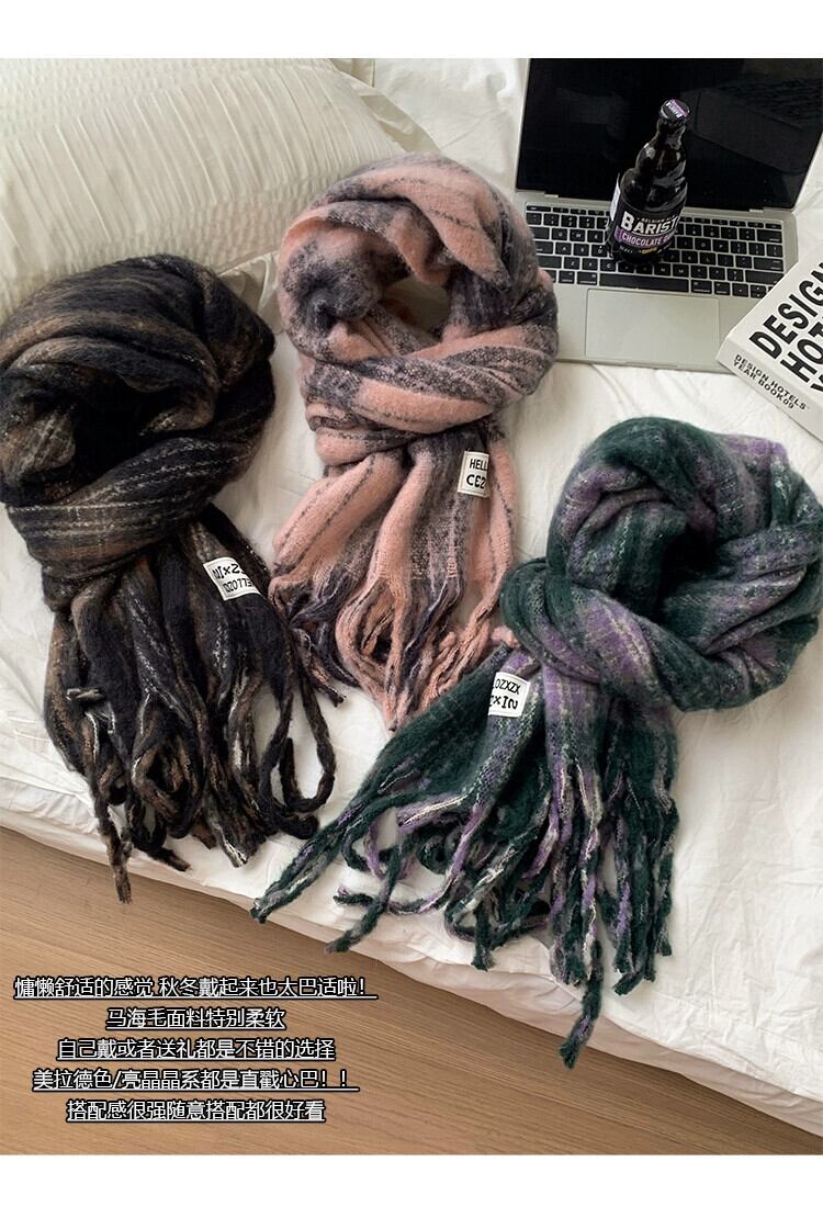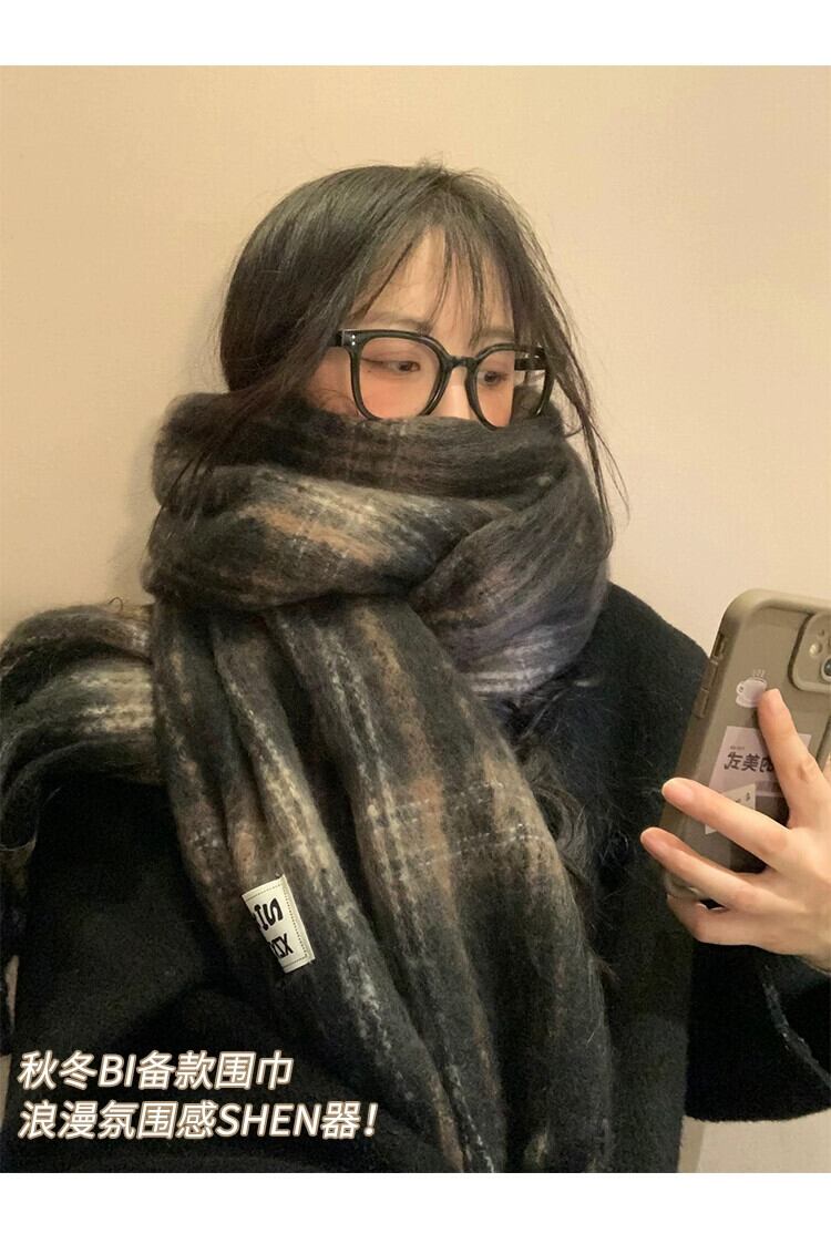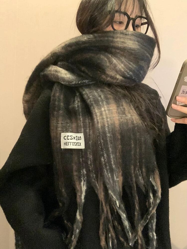 2023 スタイルインチェック柄テルスカーフ女性の秋と冬暖かくて多用途なモヘアショールとスカーフトレンディ オータム 秋物 ウィンター 冬物 15dd75262302090