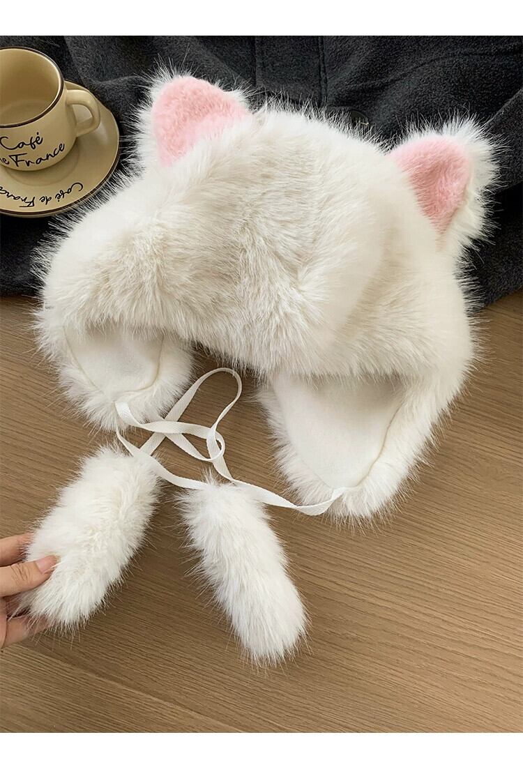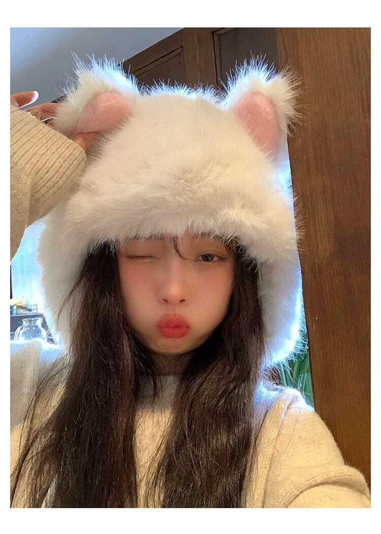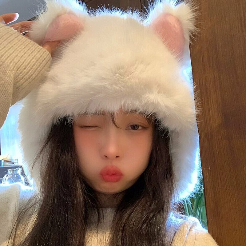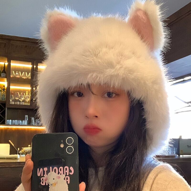 これらのかわいい猫耳豪華な帽子の女性の秋と冬の新しいスタイルの顔が見える小さな雷峰帽子暖かくて耐寒性の耳保護帽子 大人ガーリー スウィート キュート カジュアル オータム 秋物 ウィンター 冬物 15dd85052622381