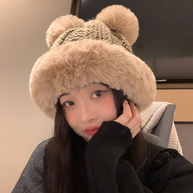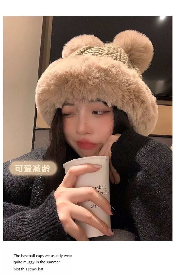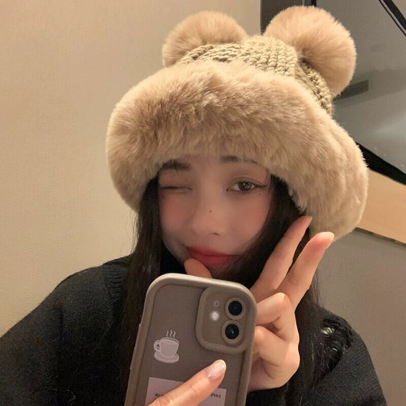 かわいいクマの耳ぬいぐるみ雷峰帽子女性の冬 2023 厚い暖かさ多用途防寒耳保護帽子 大人ガーリー スウィート キュート カジュアル ウィンター 冬物 15dd25251779585