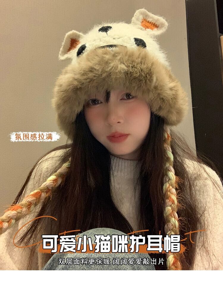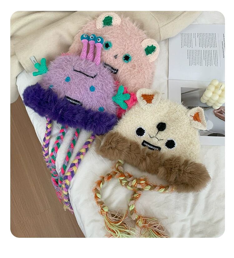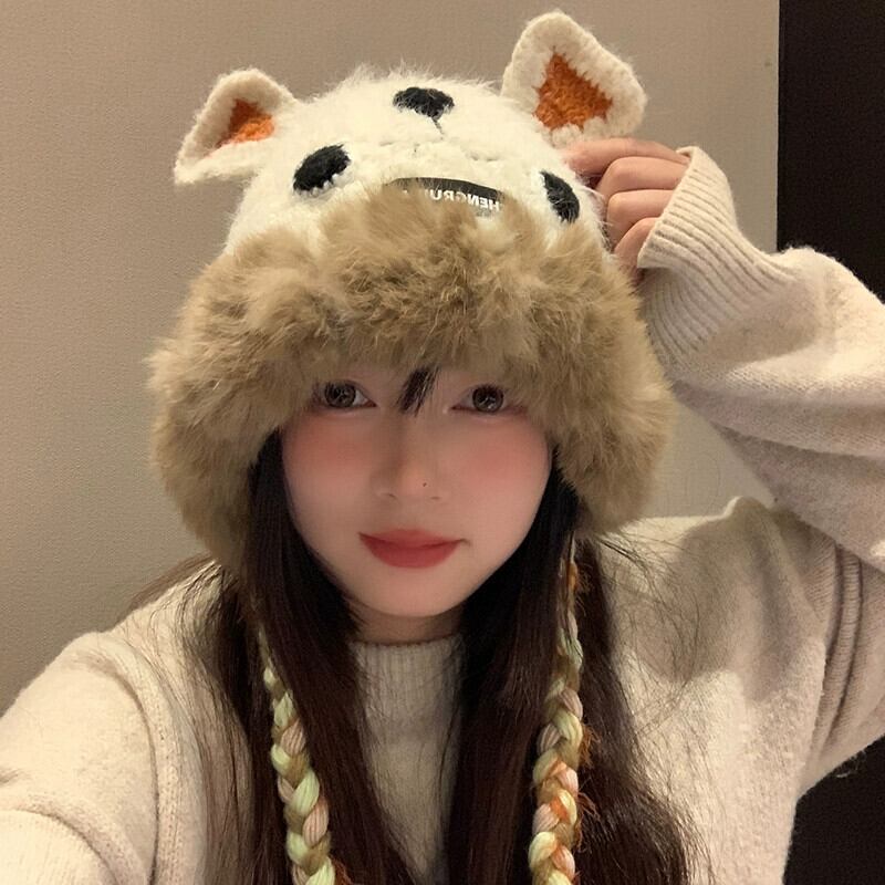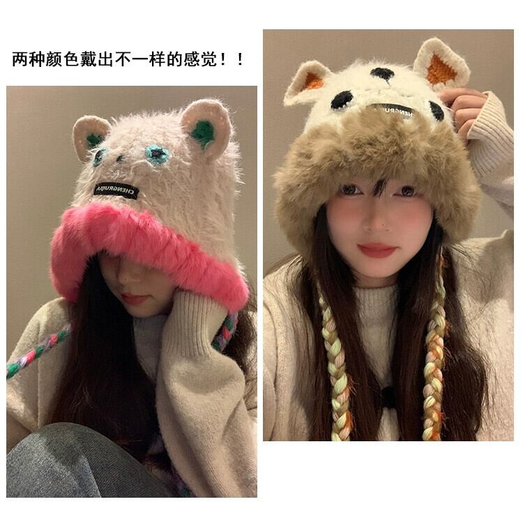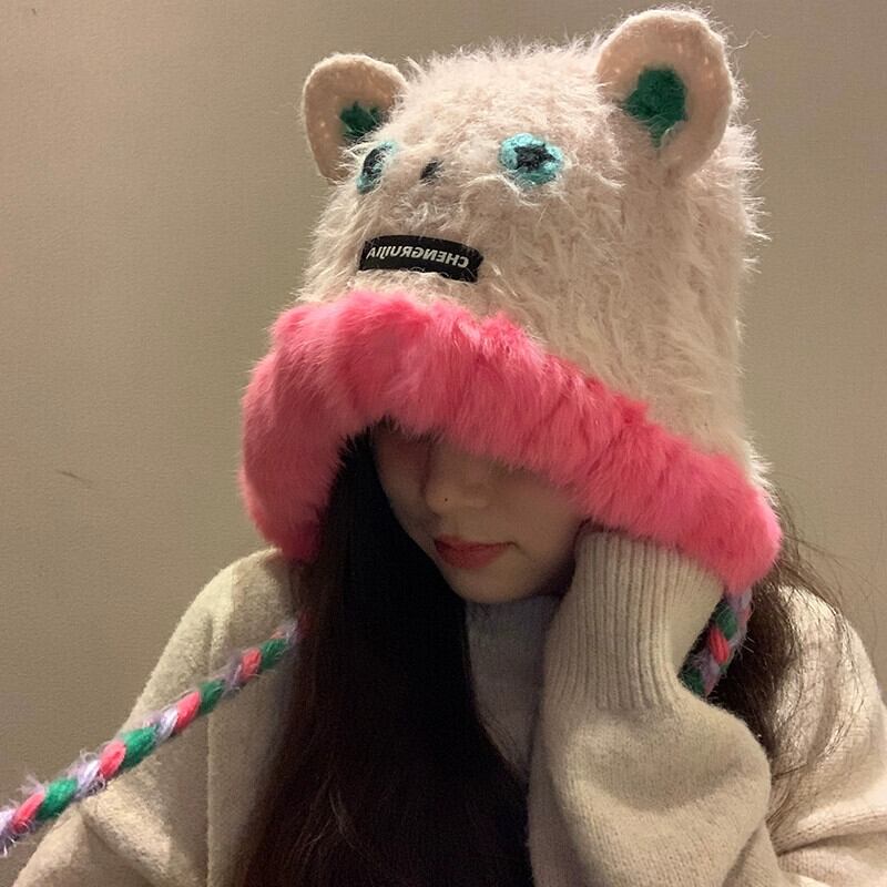 かわいいクマのぬいぐるみ Lei Feng 帽子女性の冬 2023 毛皮で暖かく防寒ニット耳保護ビーニー 大人ガーリー スウィート キュート カジュアル ウィンター 冬物 15dd73794010932