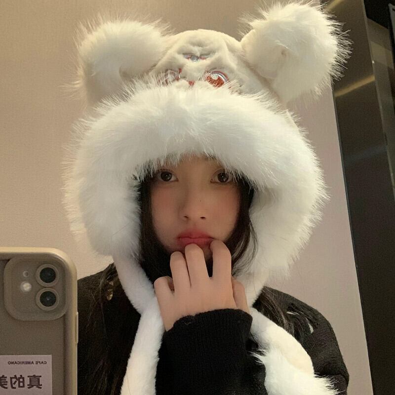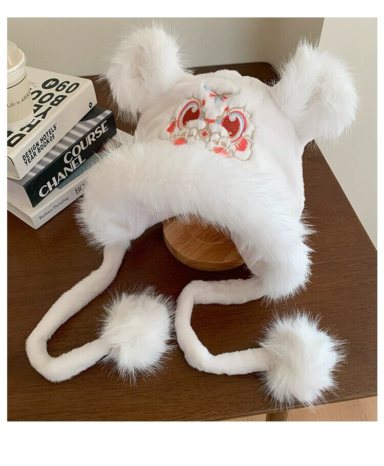 全国トレンドかわいい刺繍ライオン覚醒ぬいぐるみ帽子女性冬暖かく耐寒性耳保護帽子顔リトルバイカー雷峰帽子 レッド 大人ガーリー スウィート キュート カジュアル ウィンター 冬物 15dd8060093864