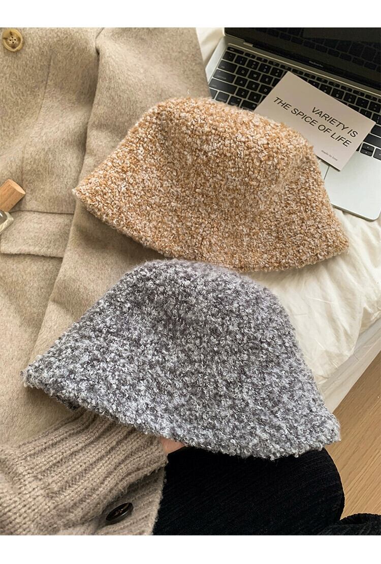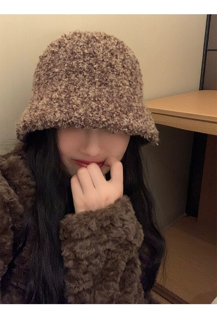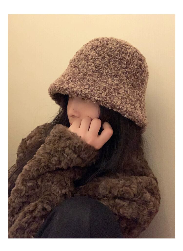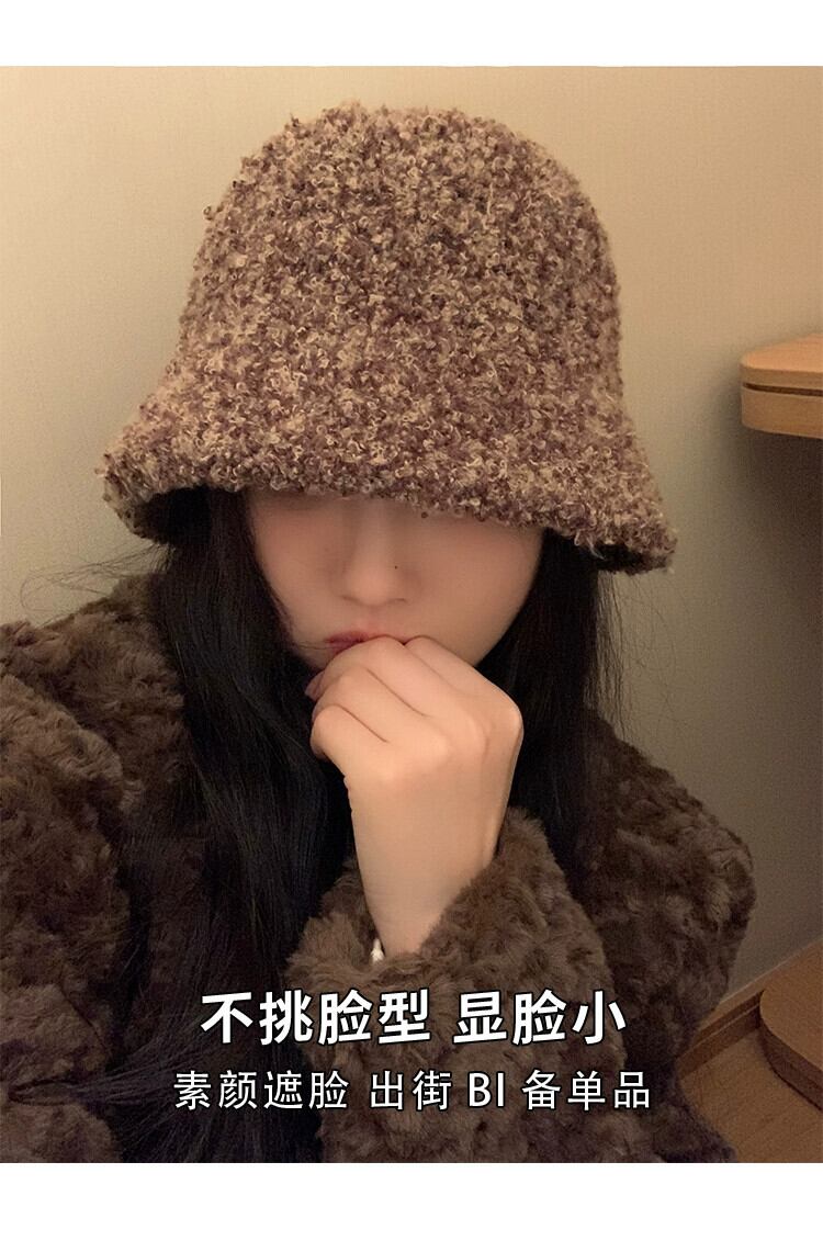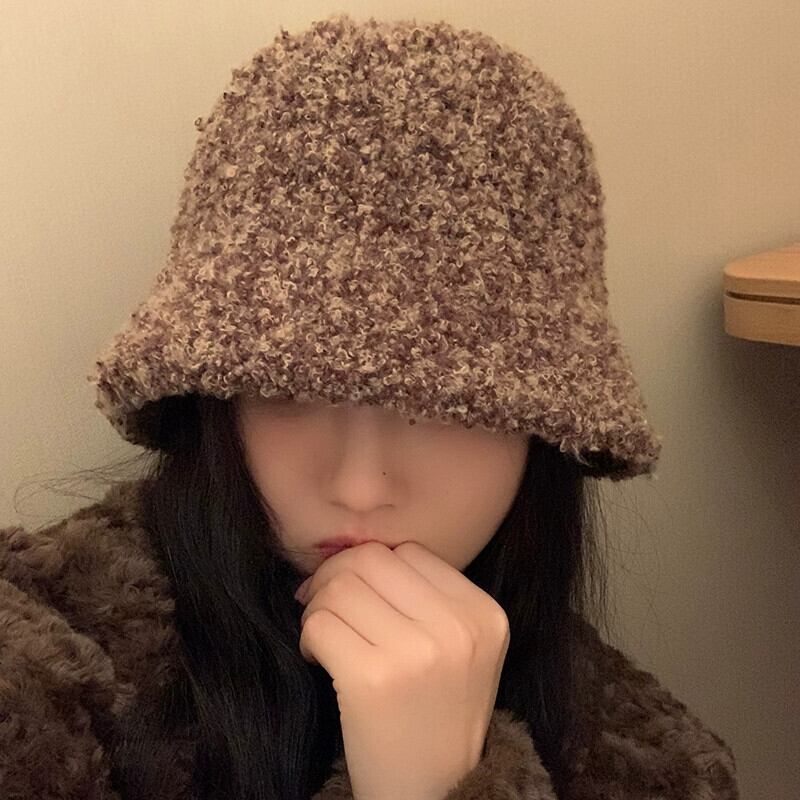 レトロな漁師の帽子の女性の秋と冬のウール子羊無地フェイスカバービッグヘッド盆地帽子多用途肥厚暖かいバケットハット オータム 秋物 ウィンター 冬物 15dd21845478272
