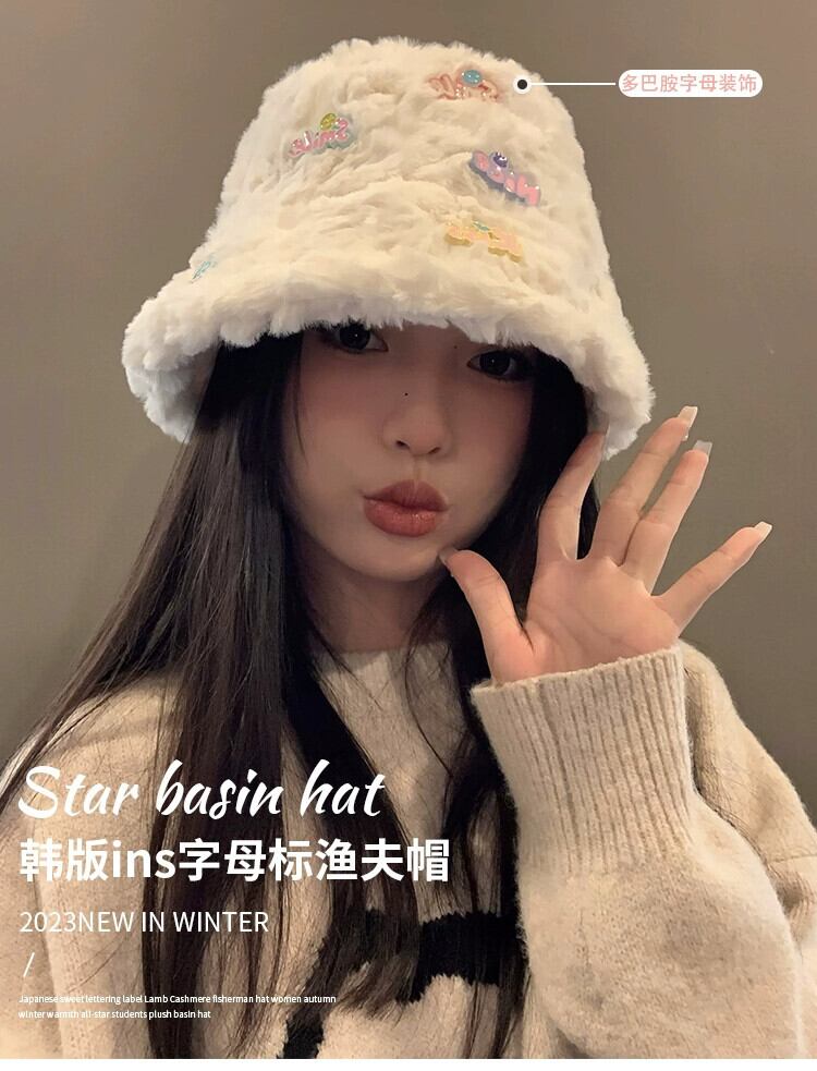 スター豪華な漁師の帽子の女性の秋と冬 2023 厚く暖かい白の ese かわいい盆地帽子は小顔を示します ホワイト 大人ガーリー スウィート キュート カジュアル オータム 秋物 ウィンター 冬物 15dd23611626913