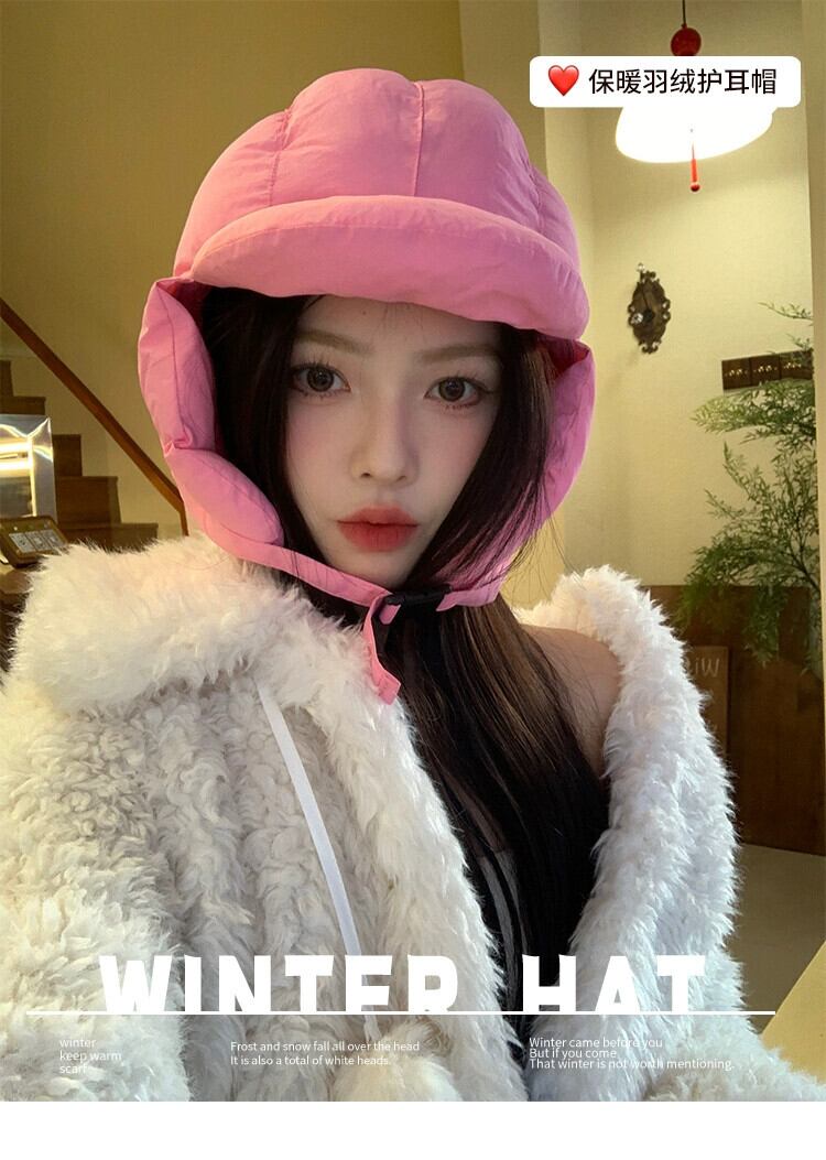 ダウンレイフェンハット女性の冬バージョン暖かさ多用途ダウン充填軽量耳保護フライングハット登山耳保護帽子トレンディ ウィンター 冬物 15dd47606174759