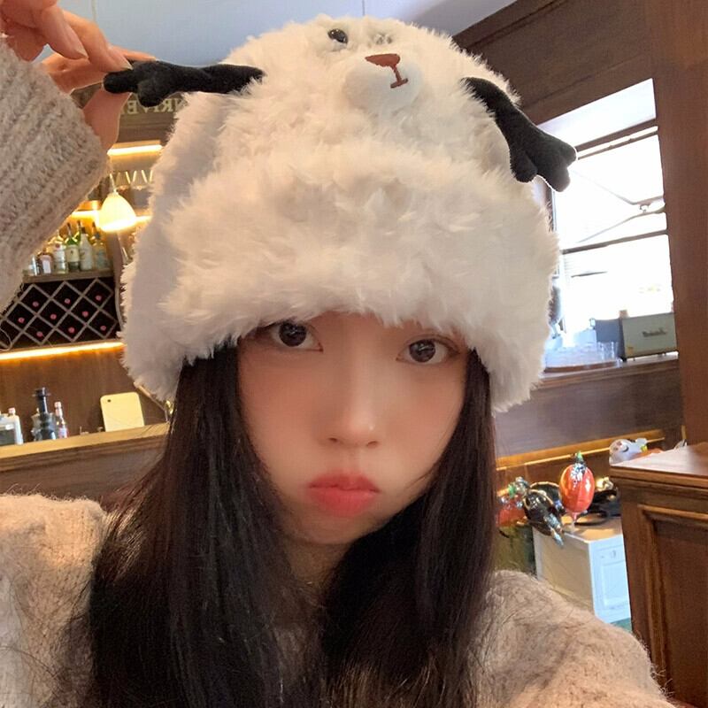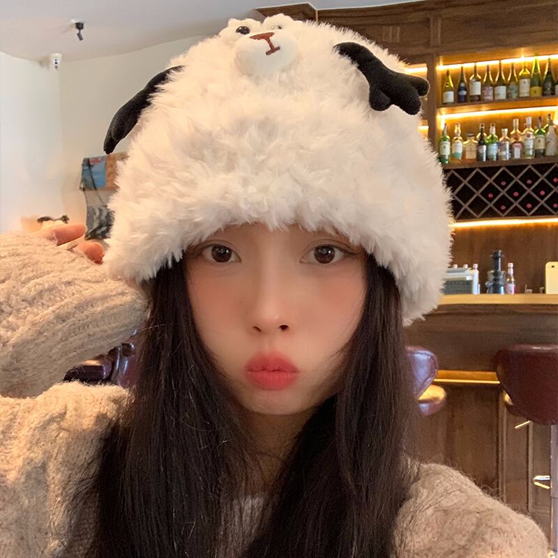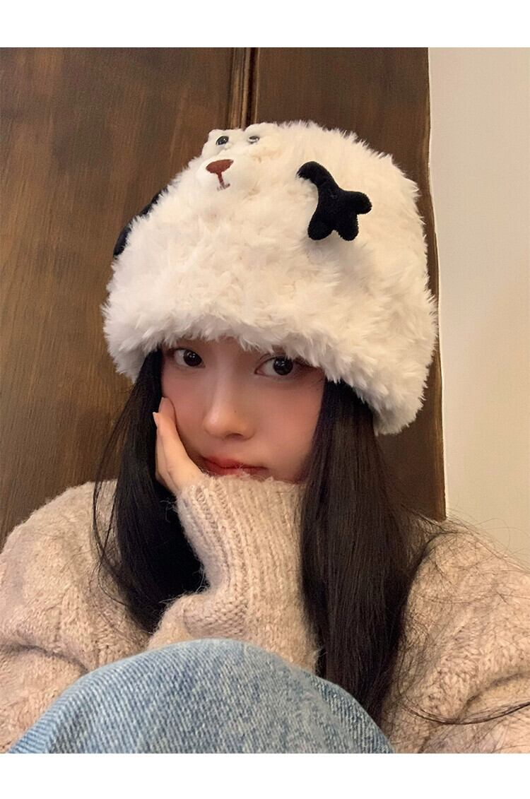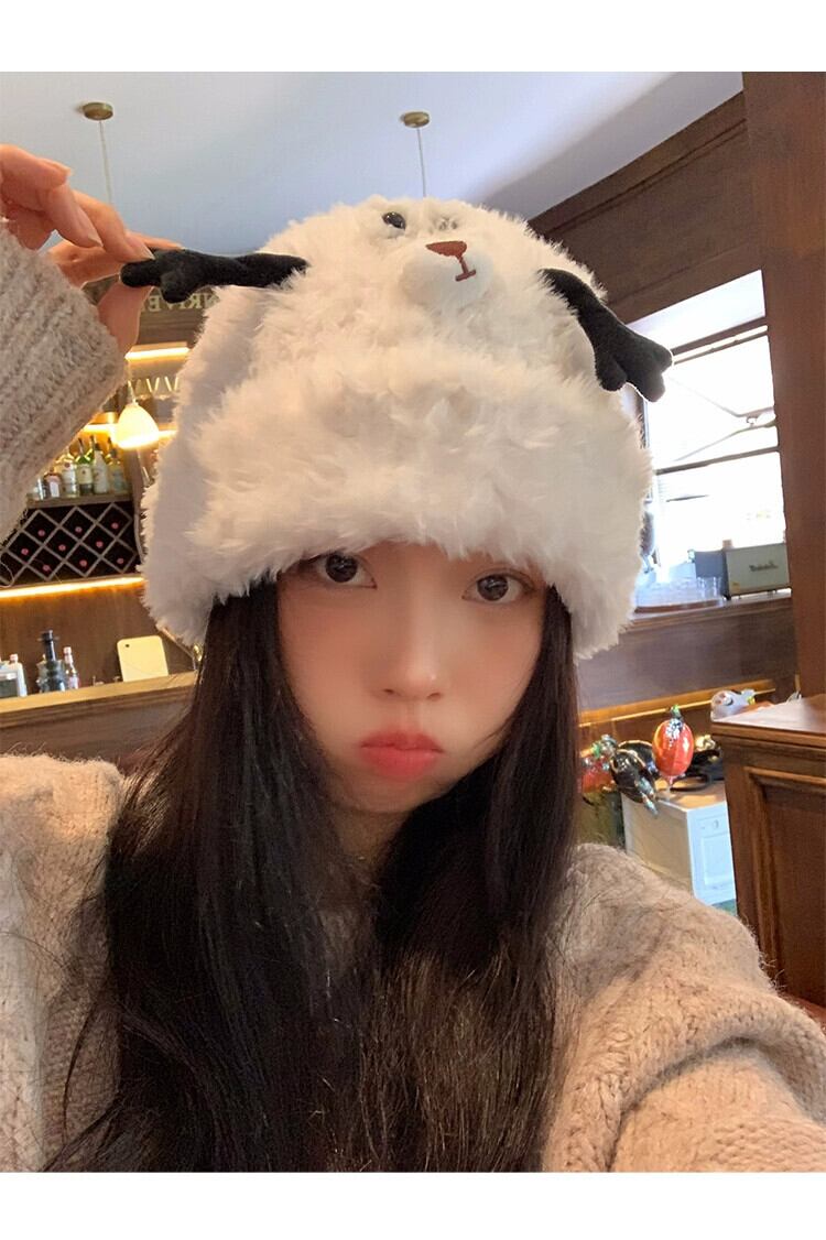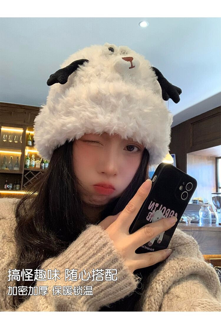 かわいい漫画子犬ぬいぐるみ帽子女性の秋冬 2023 多用途顔見せ小型暖かいサイクリング耳保護帽子 大人ガーリー スウィート キュート カジュアル オータム 秋物 ウィンター 冬物 15dd70508968957