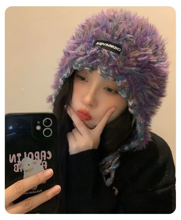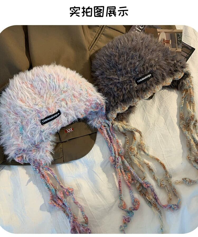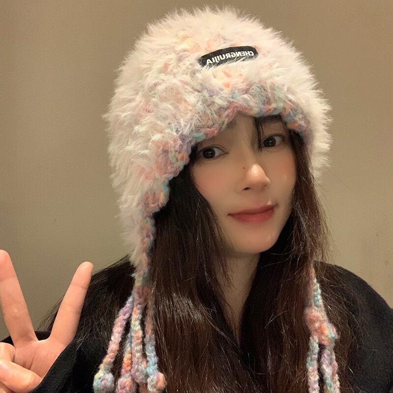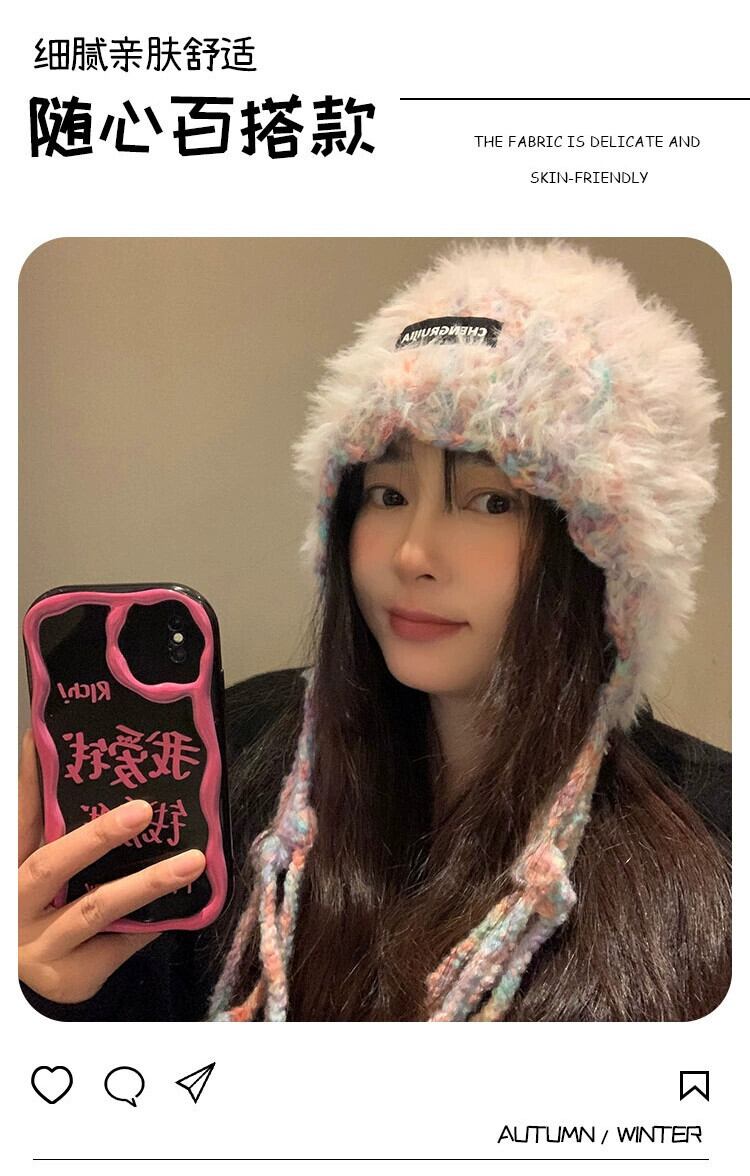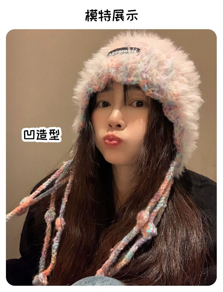 - 冬用の高品質の厚みのある豪華なウールの帽子、大きな顔が見える小さな手編みの毛皮で覆われたキャップで寒さから守り、耳を保護します。 ウィンター 冬物 15dd95994021365