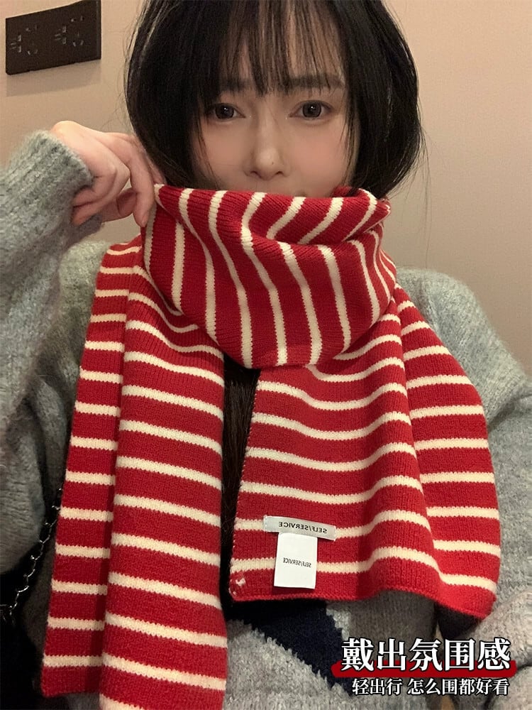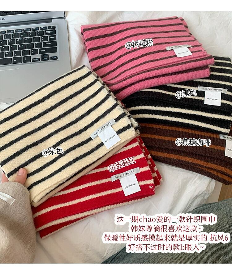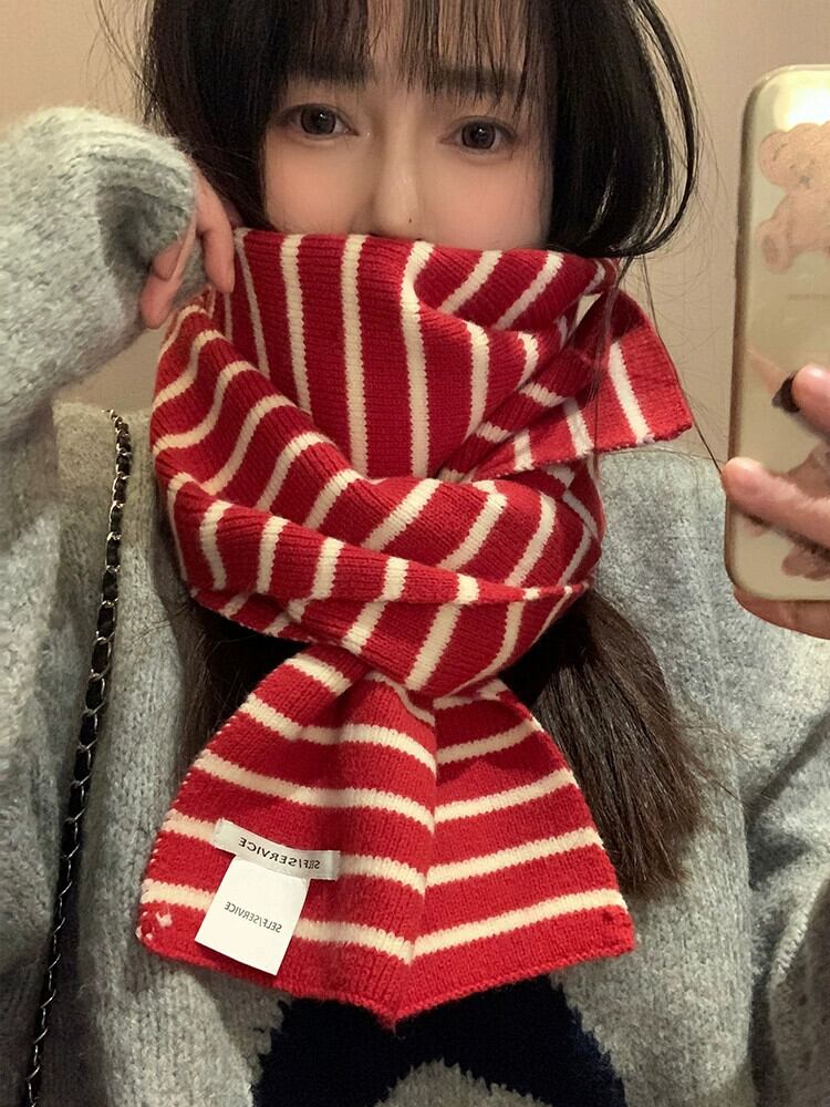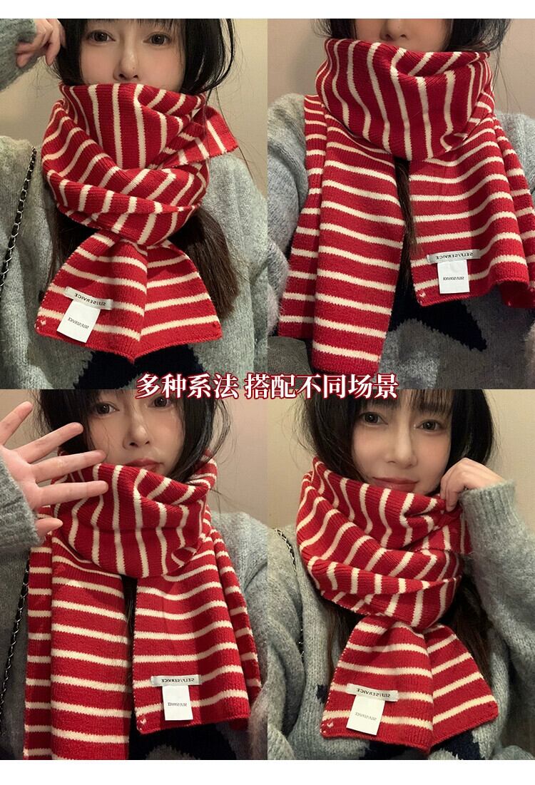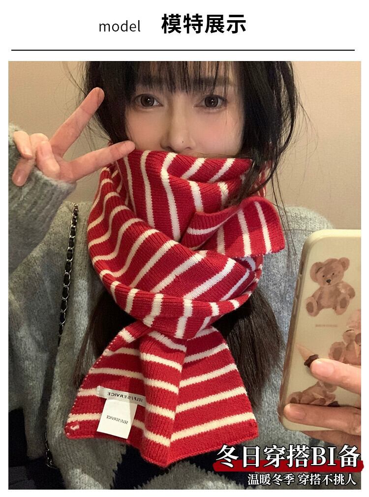年の赤いスカーフの女性、冬のハイエンドのストライプの学生スタイルの多用途の厚いニットウールのスカーフトレンディです レッド ウィンター 冬物 15dd88421634700