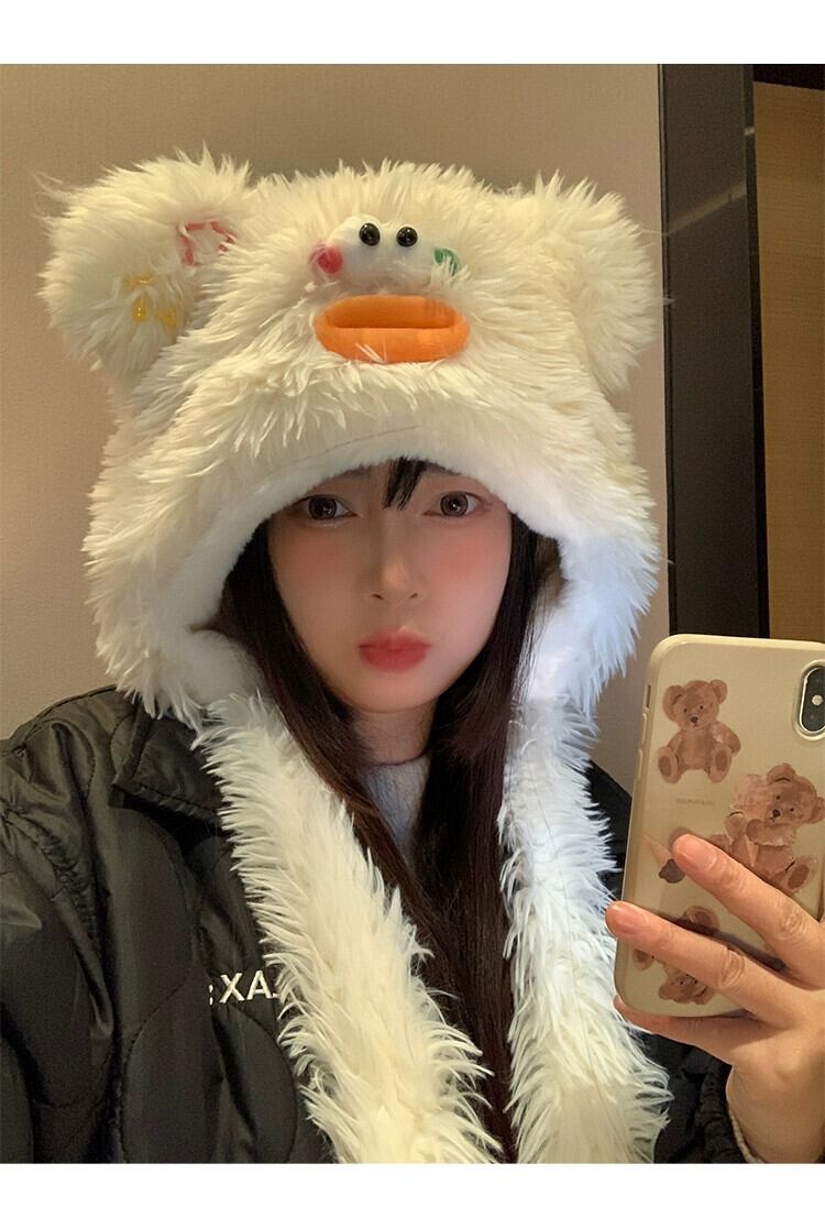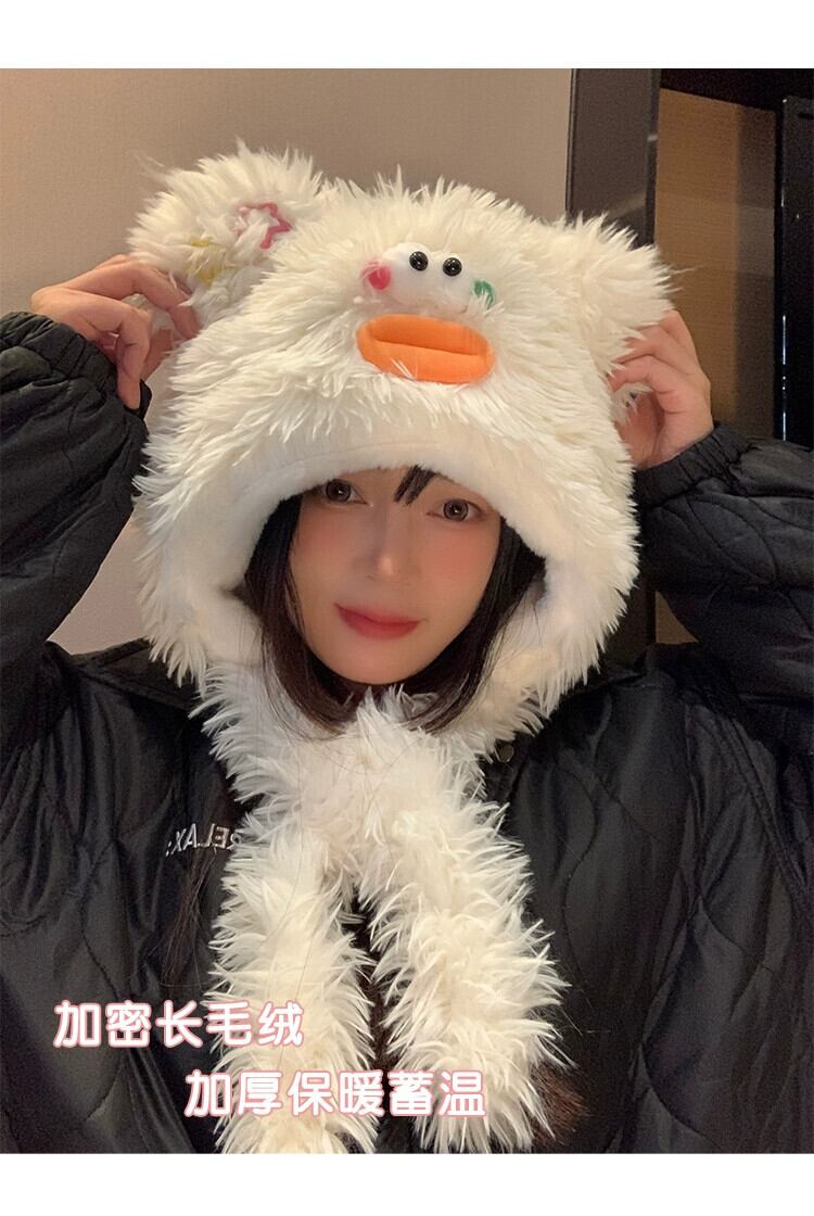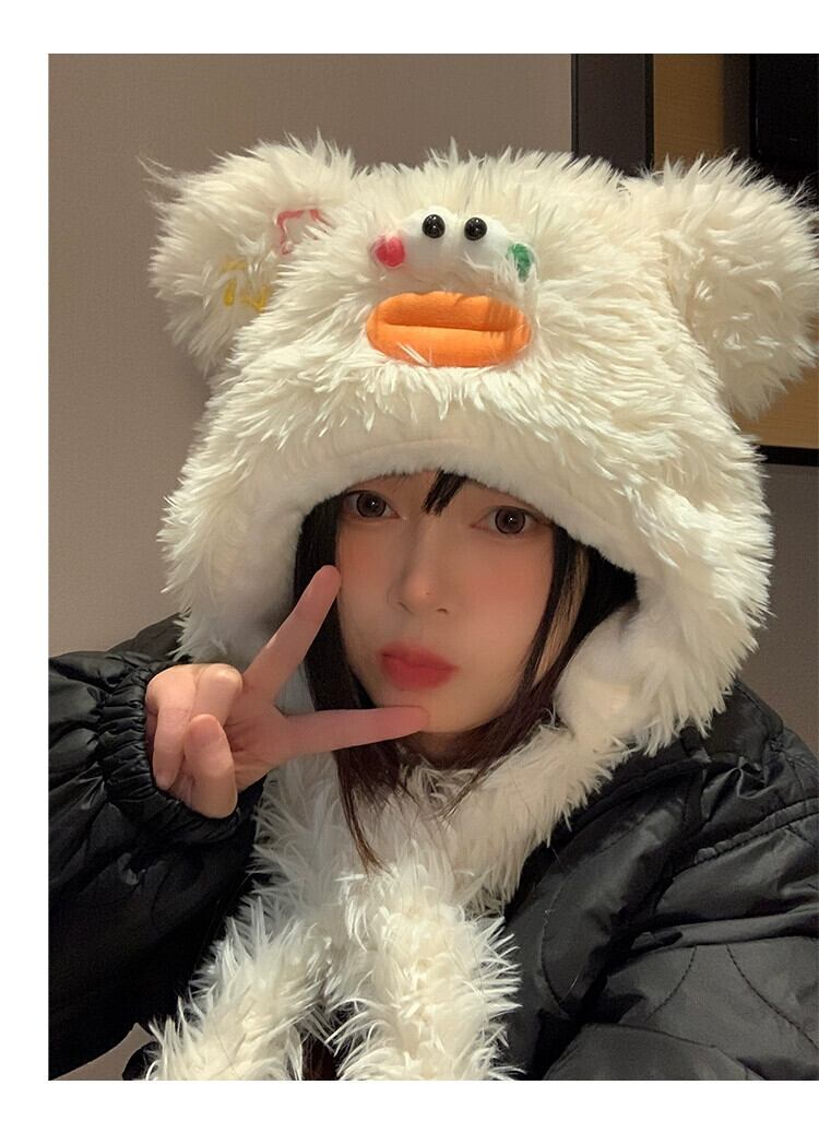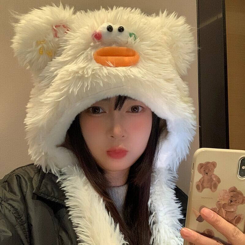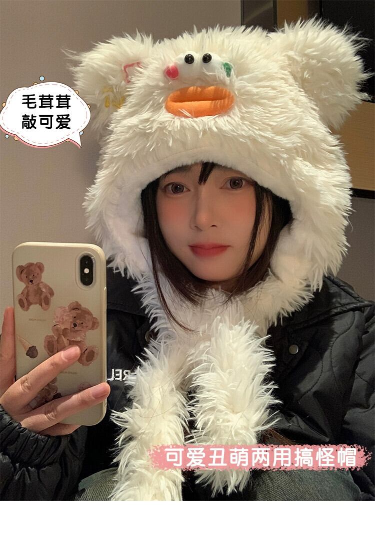 リトルモンスターかわいいぬいぐるみ帽子女性の秋と冬 2023 毛皮のような多用途の暖かいプラスベルベット雷峰帽子 大人ガーリー スウィート キュート カジュアル オータム 秋物 ウィンター 冬物 15dd89646836042