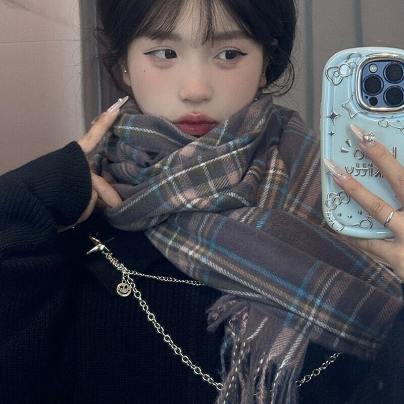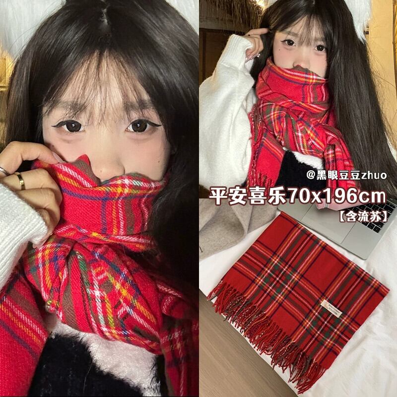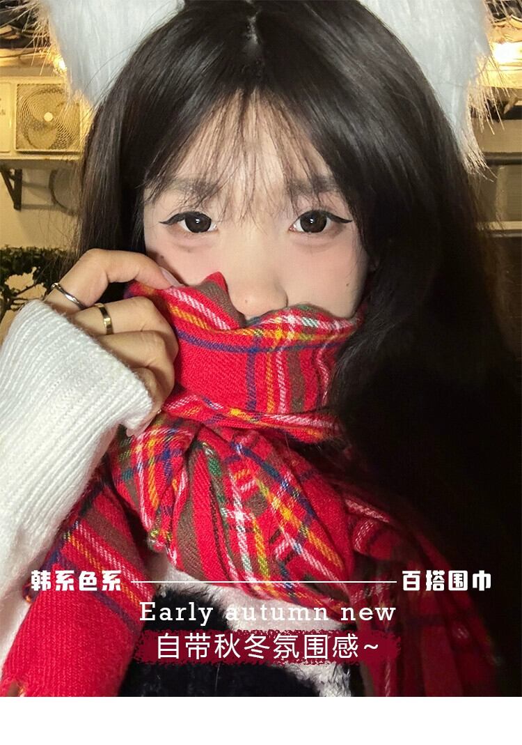 チェック柄スカーフ女性の冬かわいい赤いスカーフ学生カップルショールアウターウェアハイエンドの暖かさ レッド 大人ガーリー スウィート キュート カジュアル ウィンター 冬物 15dd86381128807