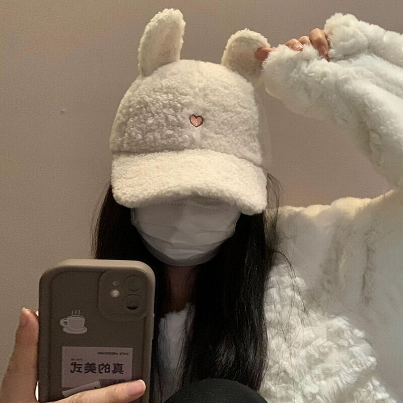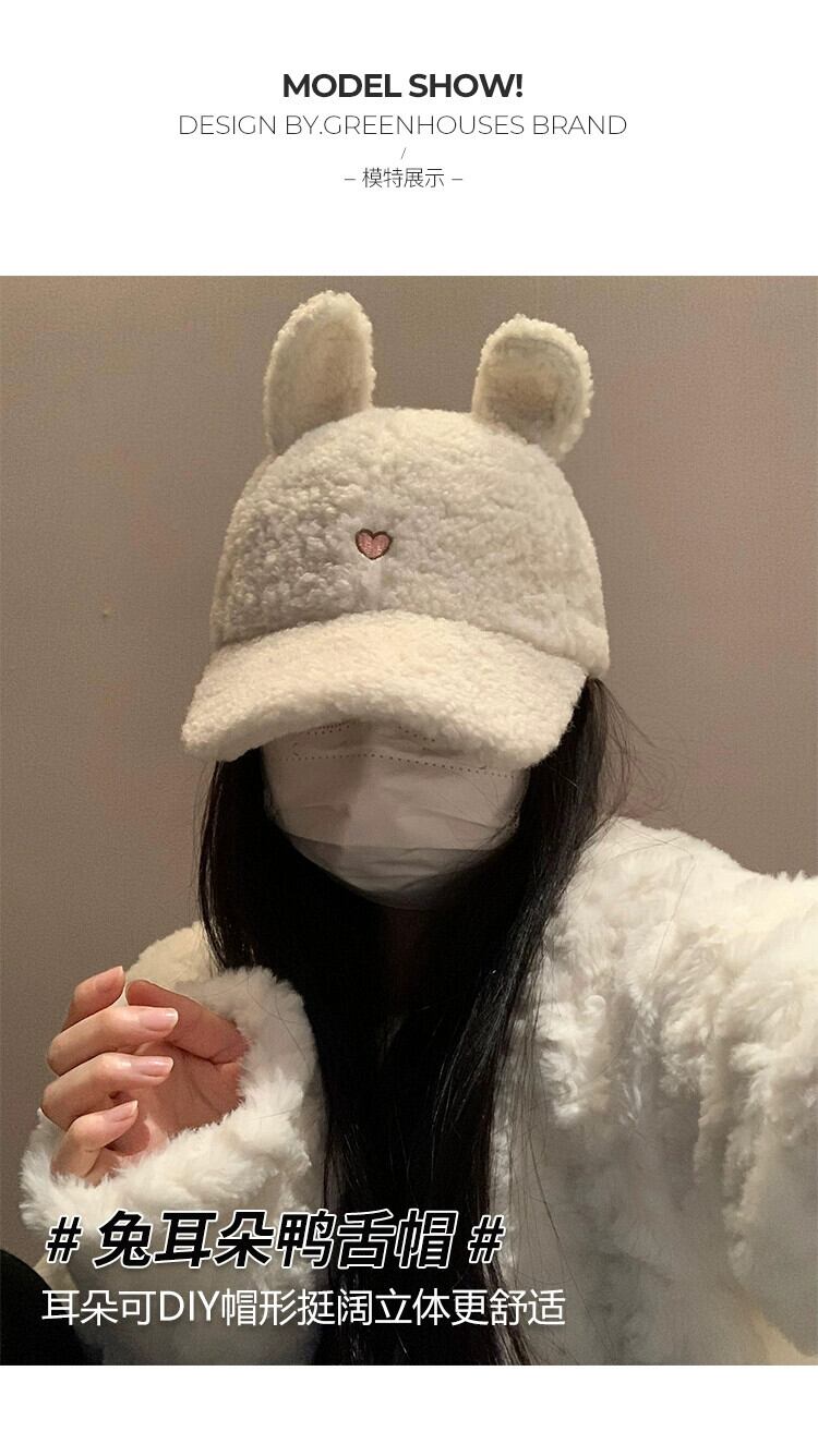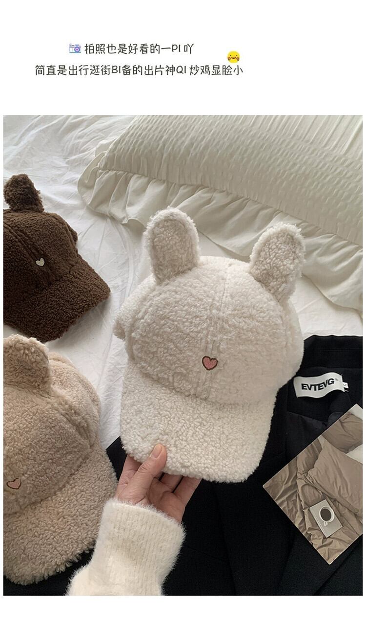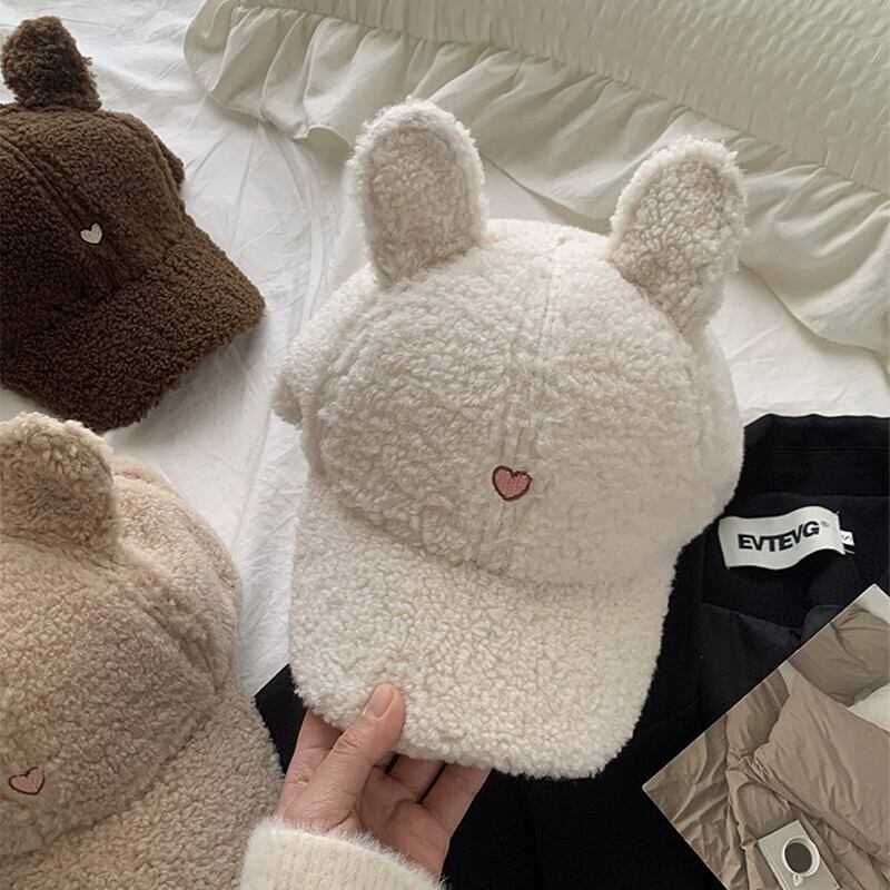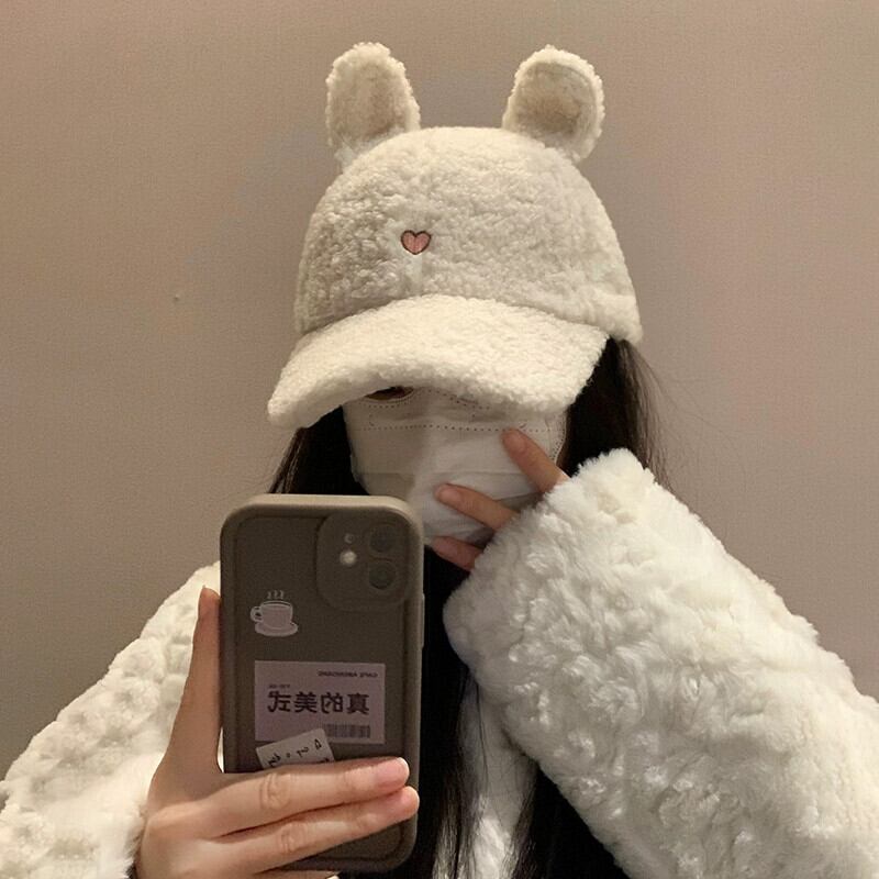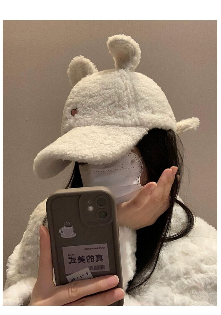 秋と冬のラムウール野球帽の女性、小顔、大きな頭囲、多用途なこれらのスタイル、かわいい漫画の秋冬のピークキャップ 大人ガーリー スウィート キュート カジュアル オータム 秋物 ウィンター 冬物 15dd44863117433