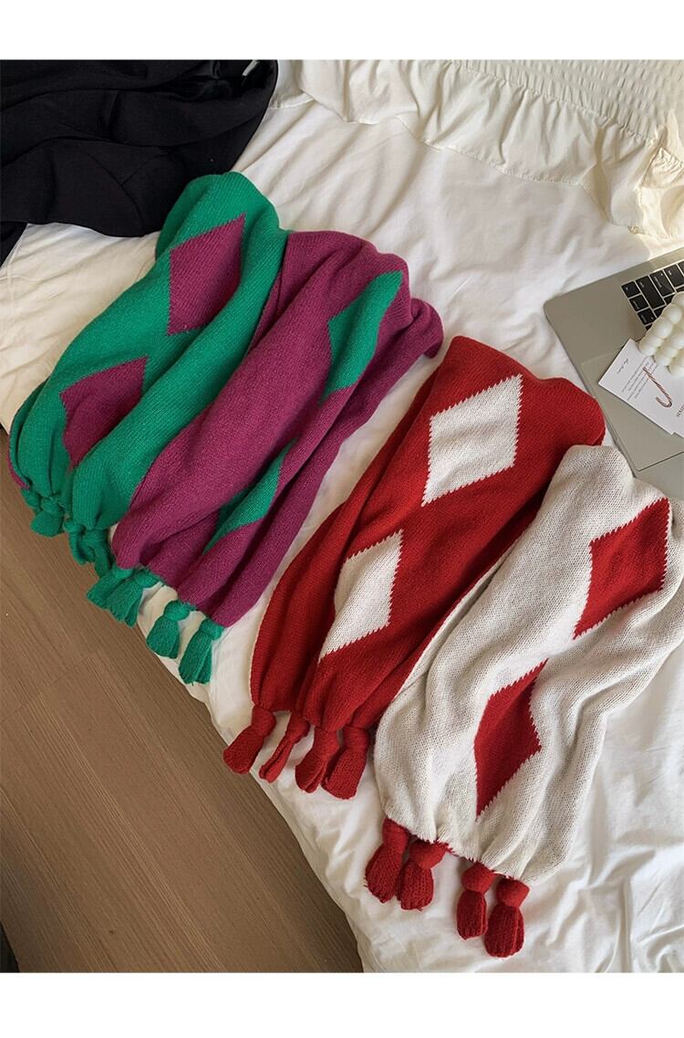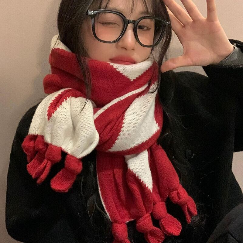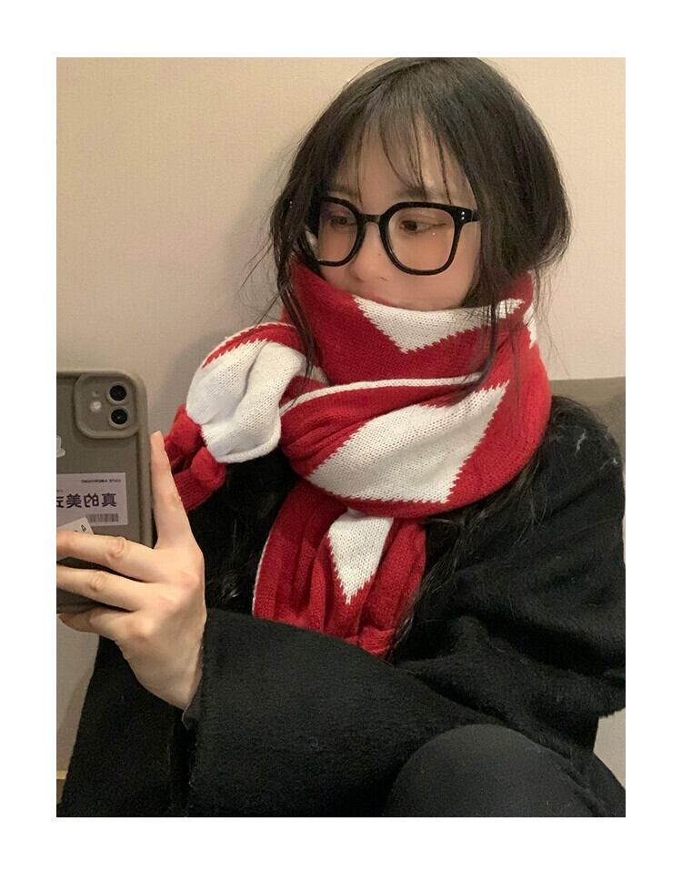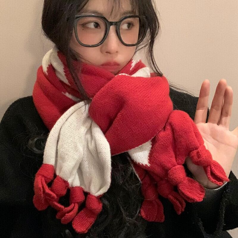 レッドクリスマススカーフ女性冬 2023 新しい多用途暖かい肥厚ハイエンドニットロングウールスカーフ ウィンター 冬物 15dd74046625053