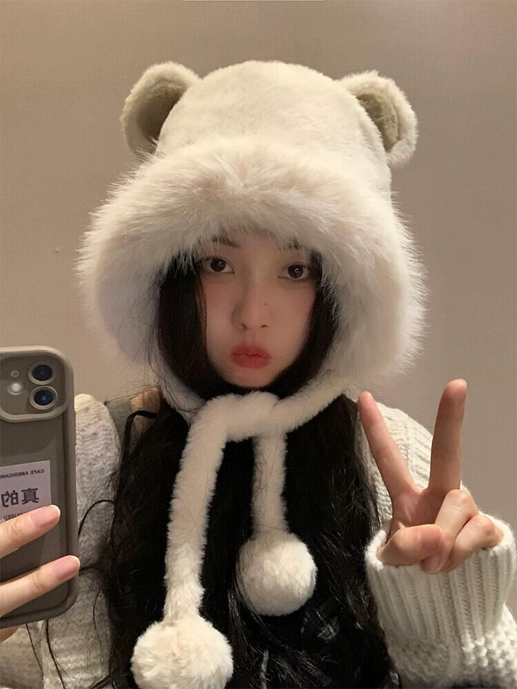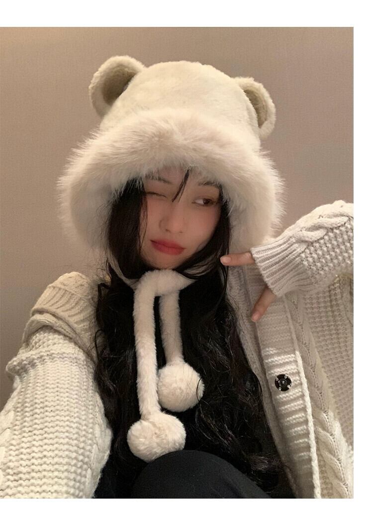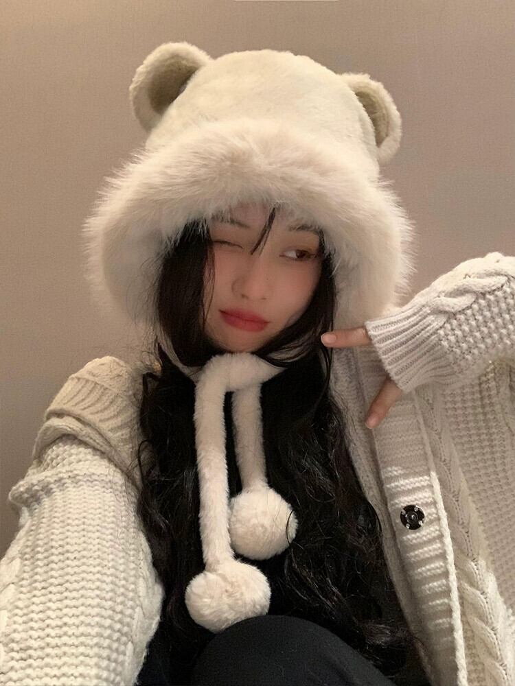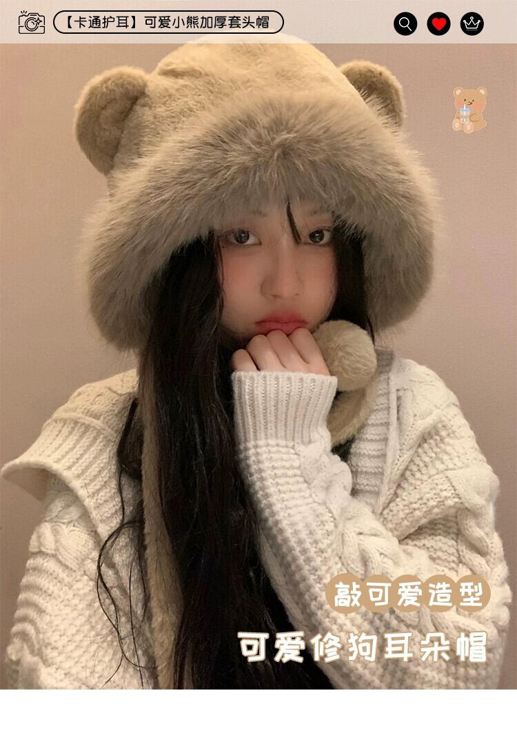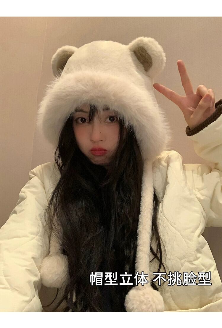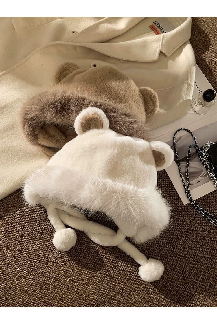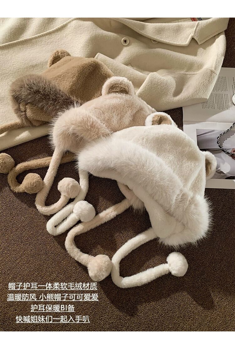 かわいいクマの耳ぬいぐるみ雷峰帽子女性の冬 2023 厚く暖かい東北防寒プルオーバー帽子 大人ガーリー スウィート キュート カジュアル ウィンター 冬物 15dd80847268862