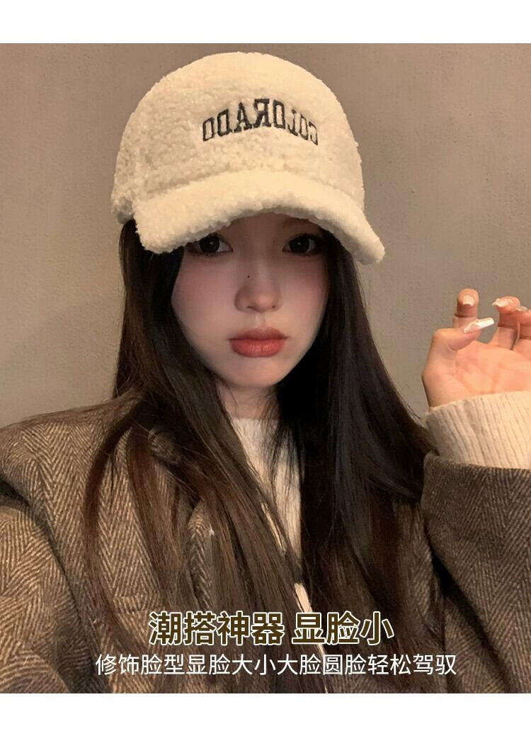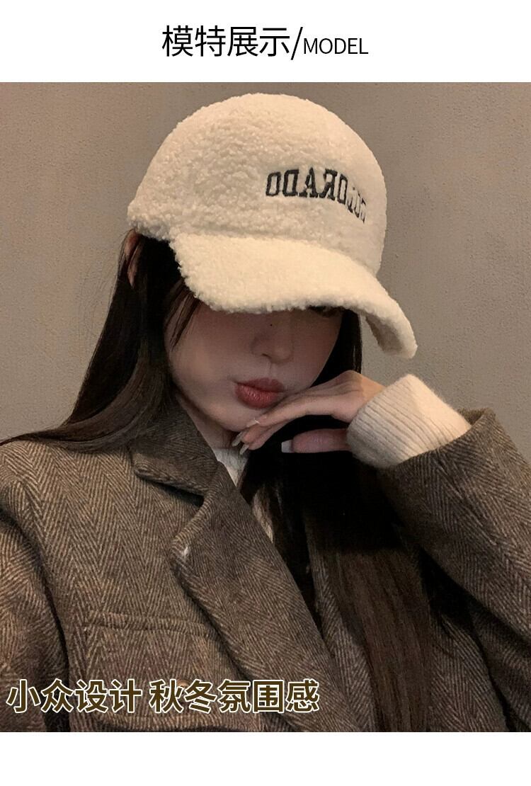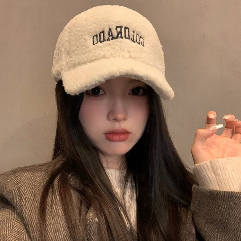 ホワイトラムベルベット野球帽女性の冬 2023 新しいスタイル小顔表示小さな暖かく防寒アヒルキャップカジュアル ウィンター 冬物 15dd23460831025