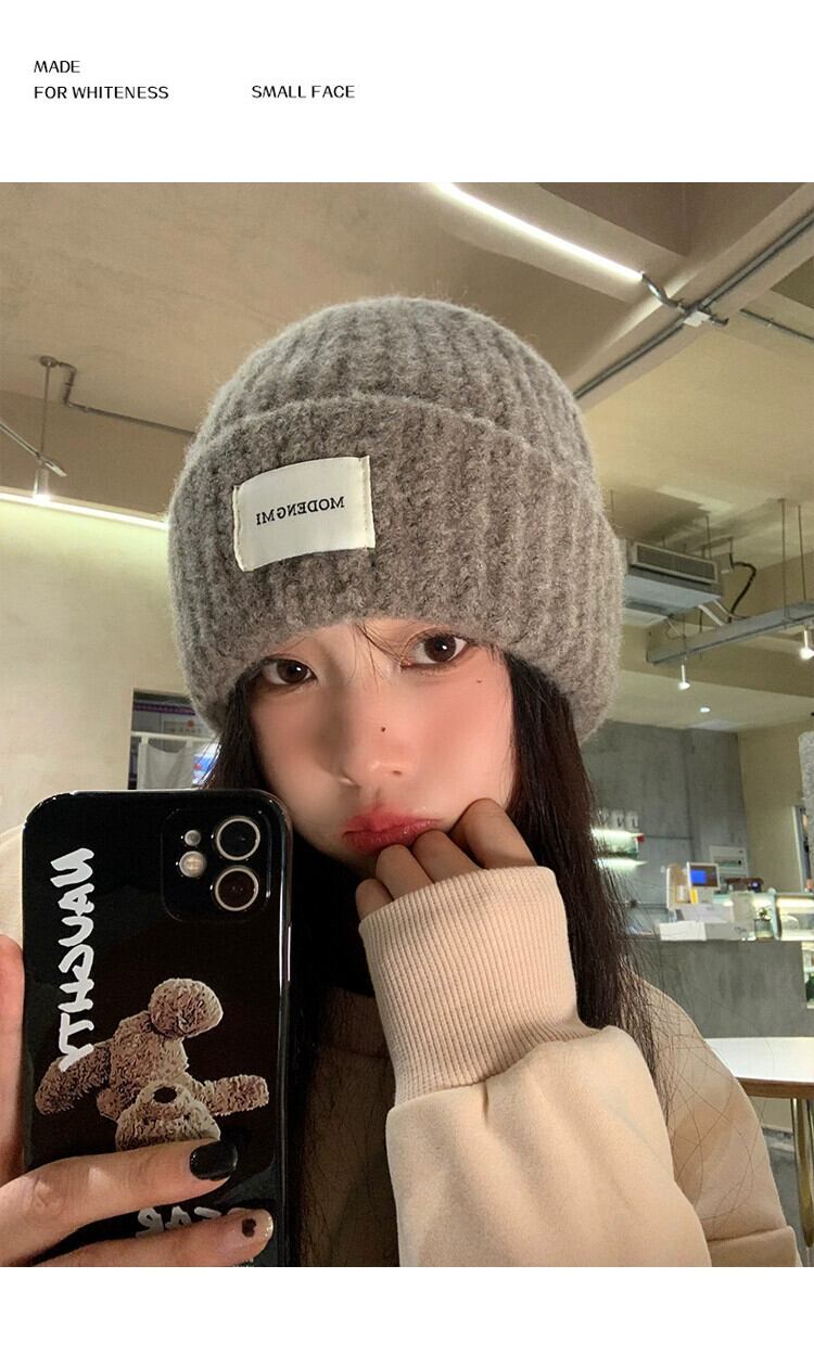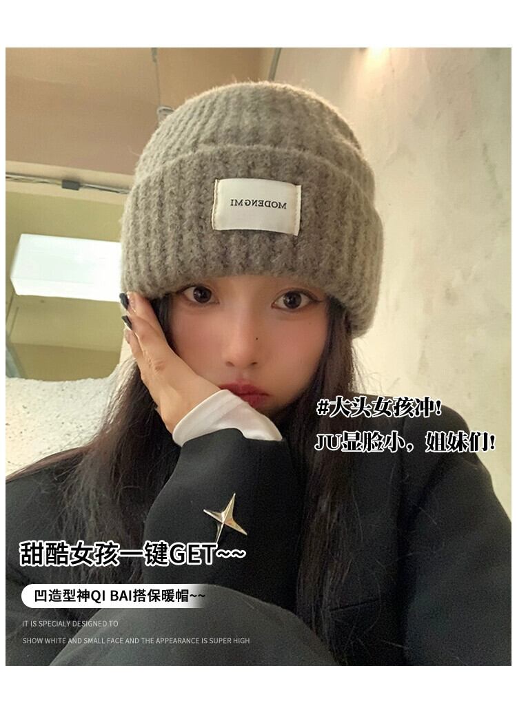緩い大きな頭囲ニット帽子女性 2023 新しい秋冬暖かくて顔に優しい小さな耳保護帽子防寒帽子包頭帽子 オータム 秋物 ウィンター 冬物 15dd10332025893