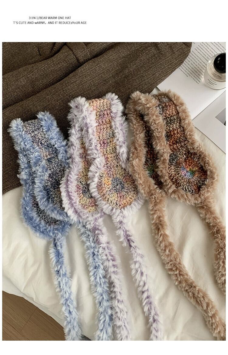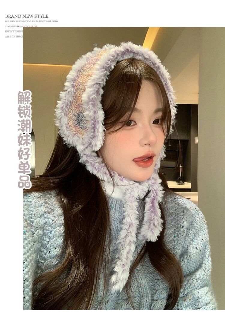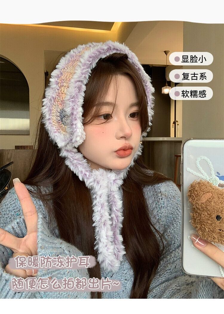 これらのレトロなカラフルなぬいぐるみニットウールイヤーマフ、冬用の女性用、オールマッチの暖かく耐寒性サイクリング耳保護イヤーバッグ ウィンター 冬物 15dd56107373555