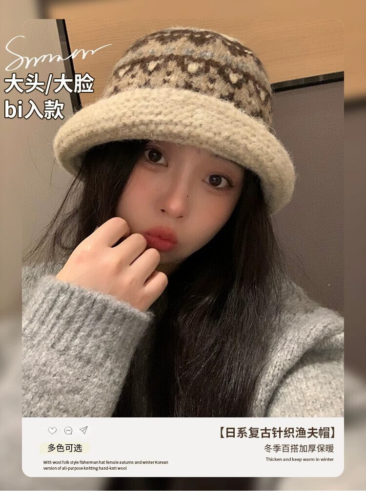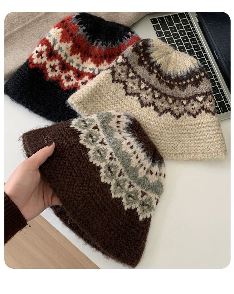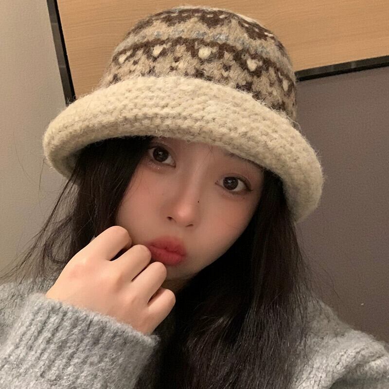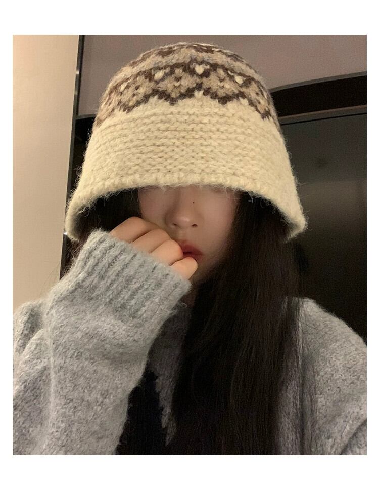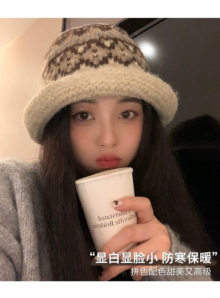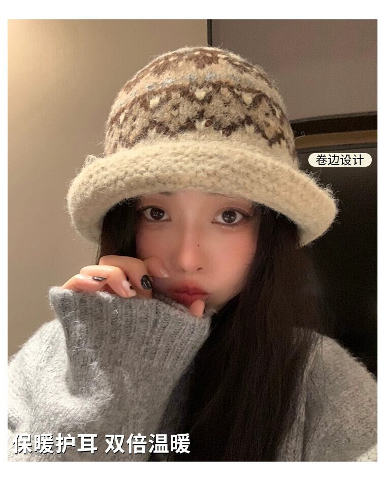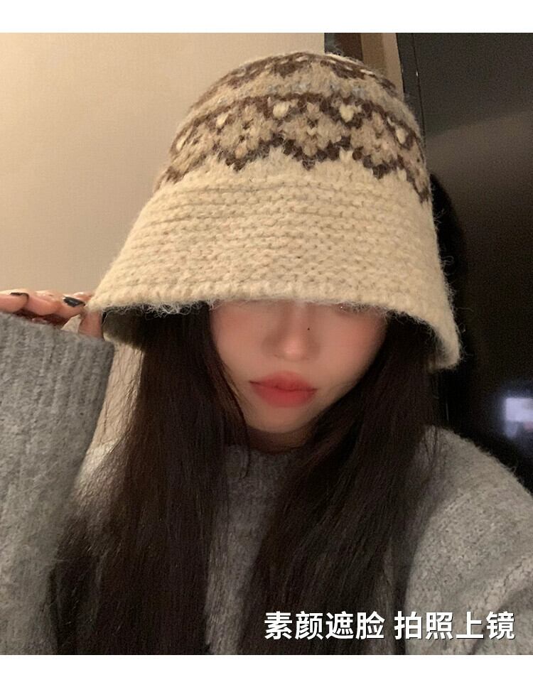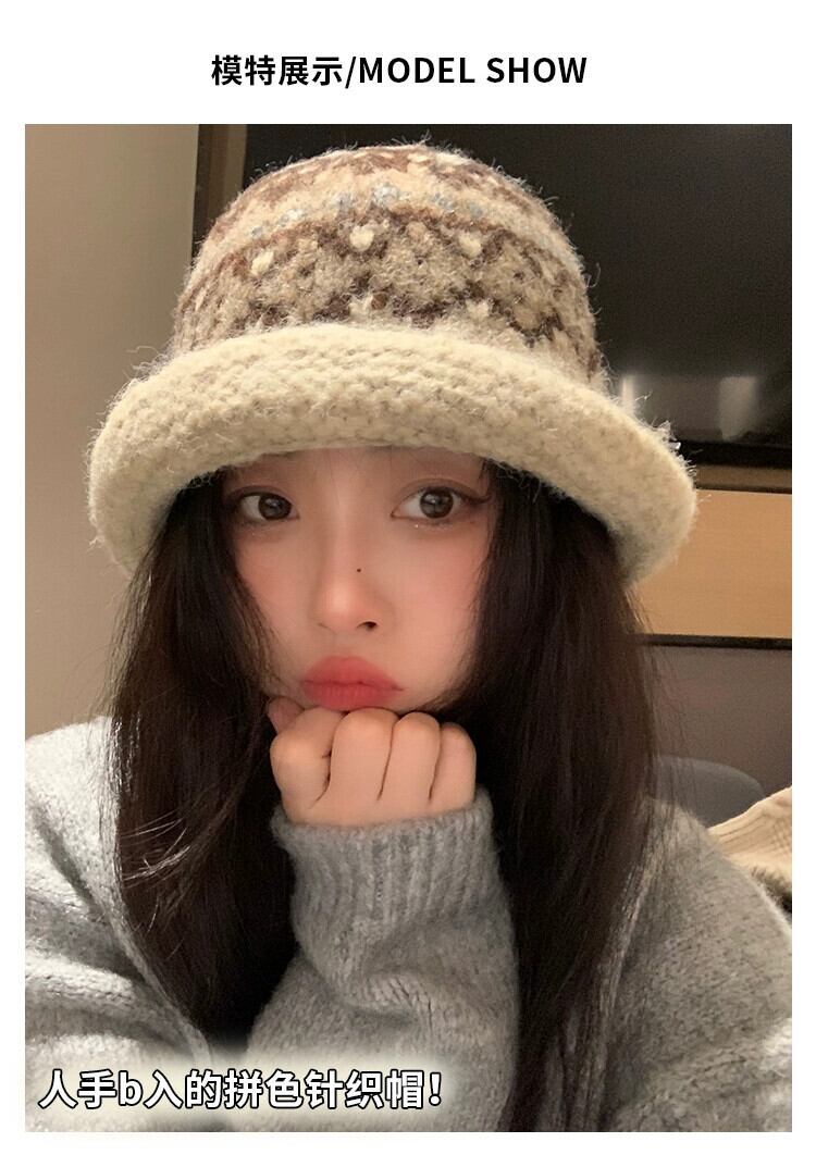 ウールを含むバージョン暖かいメイラード対照的な色の帽子の女性の冬 2023 新しい多用途肥厚ニット盆地帽子 ウィンター 冬物 15dd49420148318