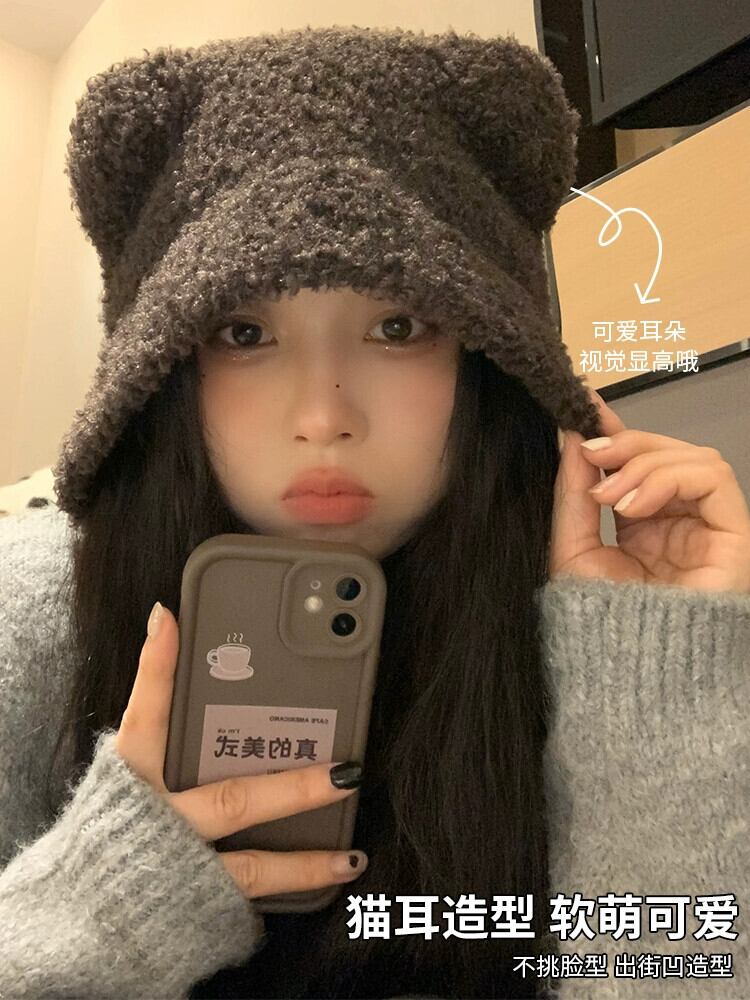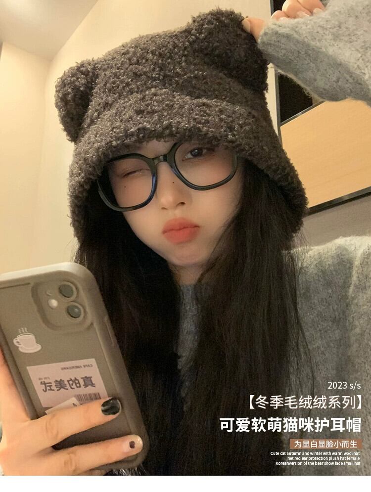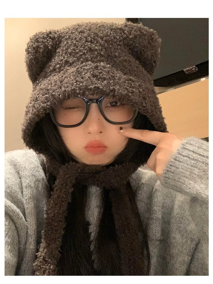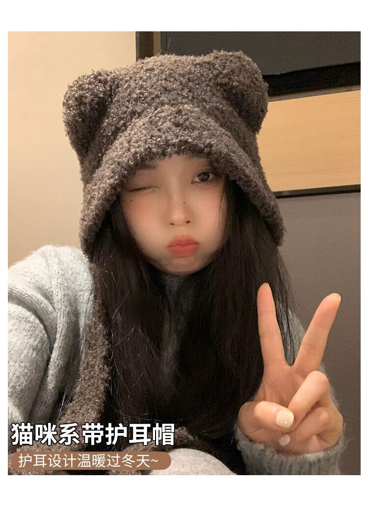 かわいいクマの雷峰帽子女性の秋冬 2023 多用途暖かく防寒耳保護ニット包頭帽子 大人ガーリー スウィート キュート カジュアル オータム 秋物 ウィンター 冬物 15dd19498070233