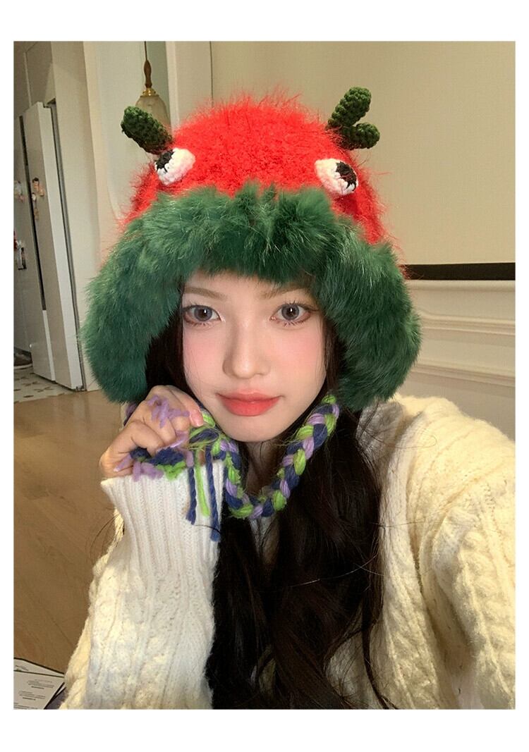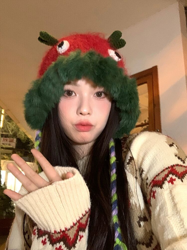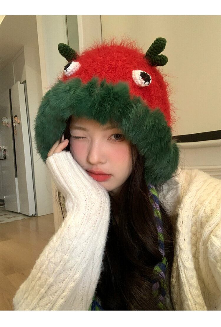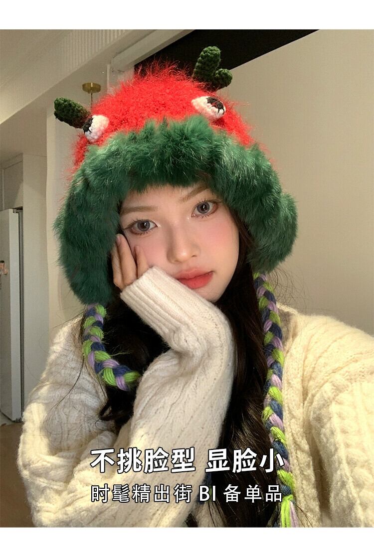 かわいい小さなモンスターの豪華な帽子女性冬肥厚とベルベットの暖かい耳保護帽子顔小さなニットつま先キャップ流行 大人ガーリー スウィート キュート カジュアル ウィンター 冬物 15dd9735467814