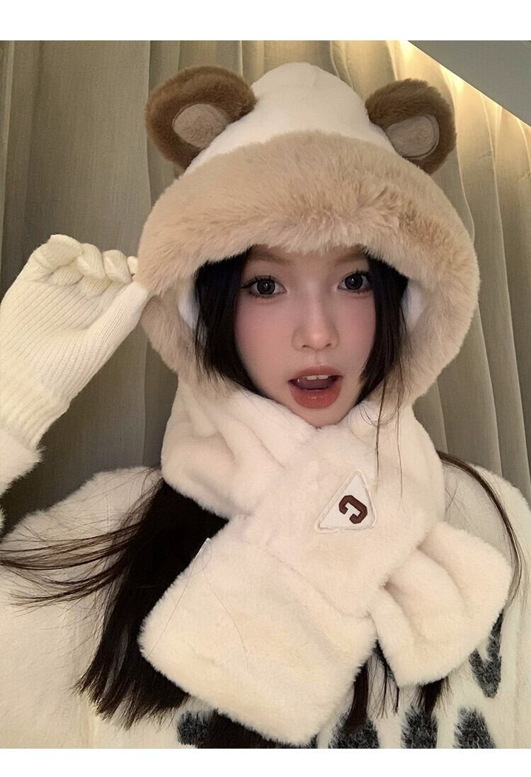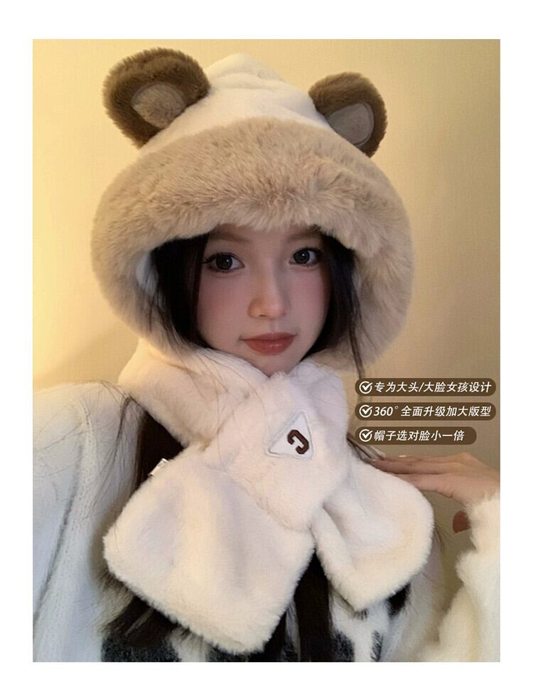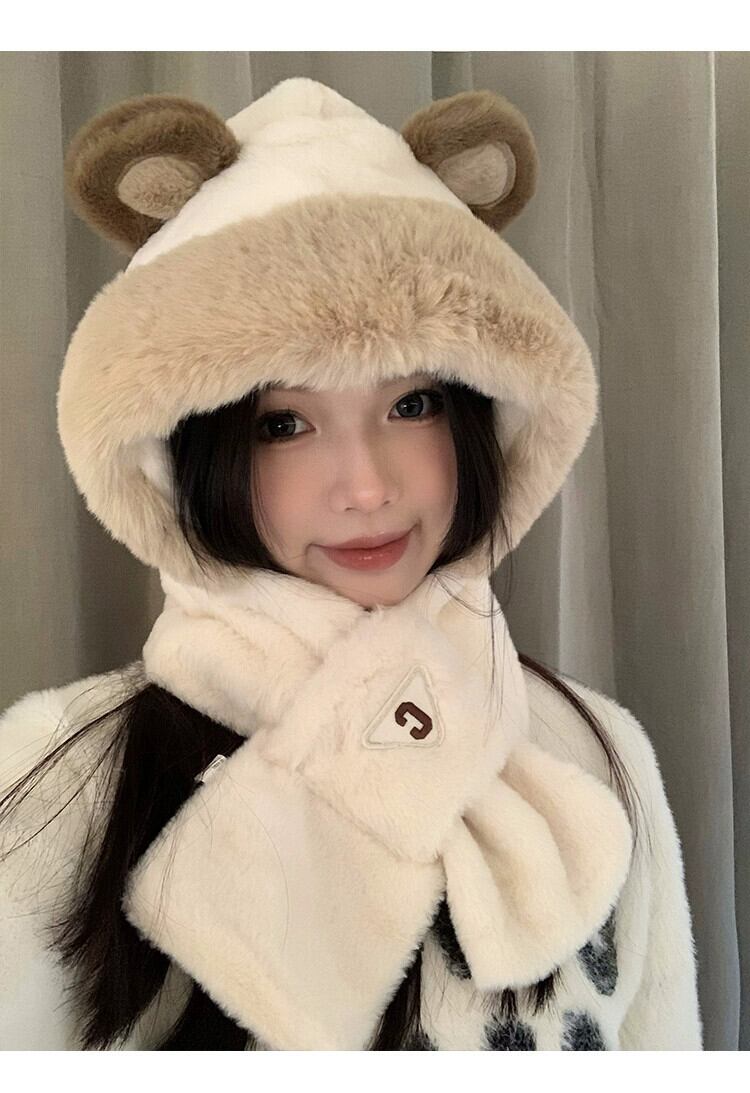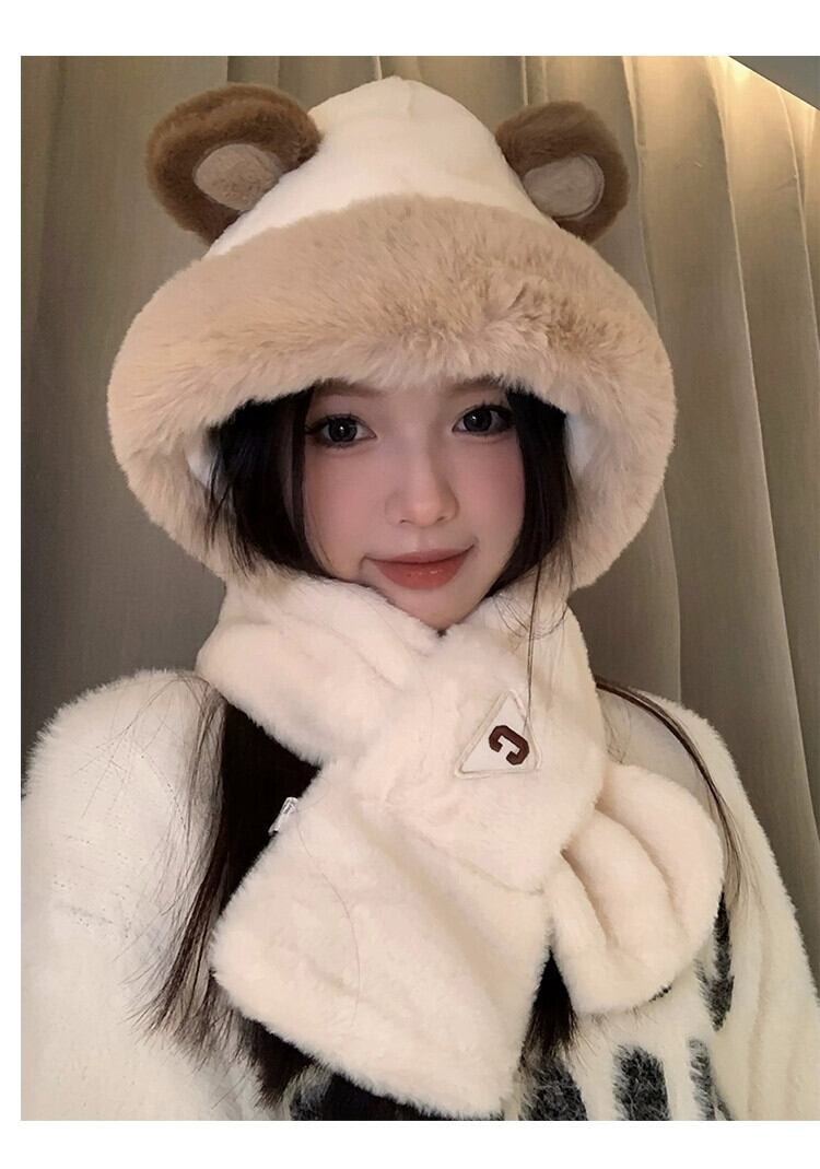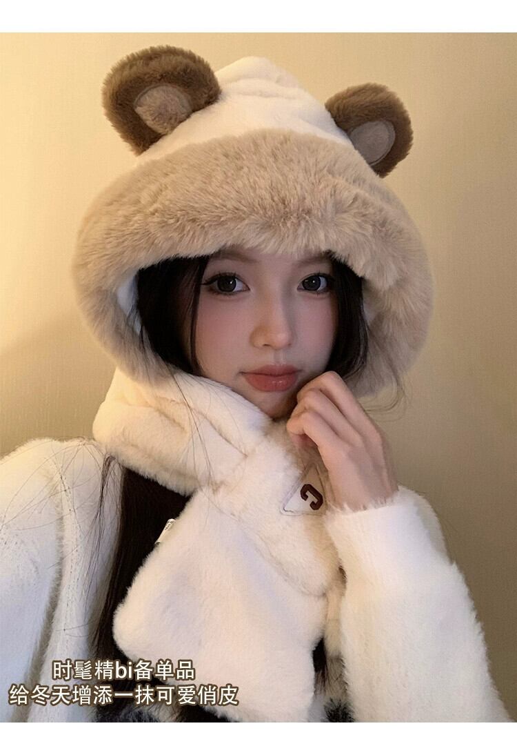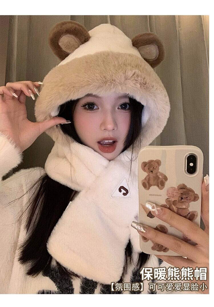 かわいいクマの帽子とスカーフが一体になった女性用冬スタイル、多目的アウトドアサイクリング、暖かく厚みのある耳保護とネックスカーフ、トレンディです。 大人ガーリー スウィート キュート カジュアル ウィンター 冬物 15dd53007481856