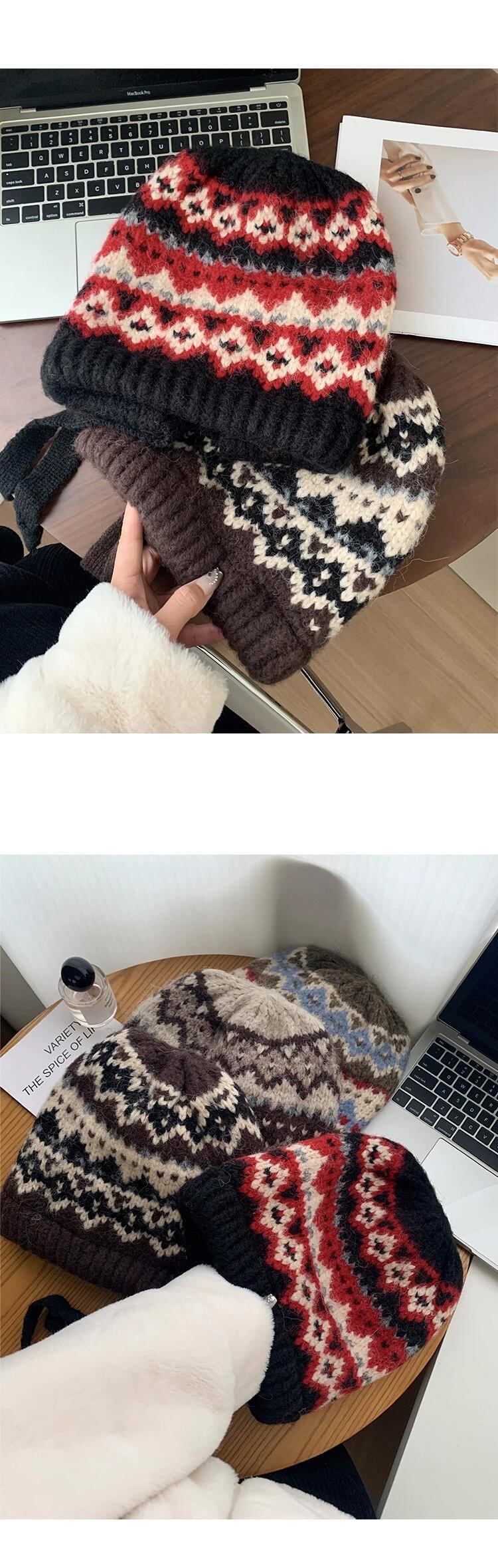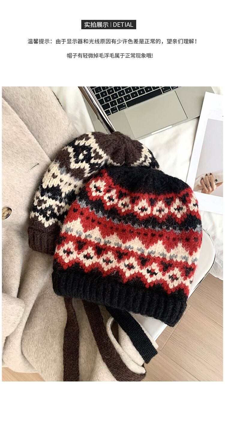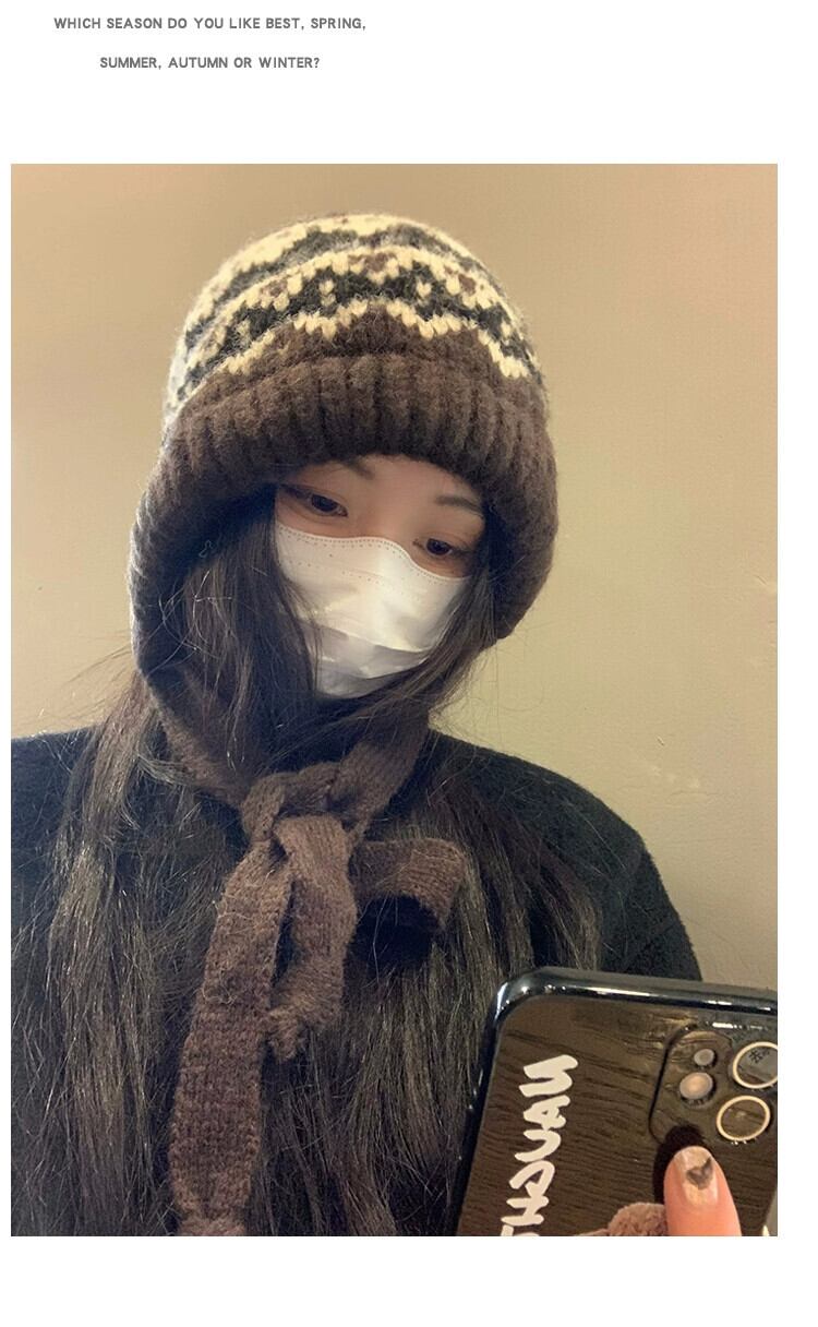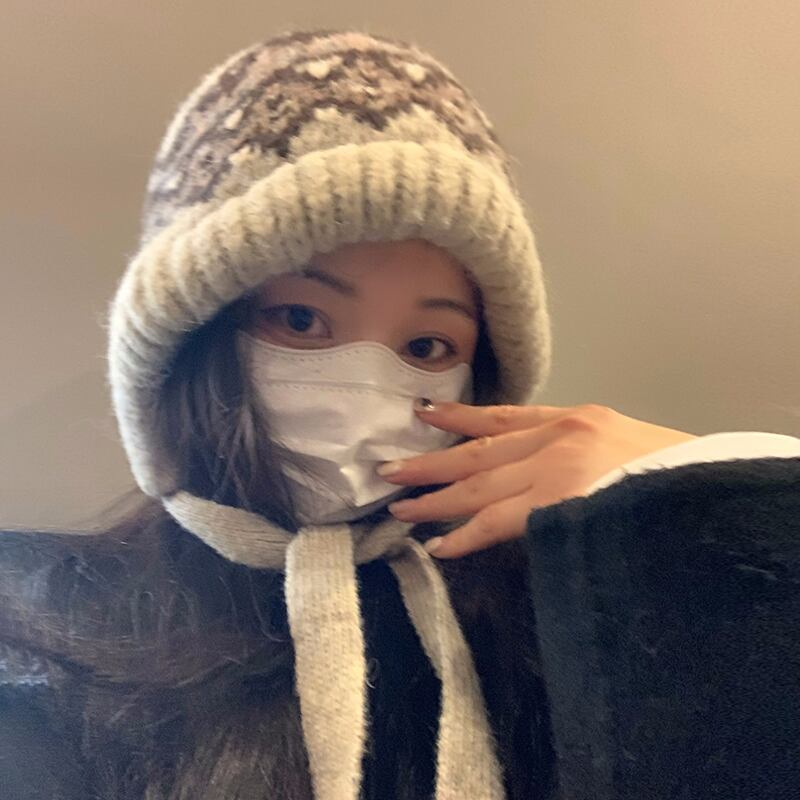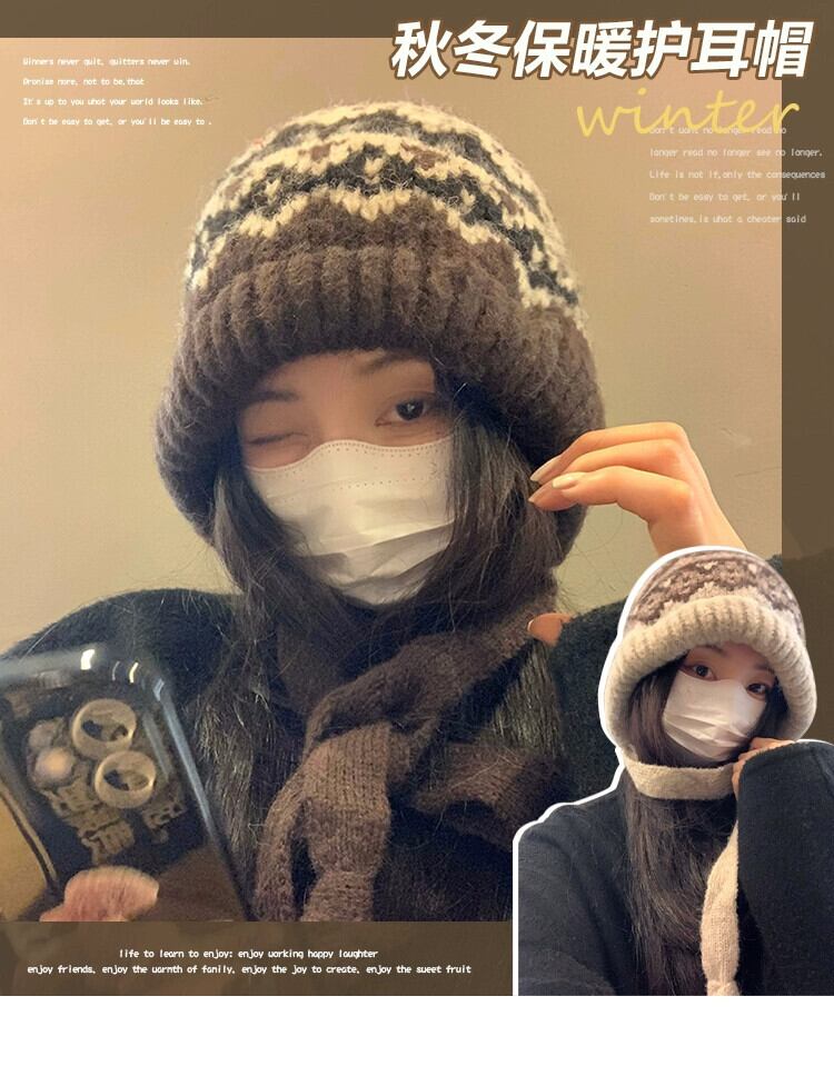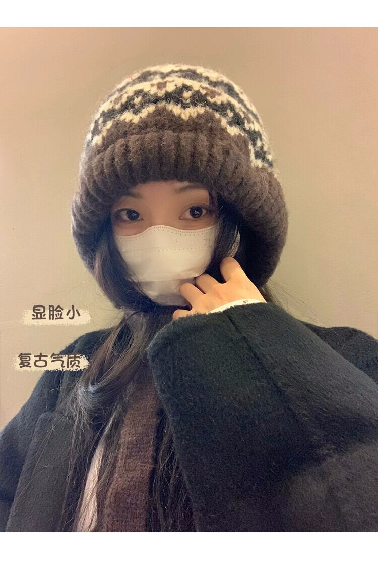 秋と冬バージョンのバラクラバ帽子女性多目的レトロ暖かい耳の保護大きな頭囲を示す顔小さなパイル帽子 オータム 秋物 ウィンター 冬物 15dd59686208438
