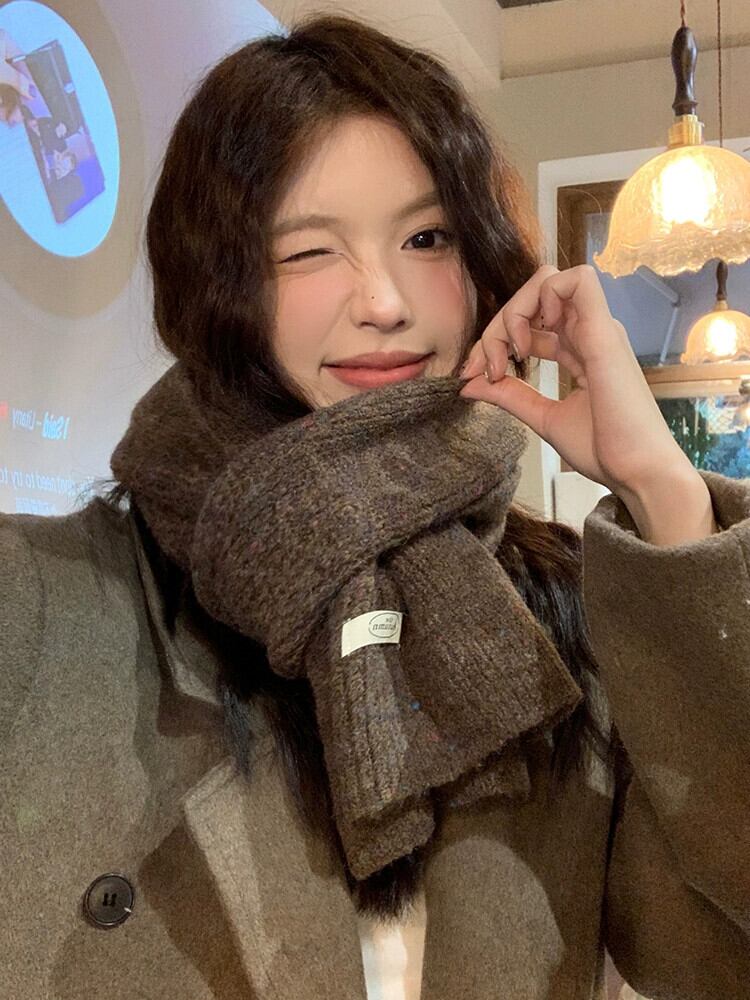 冬の雰囲気のあるニットウールのスカーフの女性、バージョン、ハイエンド、多用途、厚くて暖かい、茶色のスカーフ、学生のトレンド ウィンター 冬物 15dd54874750300