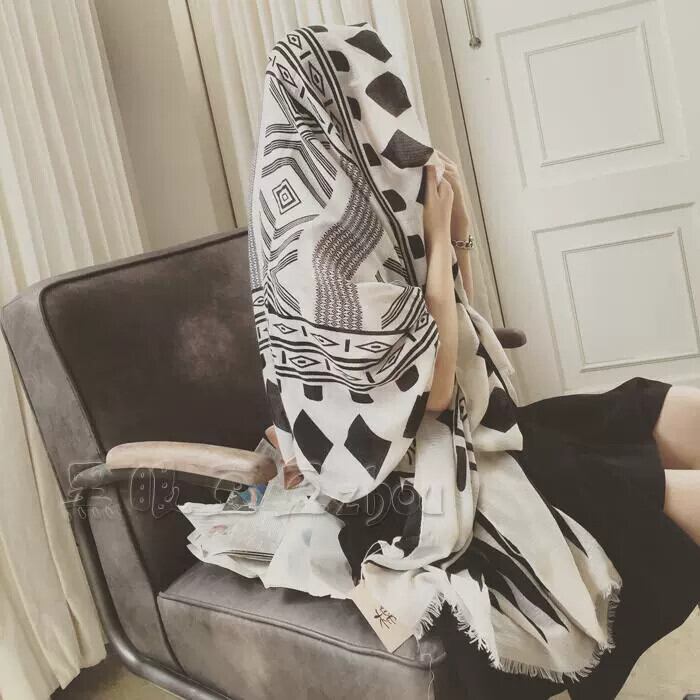 2016 新しい夏の日焼け止め特大ショールエアコンスカーフ黒と白の多用途ソフトビーチタオルガーゼスカーフサイクリング ホワイト ブラック サマー 夏物 15dd16350634320