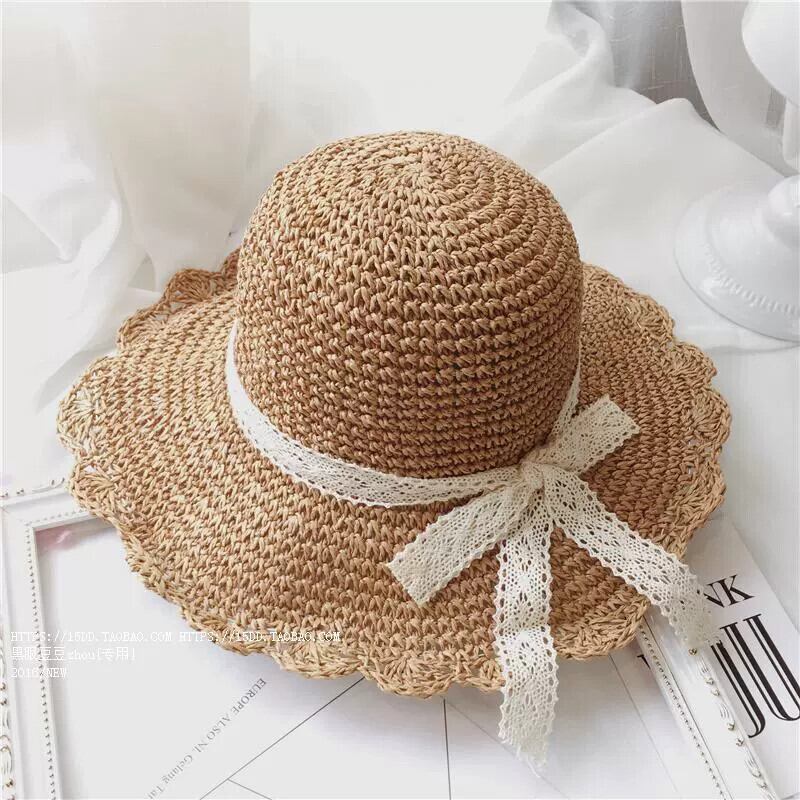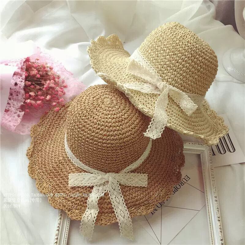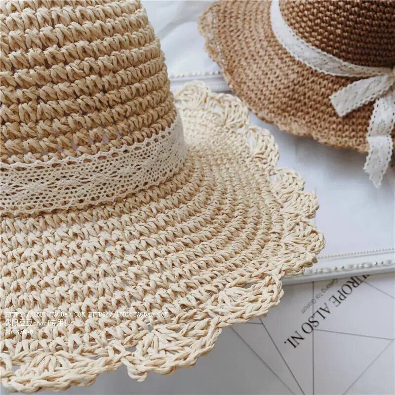 スタイル夏麦わら帽子女性手作り大きなエッジ折りたたみビーチレース小さな新鮮で多用途の日焼け防止サンシェード日よけ帽子夏 サマー 夏物 15dd72712916824