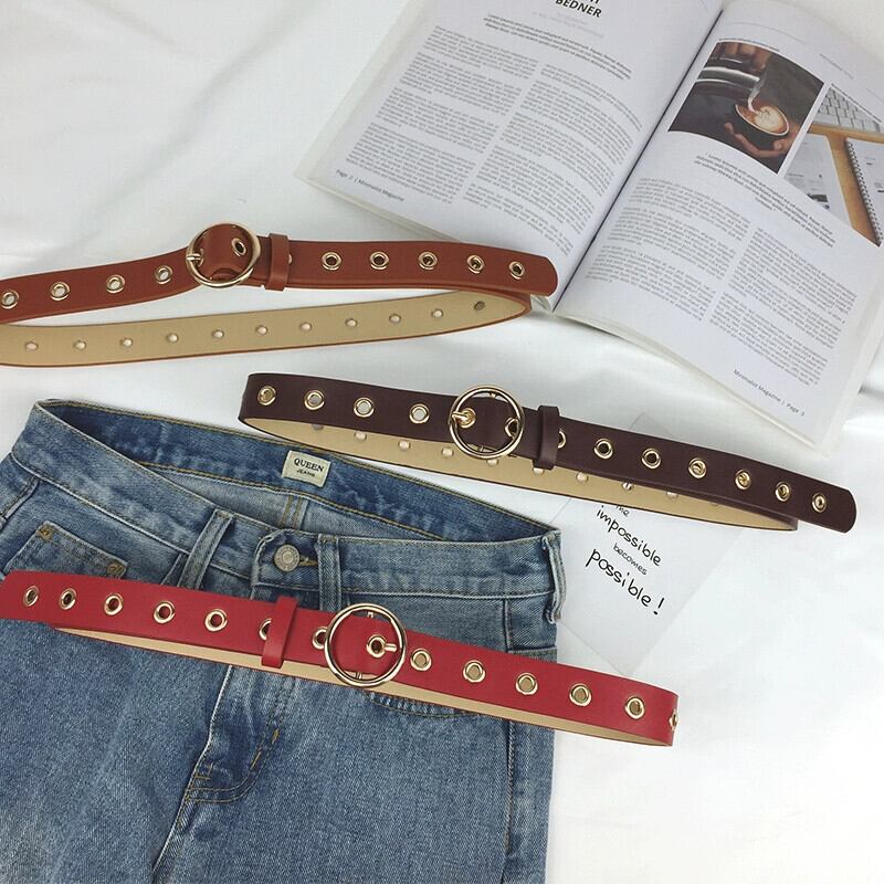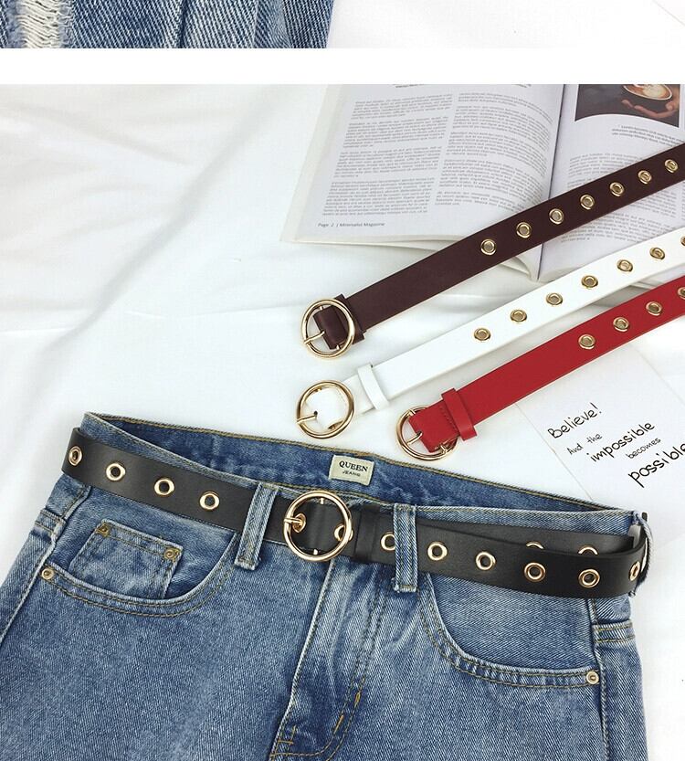 ノーパンチングベルトインパンクシンプルサークルバックル学生ジーンズベルトレディース装飾ベルトメンズトレンディ ハーネス 15dd74044065651