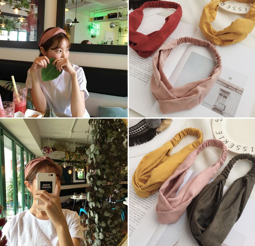 文学的な新鮮なレトロなスエード手作りカスタム ヘアバンド バージョン無地クロス弾性ヘッドバンド ヘア アクセサリー トレンディな スウェード エラスティック 伸縮 ヘアアクセサリー ソリッドカラー 15dd66956292019