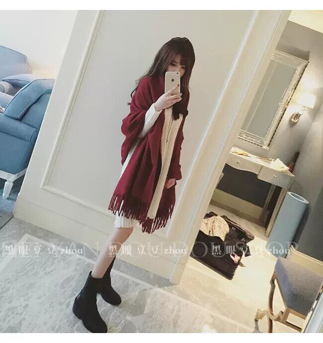 2016 秋と冬のレトロな女性の特大ソリッドカラー模造カシミヤウールスカーフ文学的なスタイルのショールとスカーフのトレンド オータム 秋物 ウィンター 冬物 15dd21717273449