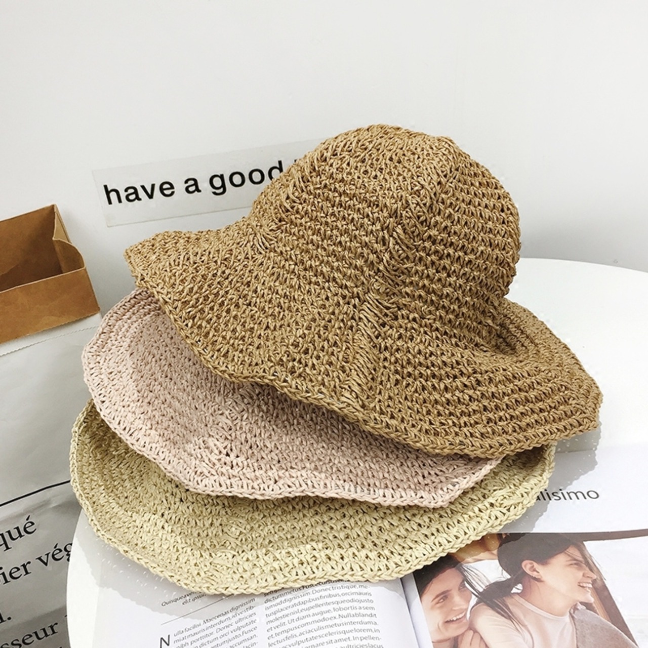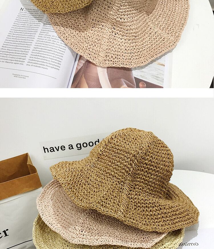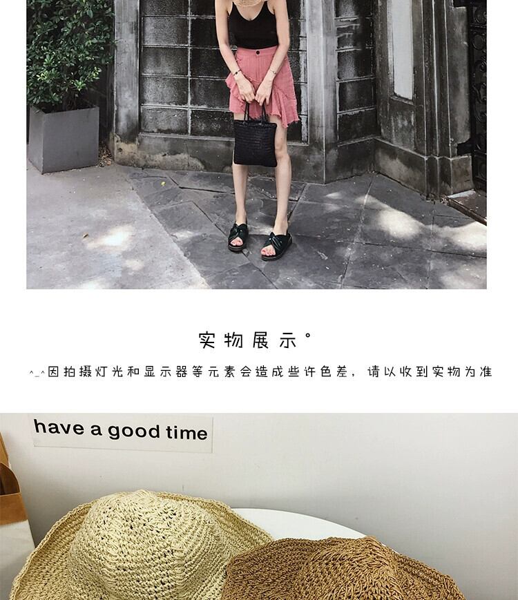 バージョン旅行折りたたみ海辺麦わら帽子サンハット女性の日焼け止めビーチサンハット多用途漁師盆地帽子夏 サマー 夏物 15dd93917662950