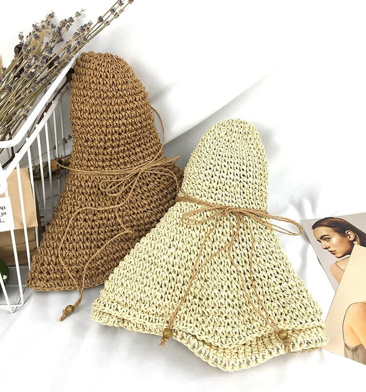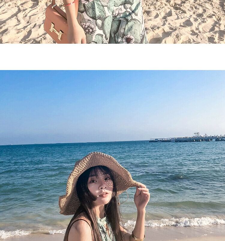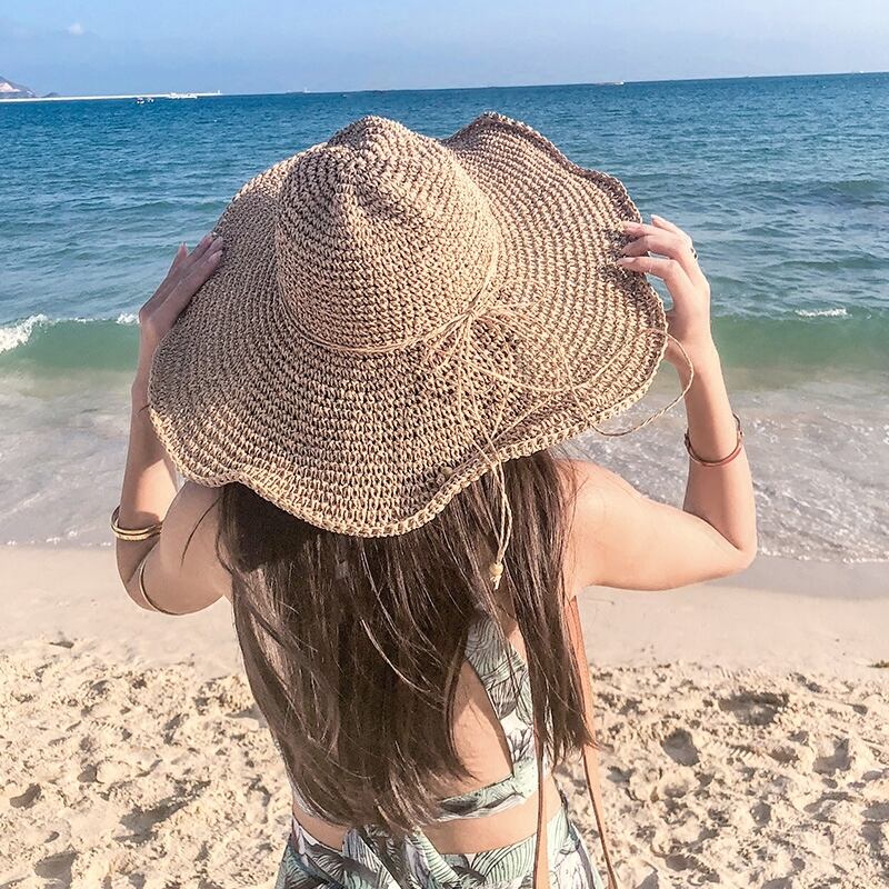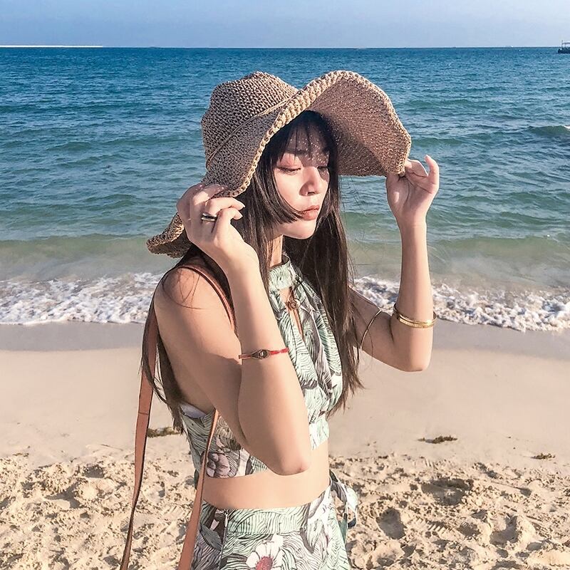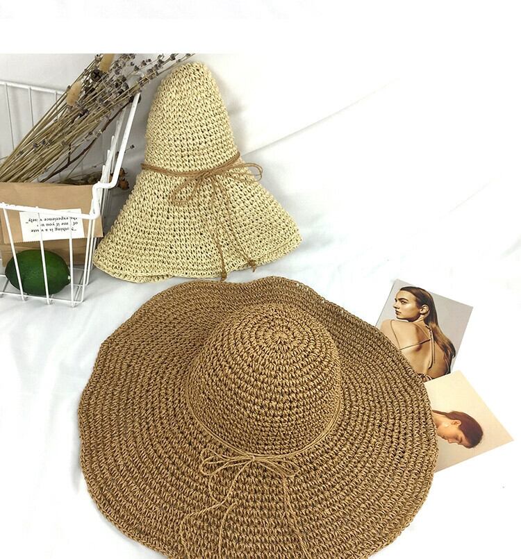 ビーチハット女性の夏海辺麦わら帽子スタイル手作り中空大きなつばサンハット文学フレッシュ折りたたみサンハット サマー 夏物 15dd23296483153