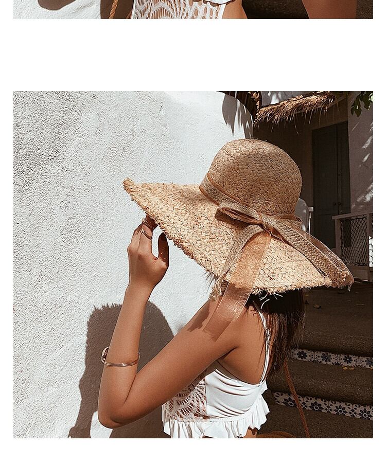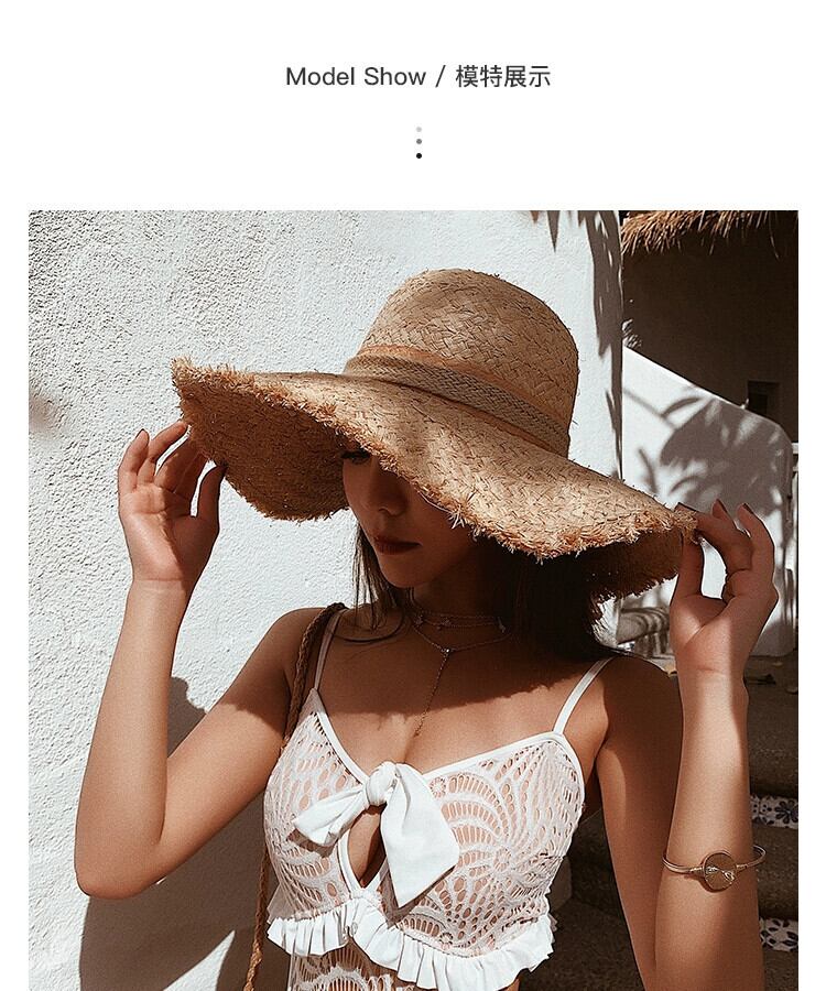 インターネットセレブの麦わら帽子、女性の夏のラフエッジの大きなつばのラフィアビーチハット、トレンディバージョン、多目的な海辺の日焼け止め帽子 サマー 夏物 15dd23257891493